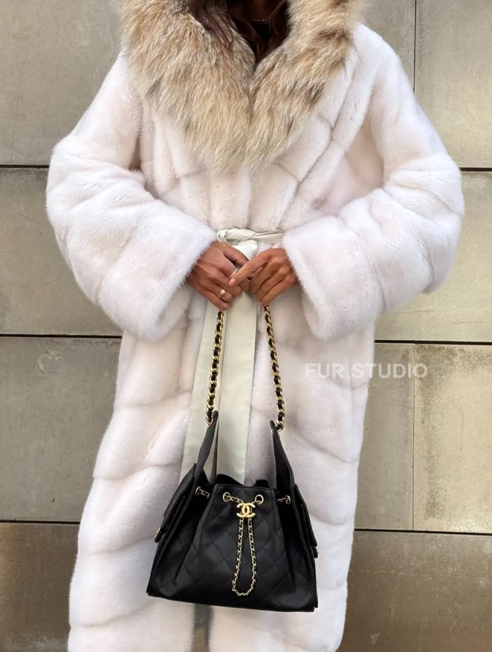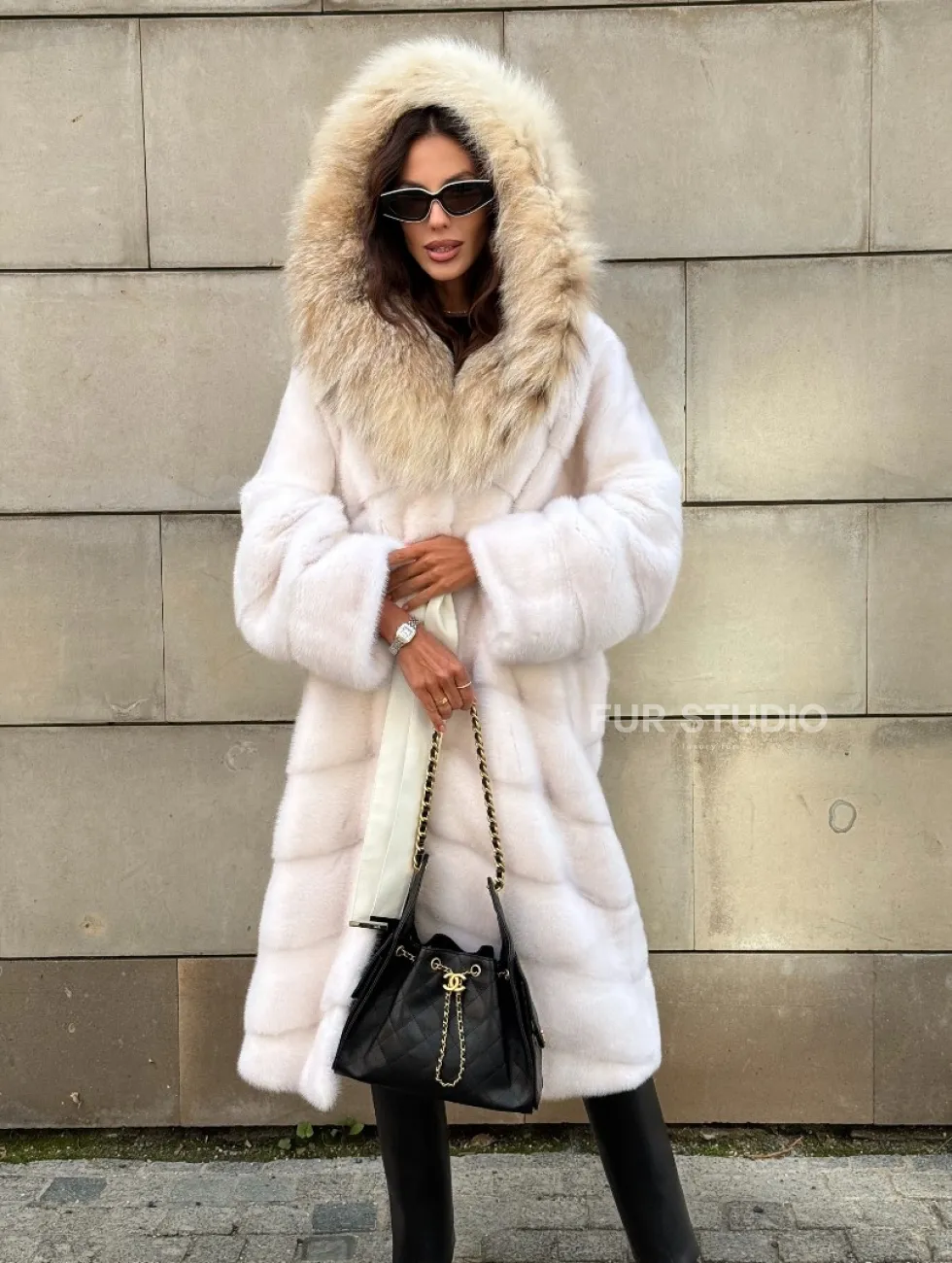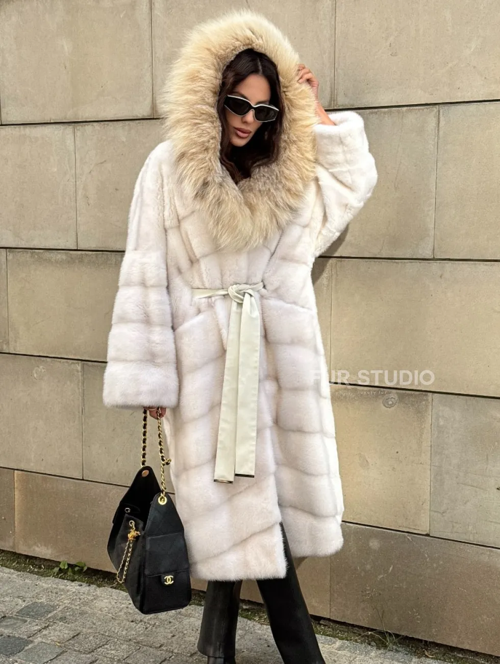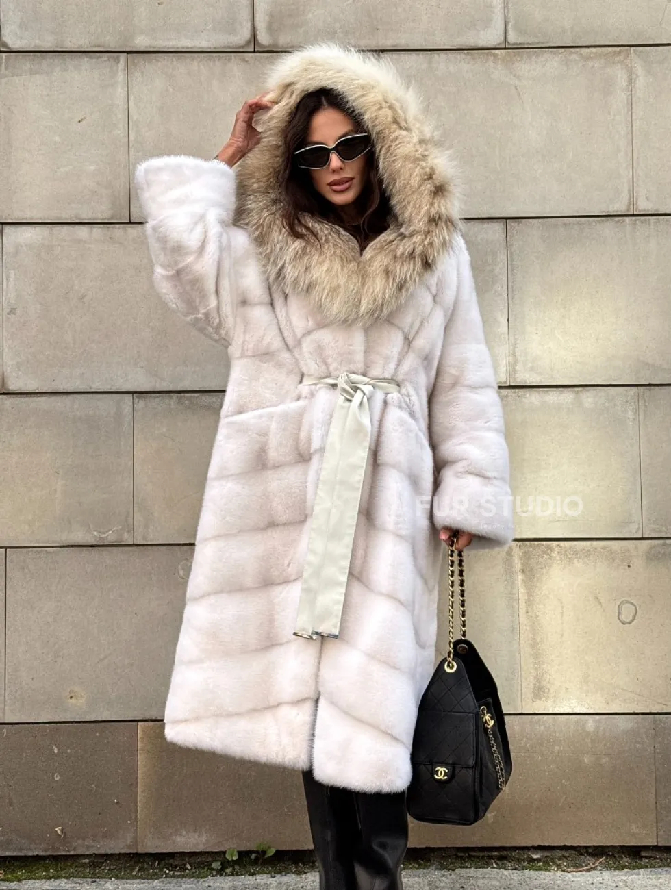 Белая норковая шуба с меховым капюшоном из рыси доступна для покупки в нашем шоуруме Furs Studio в Москве. У нас так же есть доставка во все города России. Добавьте немного роскоши в свой гардероб с этой шубой, которая будет служить вам многие годы.