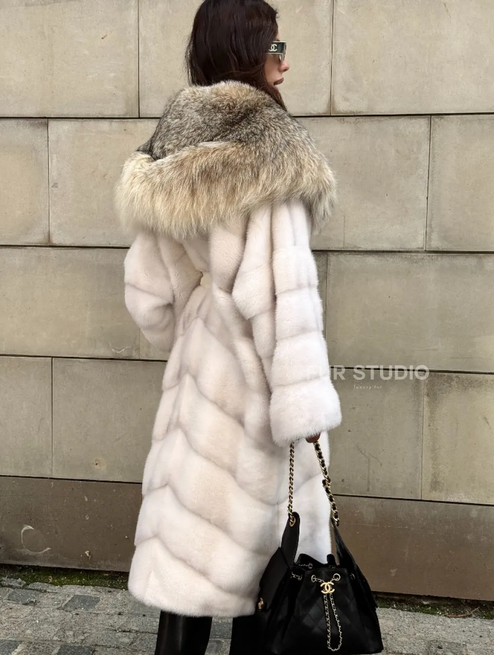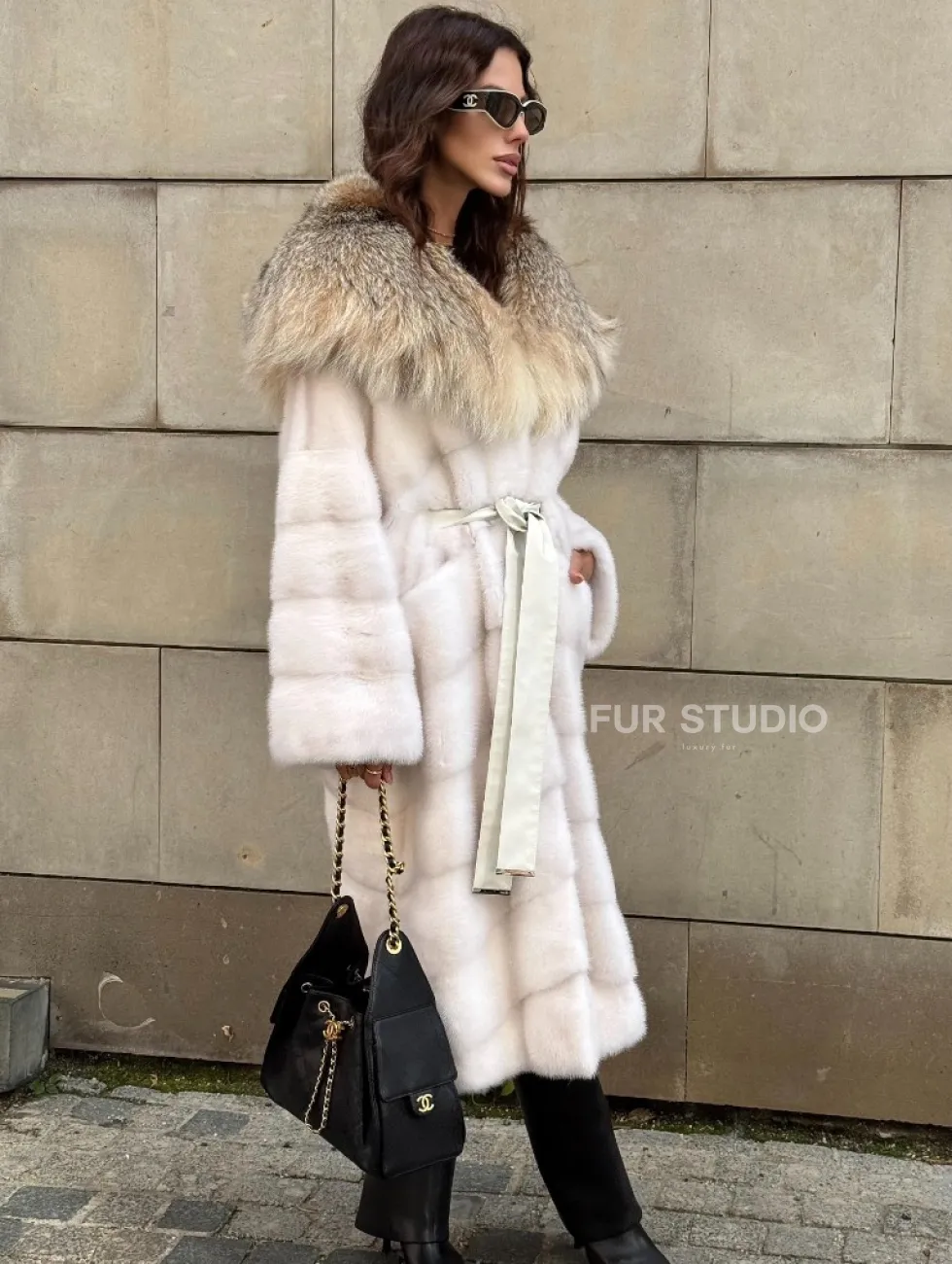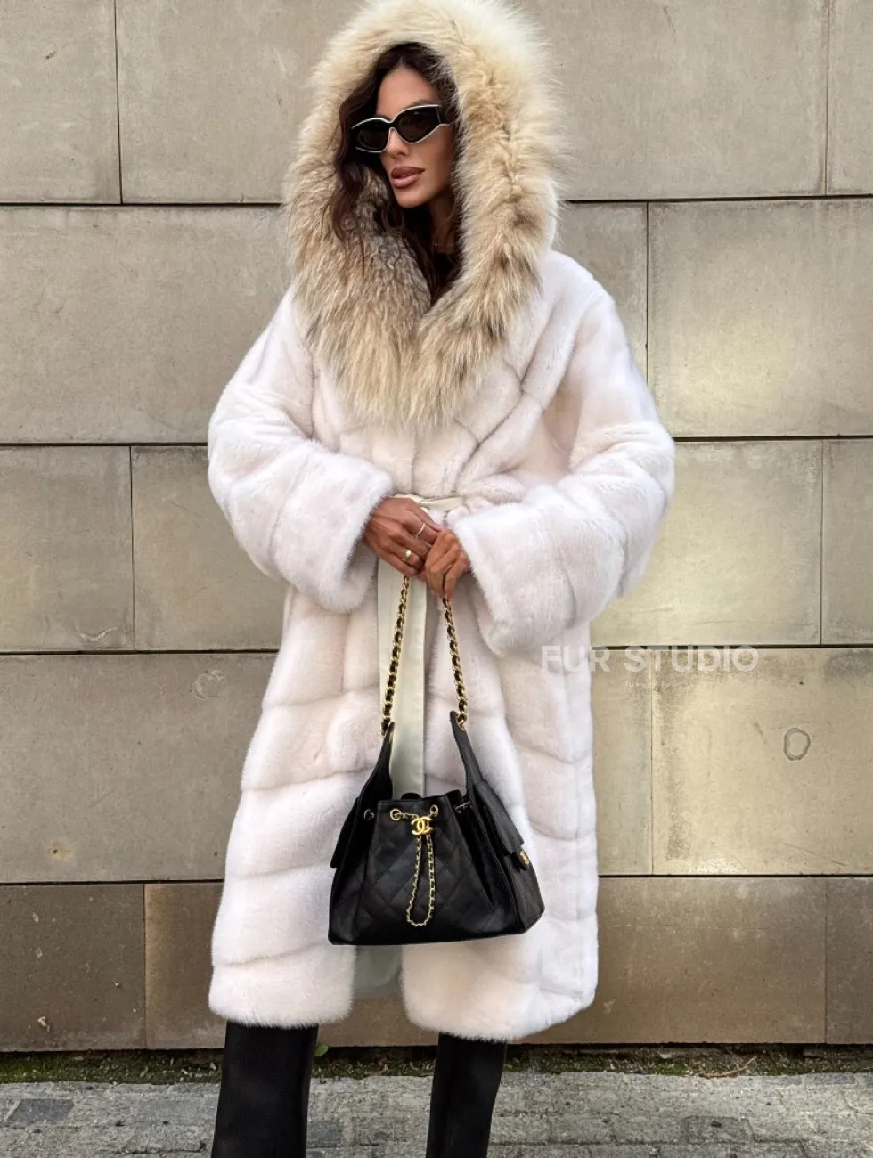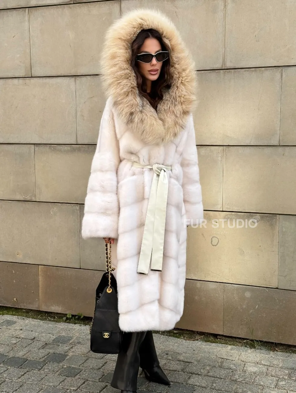 Белая норковая шуба с меховым капюшоном из рыси доступна для покупки в нашем шоуруме Furs Studio в Москве. У нас так же есть доставка во все города России. Добавьте немного роскоши в свой гардероб с этой шубой, которая будет служить вам многие годы.