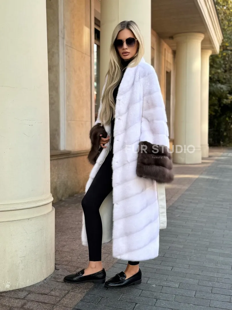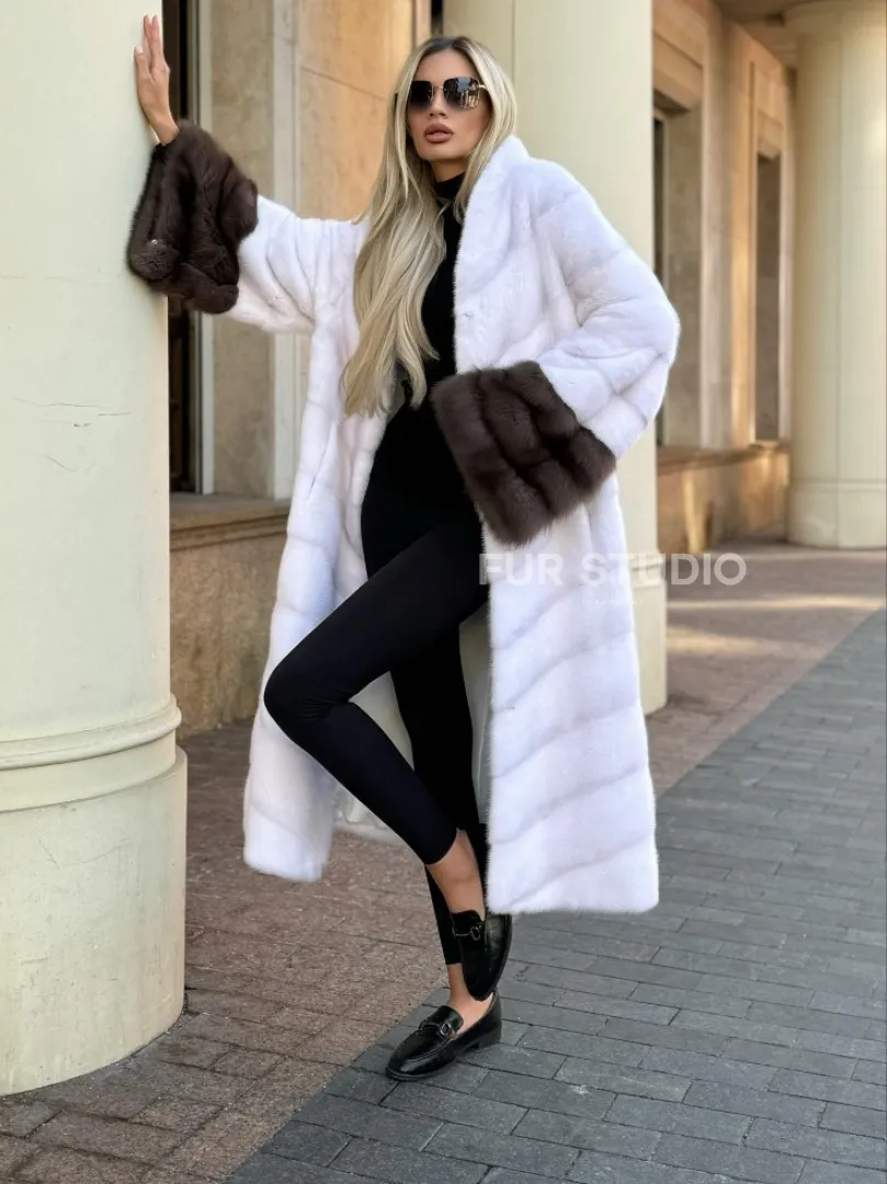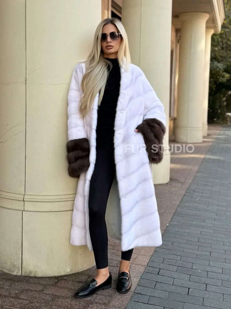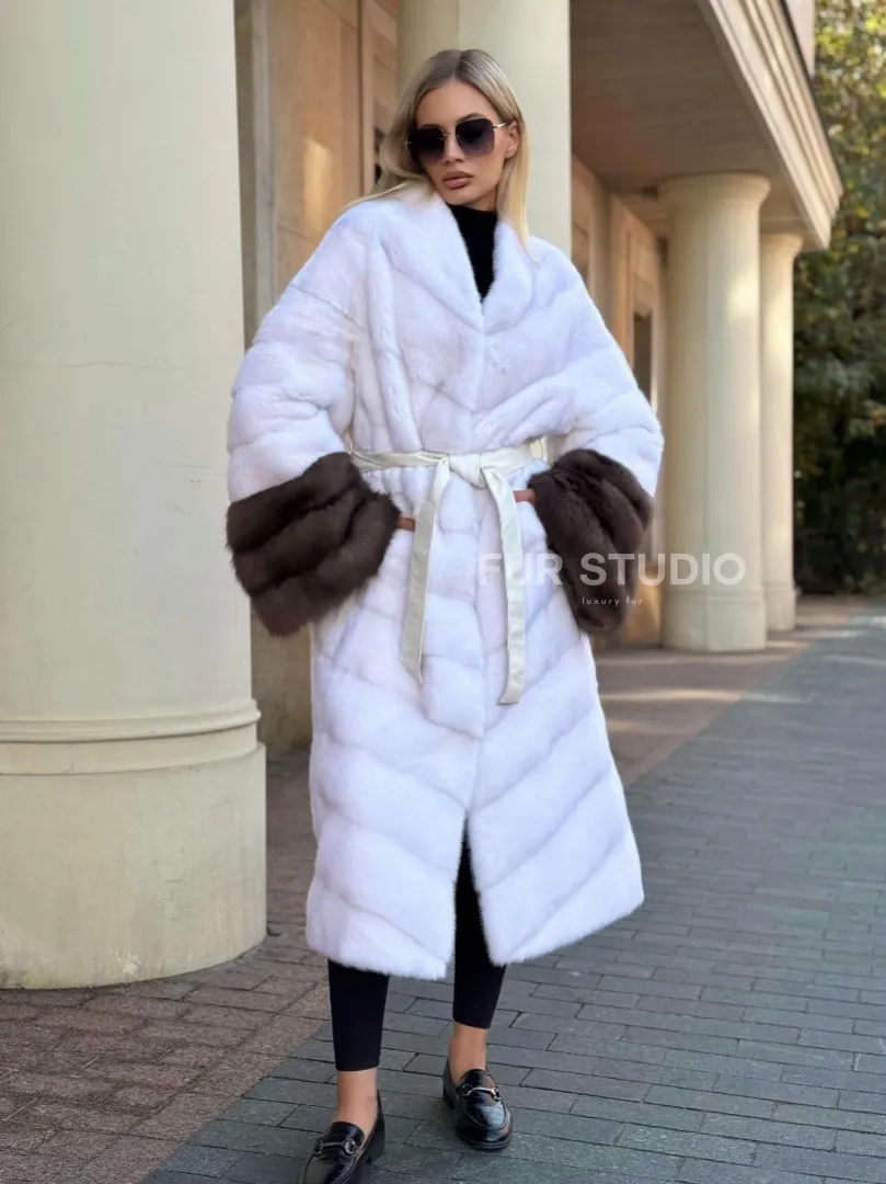 Белая норковая шуба с отделкой из куницы доступна для покупки в нашем шоуруме Furs Studio в Москве. У нас так же есть доставка во все города России. Добавьте немного роскоши в свой гардероб с этой шубой, которая будет служить вам многие годы.