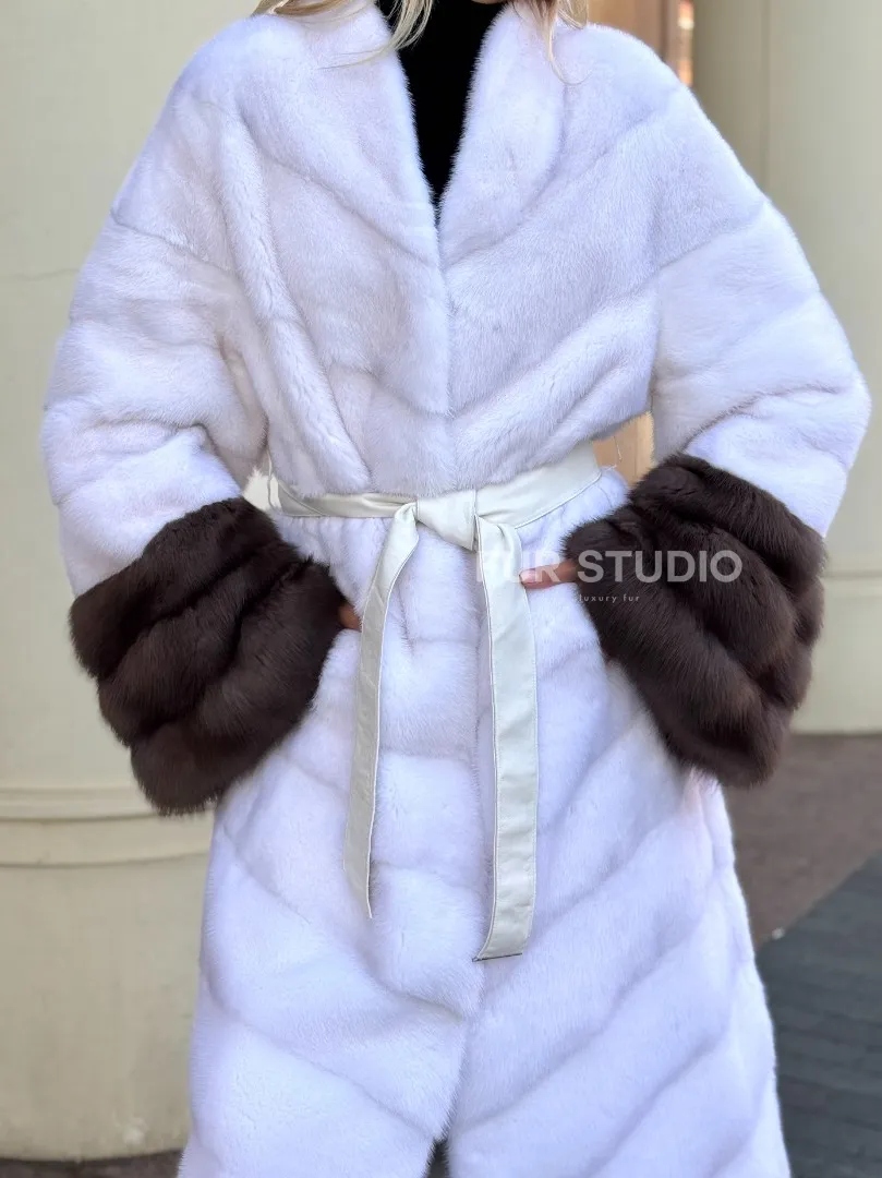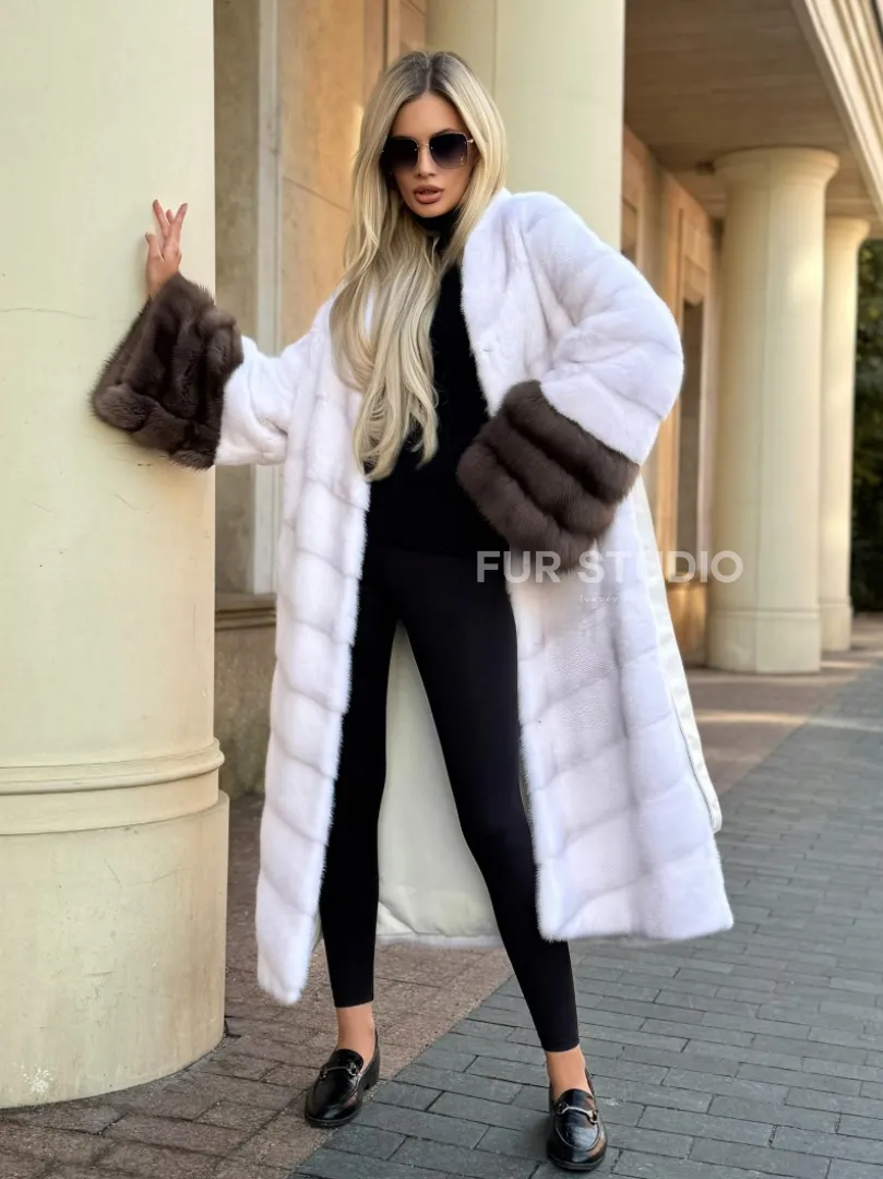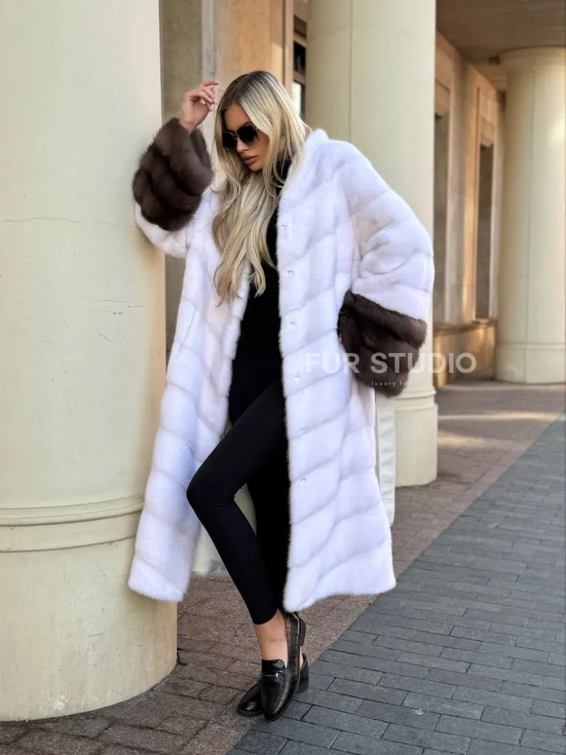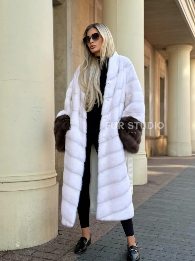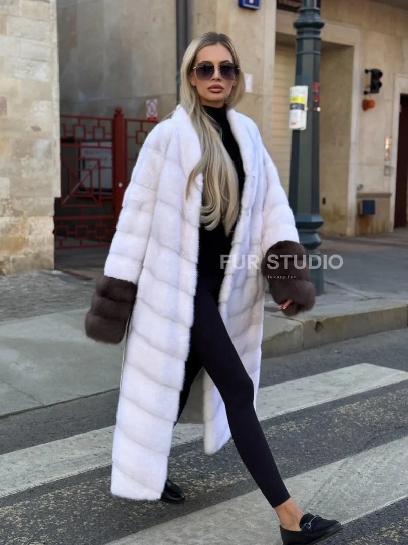 Белая норковая шуба с отделкой из куницы доступна для покупки в нашем шоуруме Furs Studio в Москве. У нас так же есть доставка во все города России. Добавьте немного роскоши в свой гардероб с этой шубой, которая будет служить вам многие годы.
