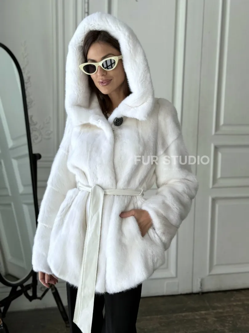 Белая шуба из меха норки (крестовка) с капюшоном доступна для покупки в нашем шоуруме Furs Studio в Москве. У нас так же есть доставка во все города России. Добавьте немного роскоши в свой гардероб с этой шубой, которая будет служить вам многие годы.