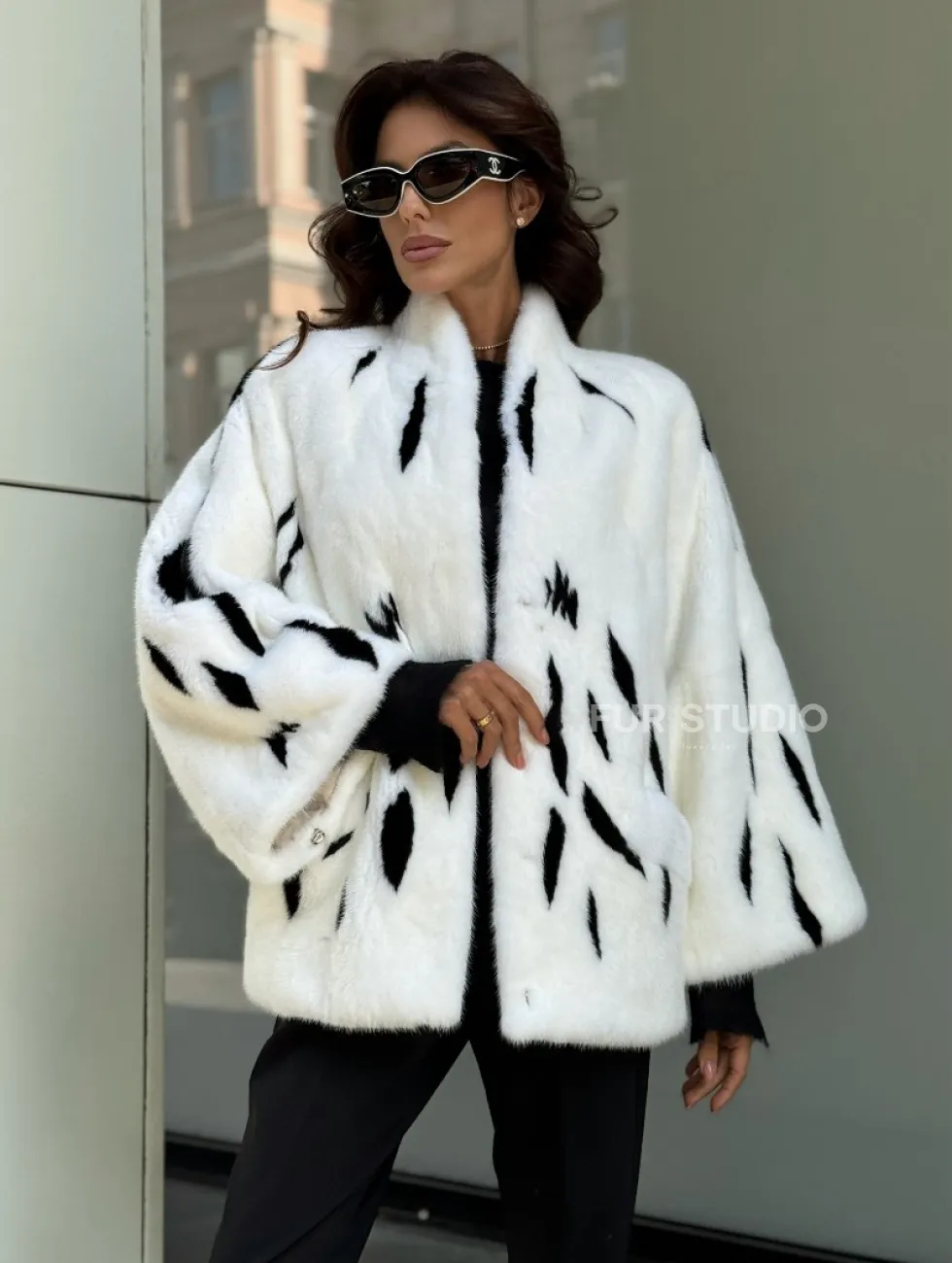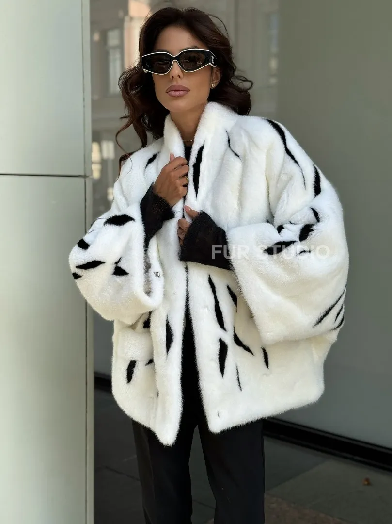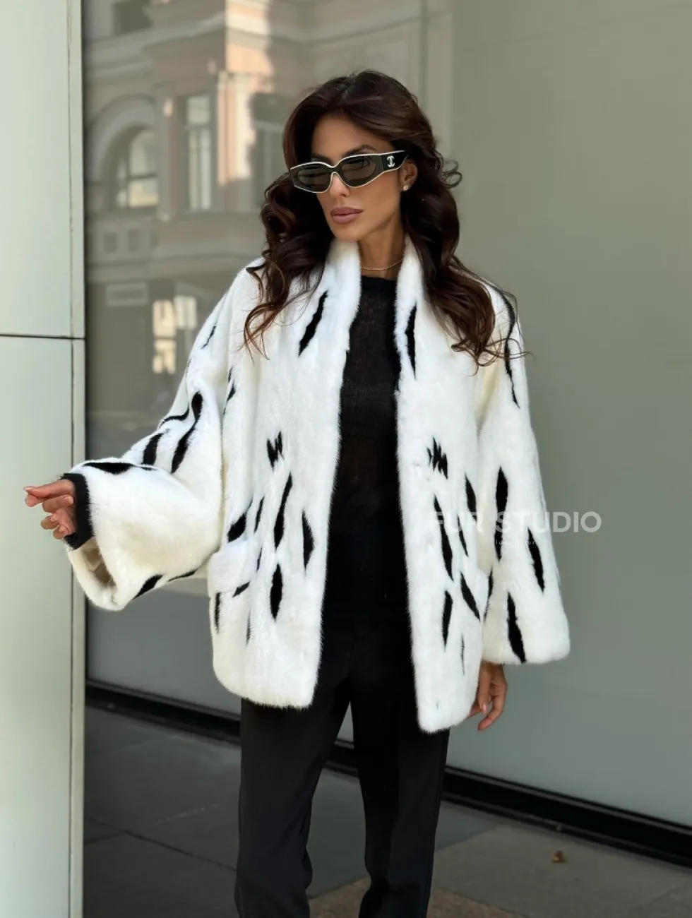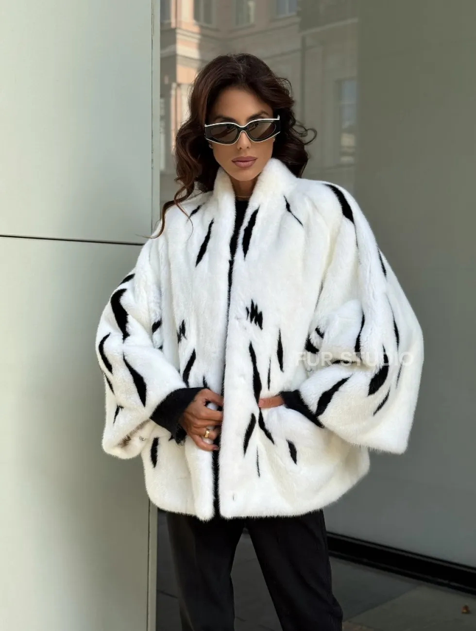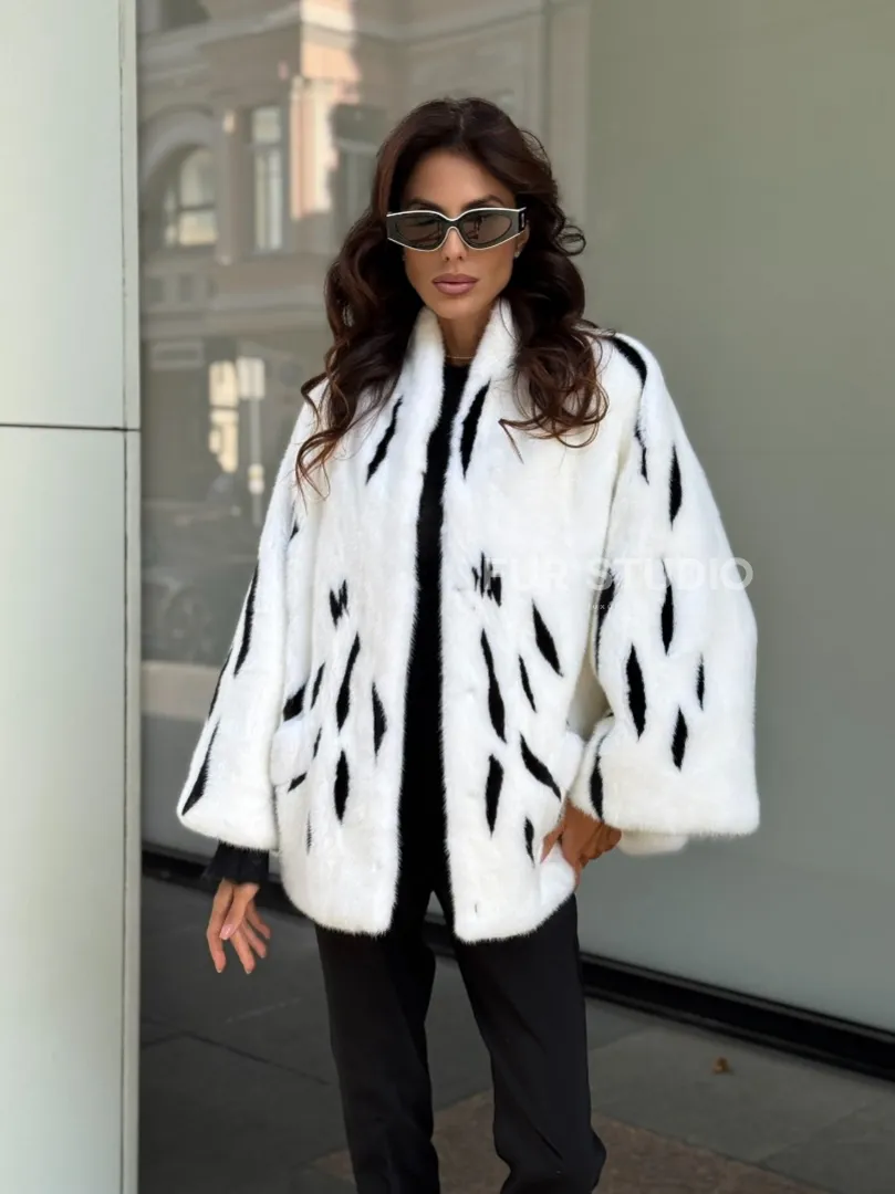 Белый норковый полушубок с рисунком доступна для покупки в нашем шоуруме Furs Studio в Москве. У нас так же есть доставка во все города России. Добавьте немного роскоши в свой гардероб с этой шубой, которая будет служить вам многие годы.