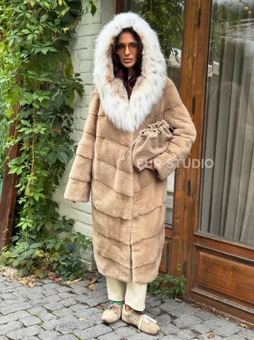 Бежевая норковая шуба с капюшоном рысь доступна для покупки в нашем шоуруме Furs Studio в Москве. У нас так же есть доставка во все города России. Добавьте немного роскоши в свой гардероб с этой шубой, которая будет служить вам многие годы.