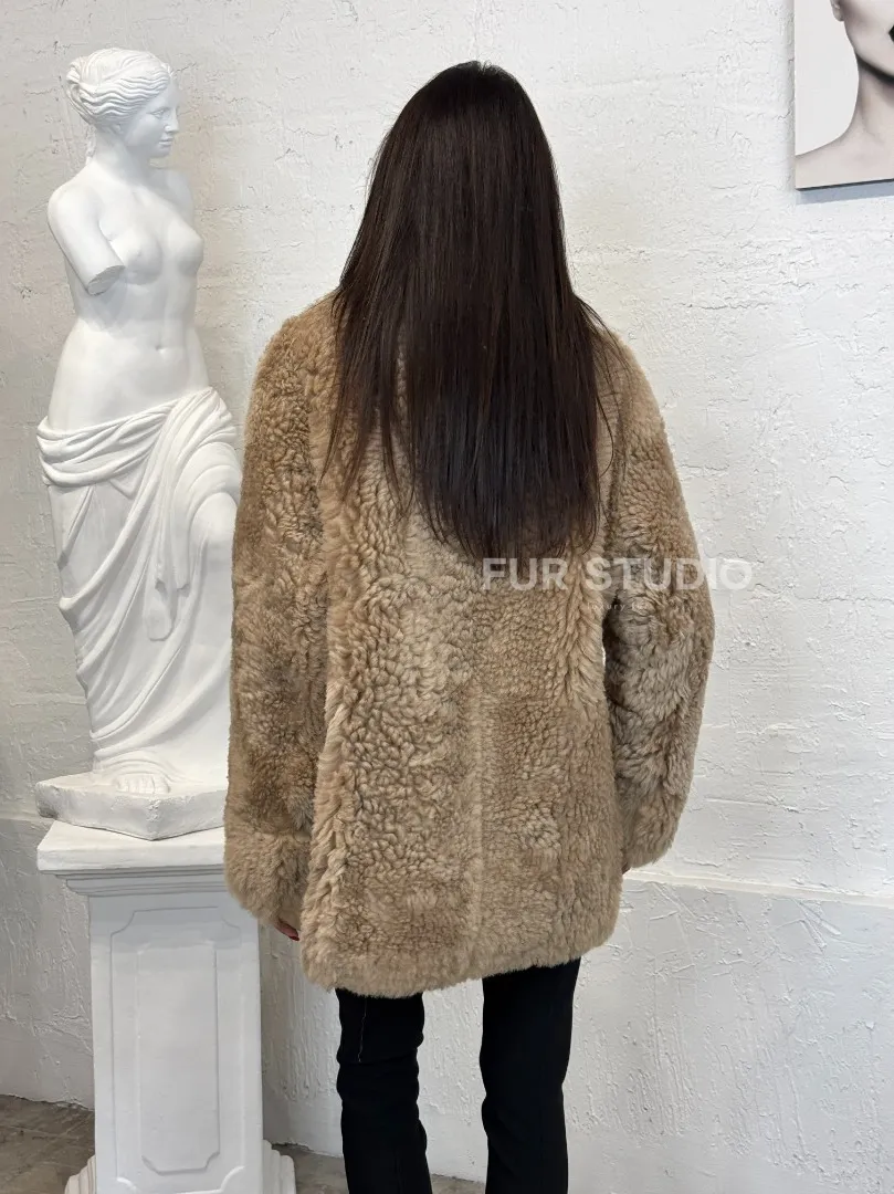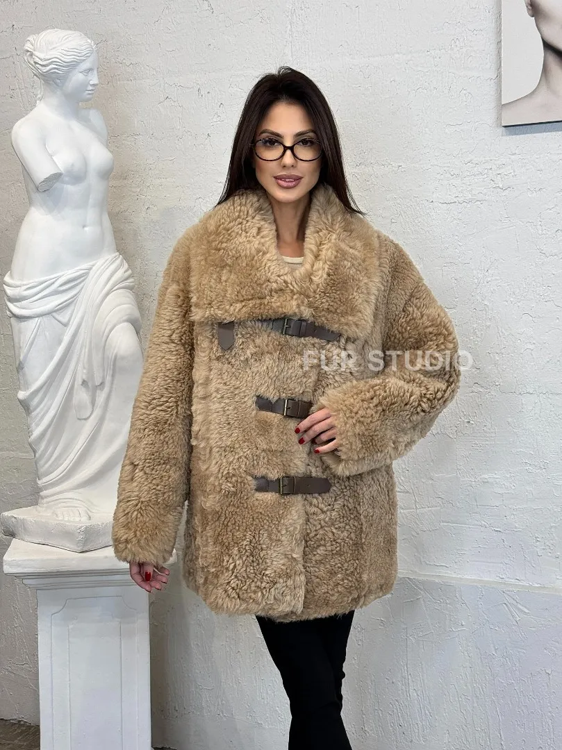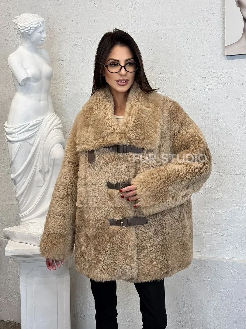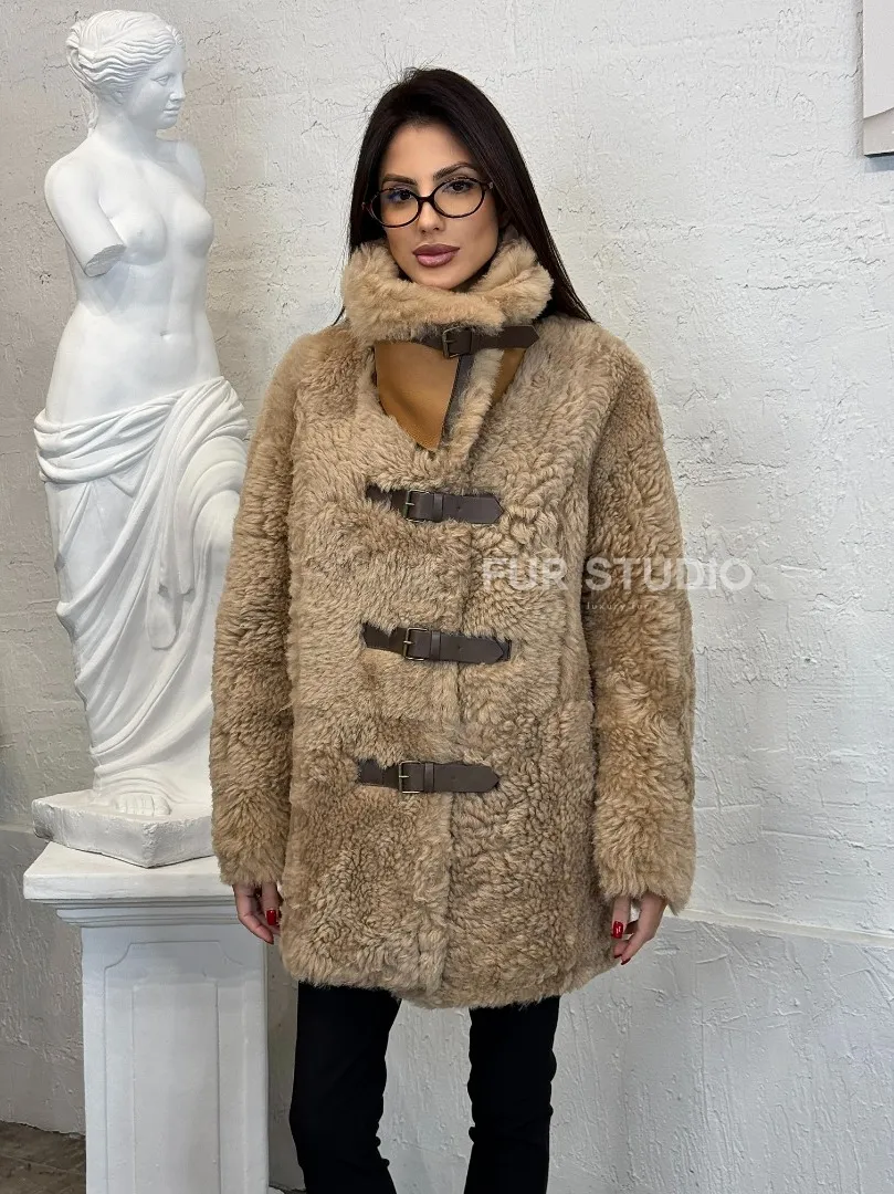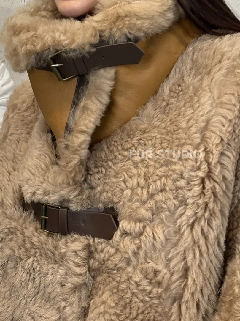 Бежевая женская дубленка из натуральной овчины Тиградо средней длины с отложным воротником доступна для покупки в нашем шоуруме Furs Studio в Москве, а также предлагается удобная доставка во все города России. Обогатите свой гардероб этой дубленкой, которая прослужит вам многие годы, добавив немного роскоши в ваш повседневный образ.