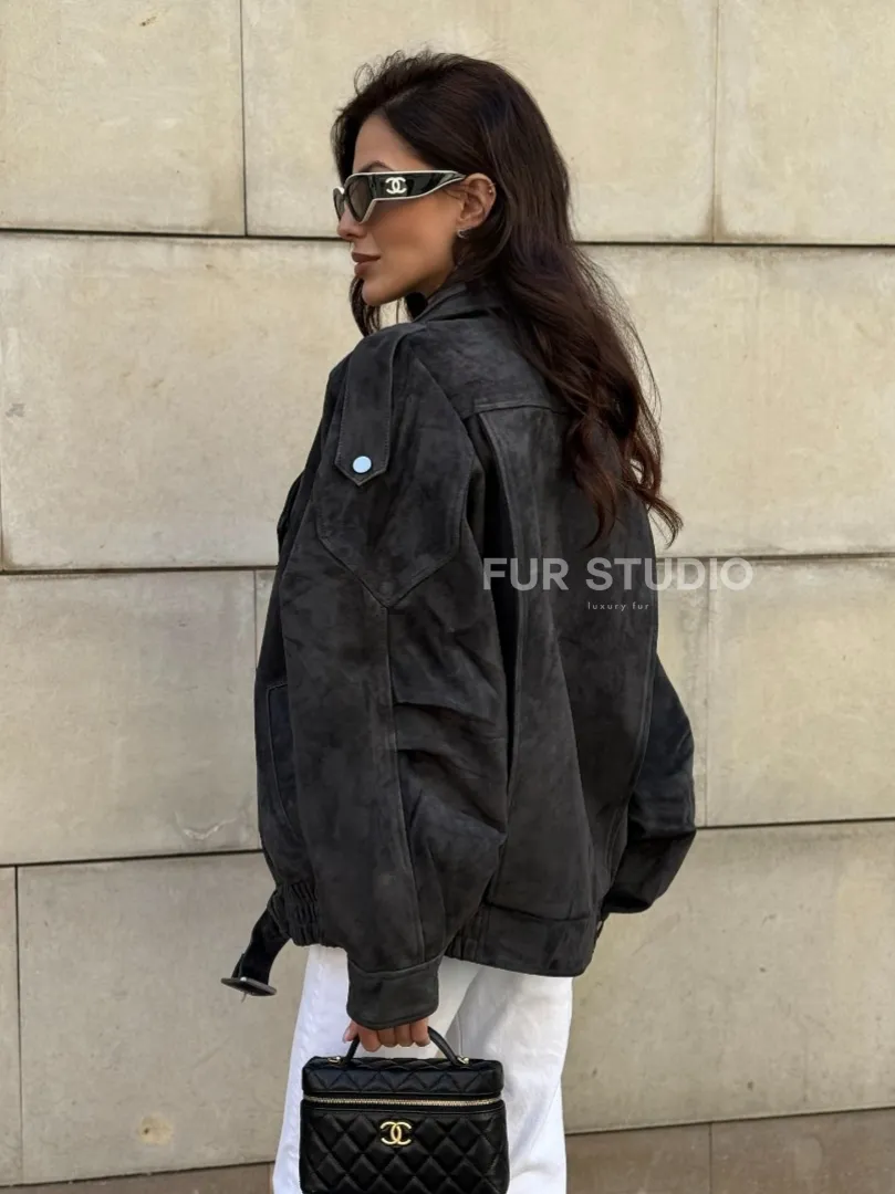 Восхититесь элегантностью и несравненным комфортом с нашей эксклюзивной коллекцией кожаных изделий. Изготовленная из первоклассной натуральной кожи, Бомбер оверсайз из замши Grey с двойным воротником и карманами не только согреет вас в прохладные дни, но и подчеркнет ваш изысканный вкус. Уникальный дизайн и высокое качество делают наши представленные образцы идеальным выбором для утончённых образов.