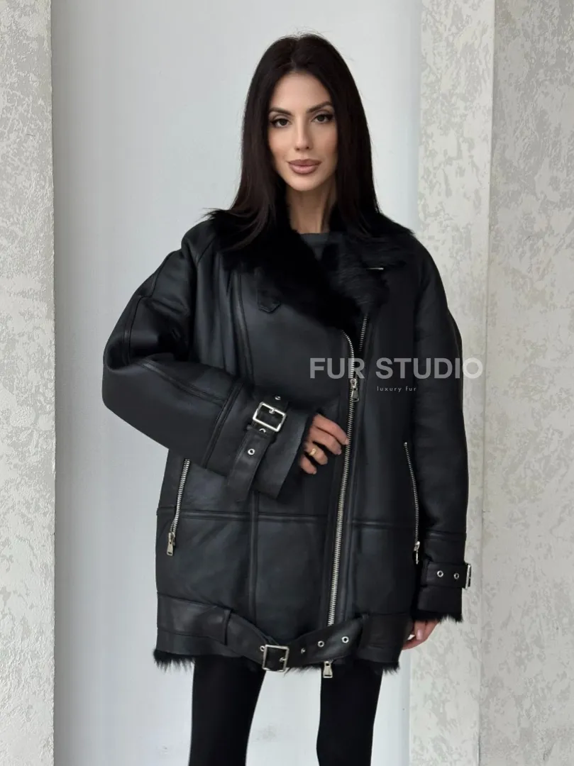Черная дубленка - авиатор на тоскане. Модель предлагается в размерах от 42 до 58. Оптимальная длина моделей 85-90 см подчеркивает линии вашей фигуры. Эта дубленка станет неотъемлемой частью гардероба для тех, кто предпочитает роскошь и утонченность натуральной кожи.