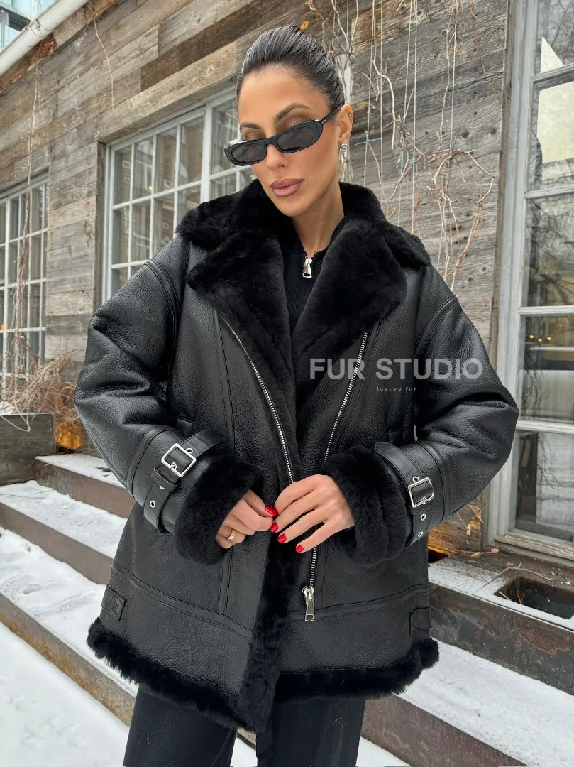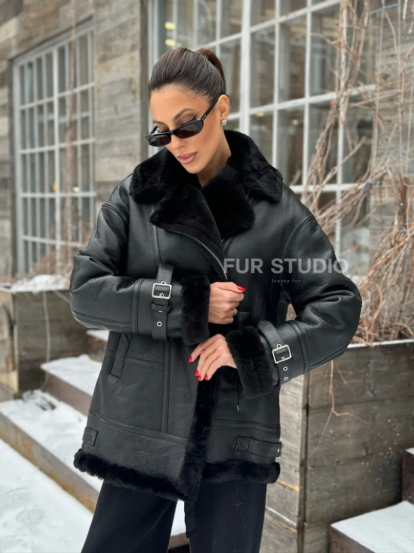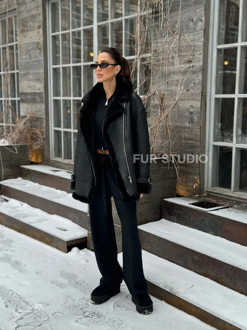 Черная дубленка авитор на овчине доступна для покупки в нашем шоуруме Furs Studio в Москве, а также предлагается удобная доставка во все города России. Обогатите свой гардероб этой дубленкой, которая прослужит вам многие годы, добавив немного роскоши в ваш повседневный образ.