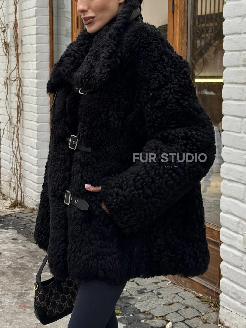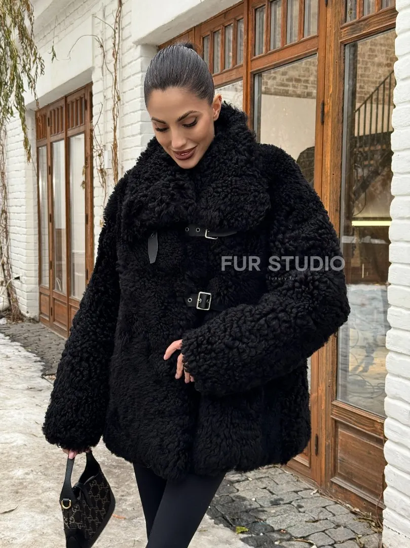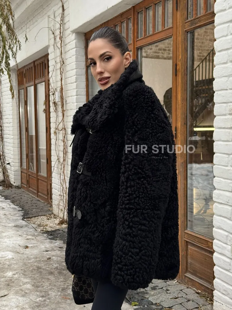 Черная дубленка средней длины из овчины тиградо " Дафлкот " доступна для покупки в нашем шоуруме Furs Studio в Москве, а также предлагается удобная доставка во все города России. Обогатите свой гардероб этой дубленкой, которая прослужит вам многие годы, добавив немного роскоши в ваш повседневный образ.