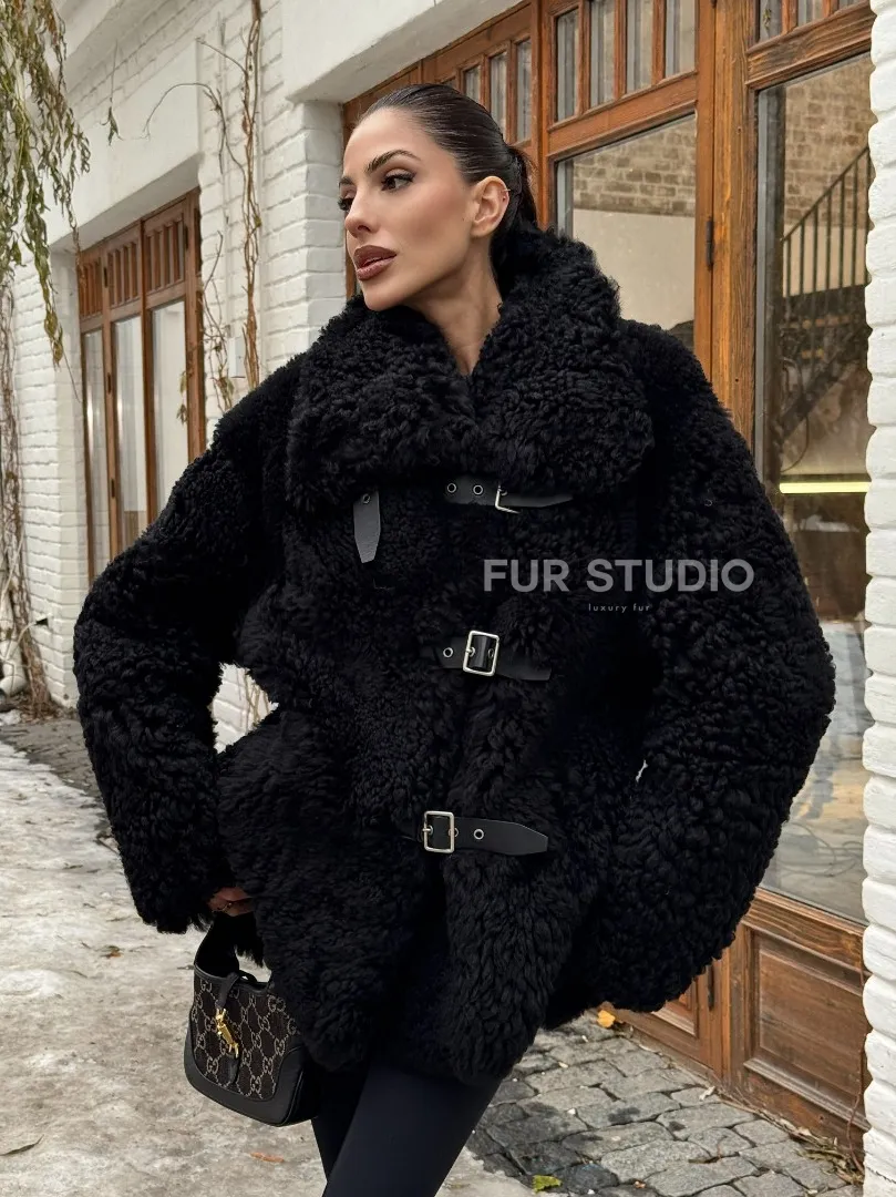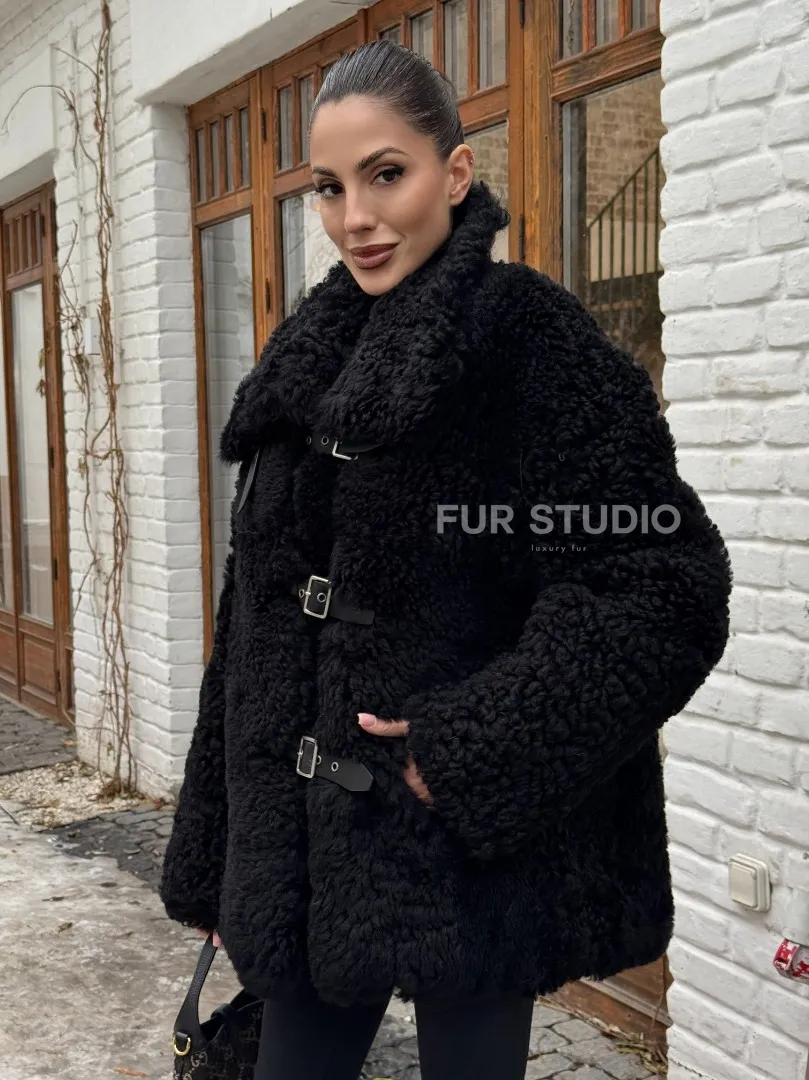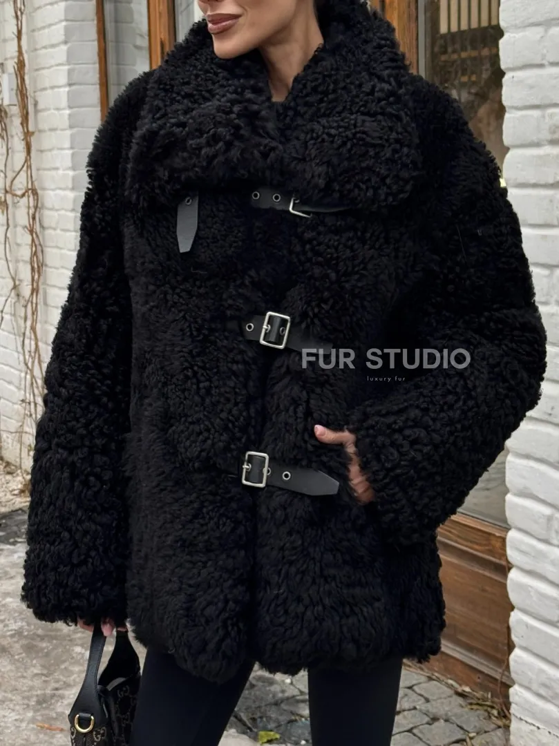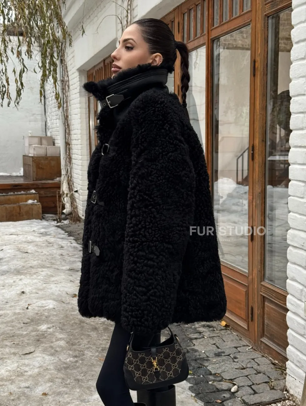 Черная дубленка средней длины из овчины тиградо " Дафлкот " доступна для покупки в нашем шоуруме Furs Studio в Москве, а также предлагается удобная доставка во все города России. Обогатите свой гардероб этой дубленкой, которая прослужит вам многие годы, добавив немного роскоши в ваш повседневный образ.