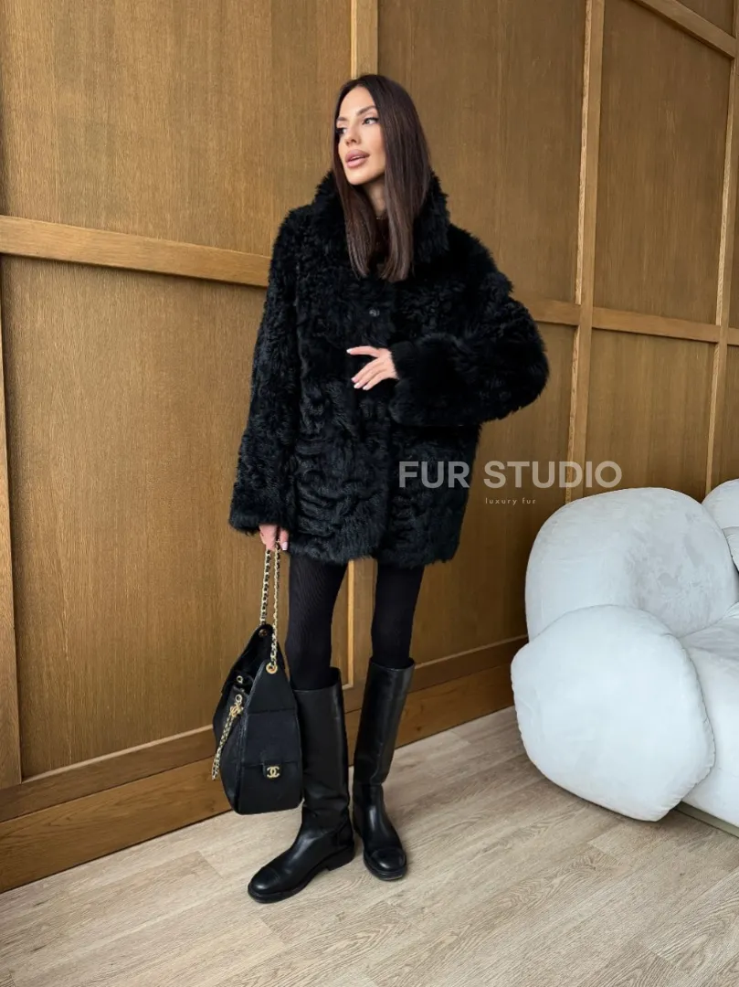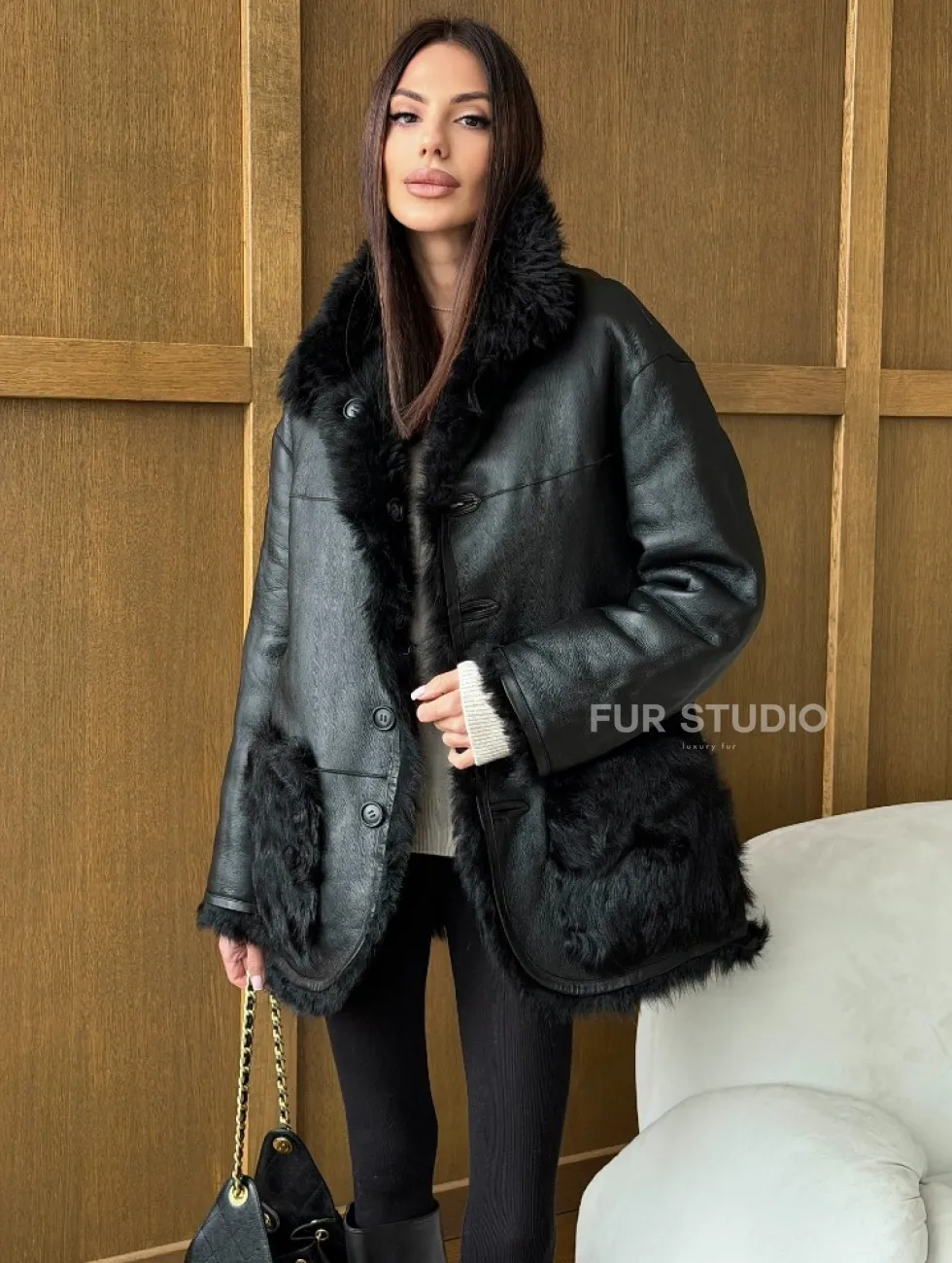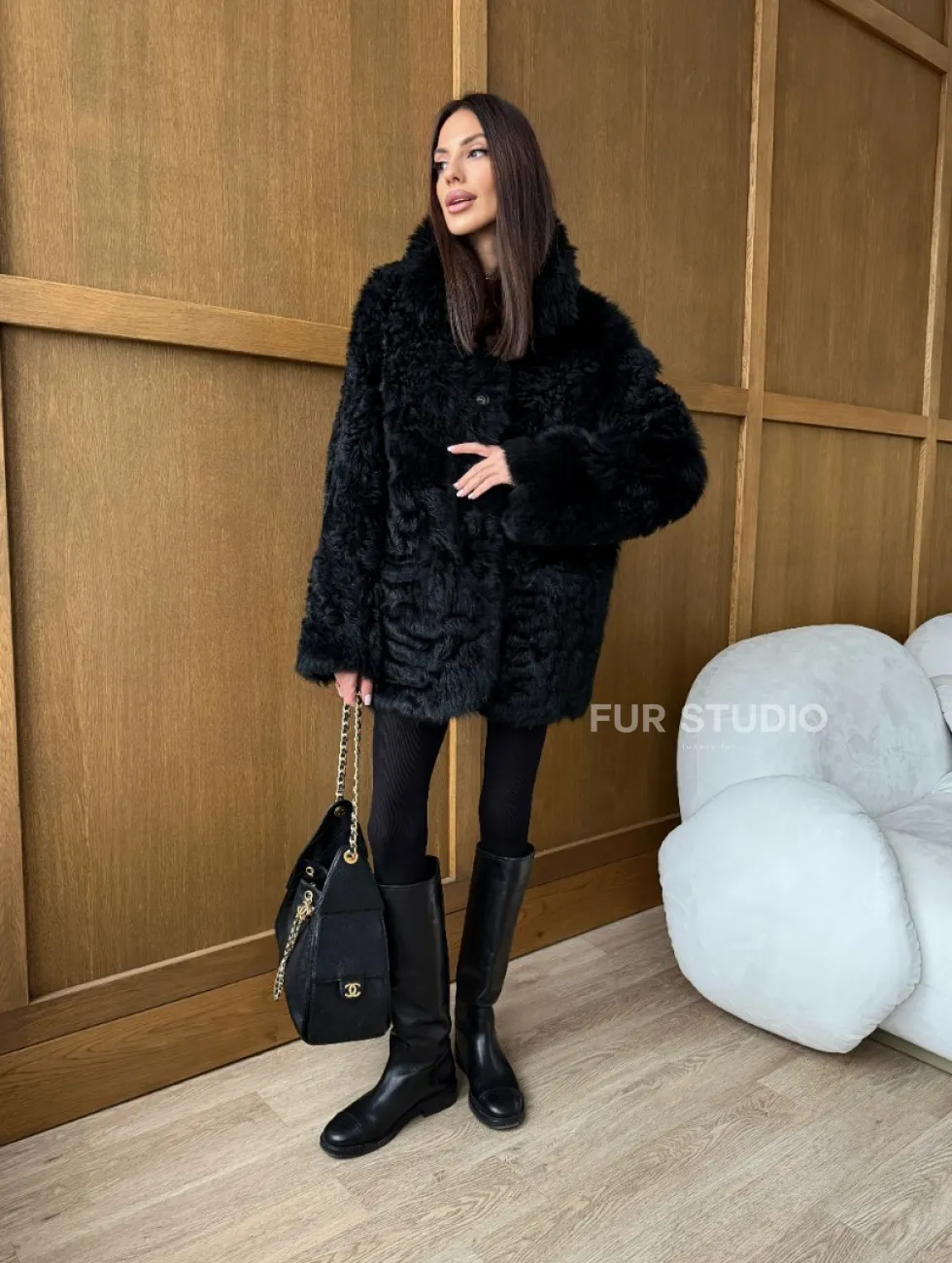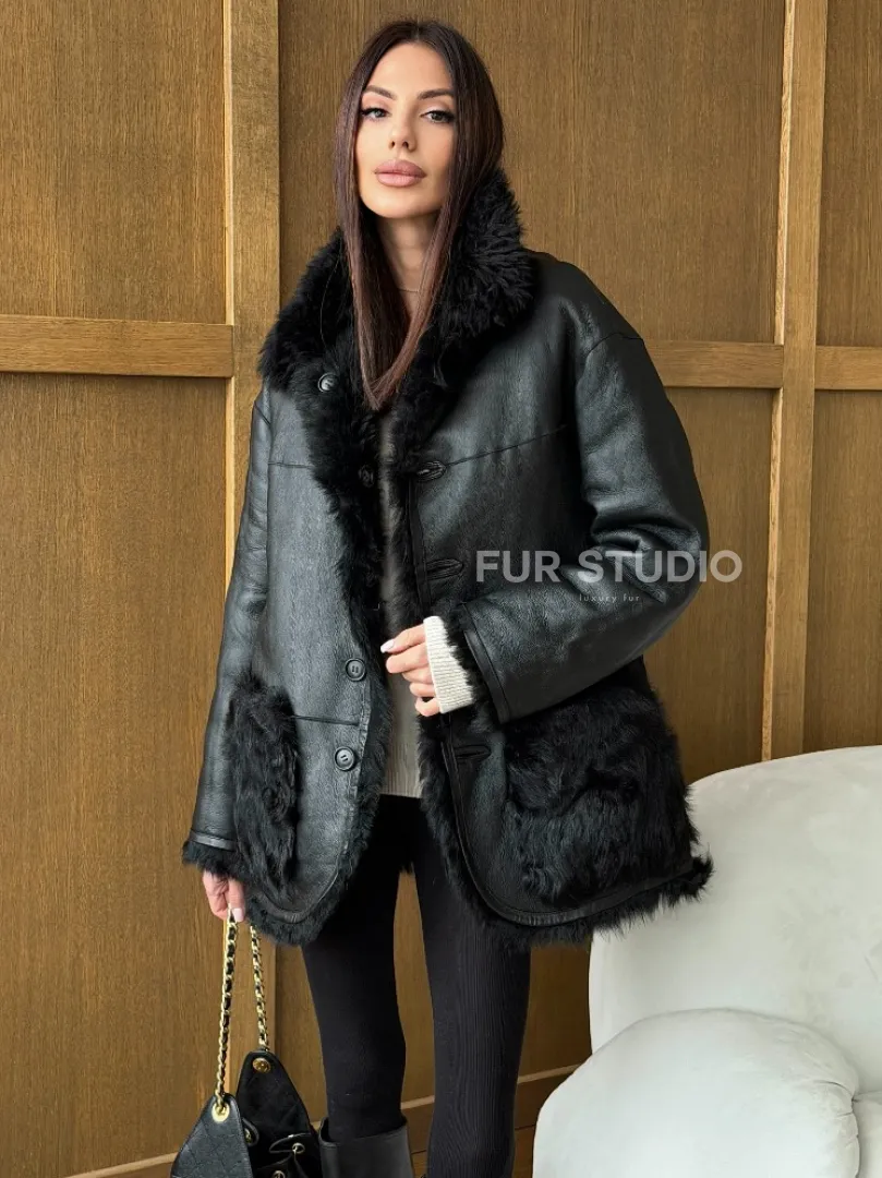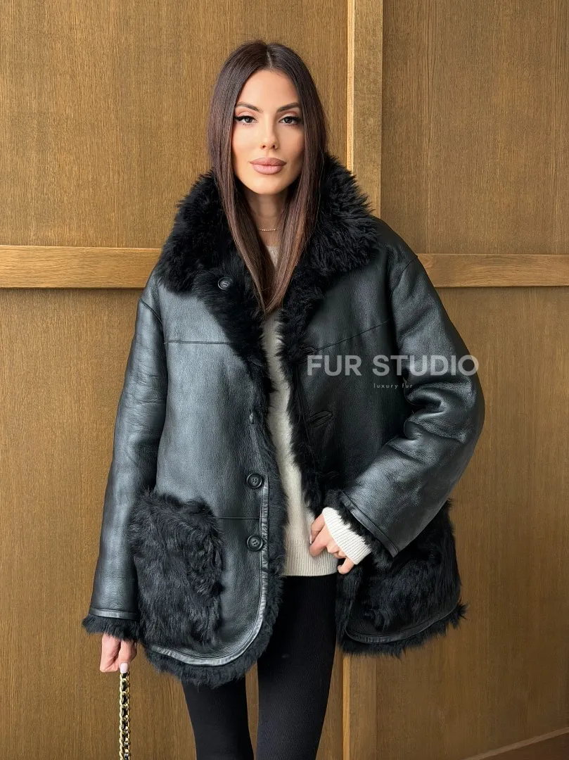 Черная двухсторонняя дубленка из меха тиградо доступна для покупки в нашем шоуруме Furs Studio в Москве, а также предлагается удобная доставка во все города России. Обогатите свой гардероб этой дубленкой, которая прослужит вам многие годы, добавив немного роскоши в ваш повседневный образ.