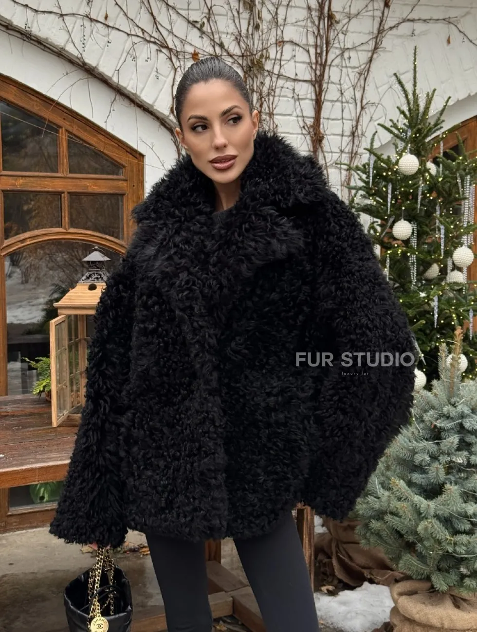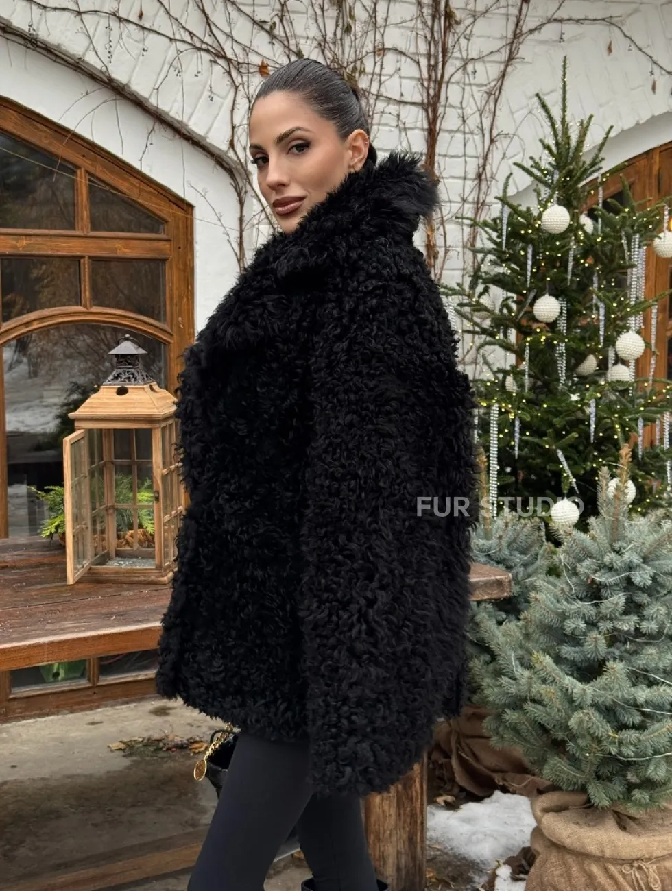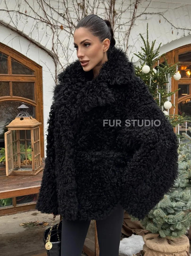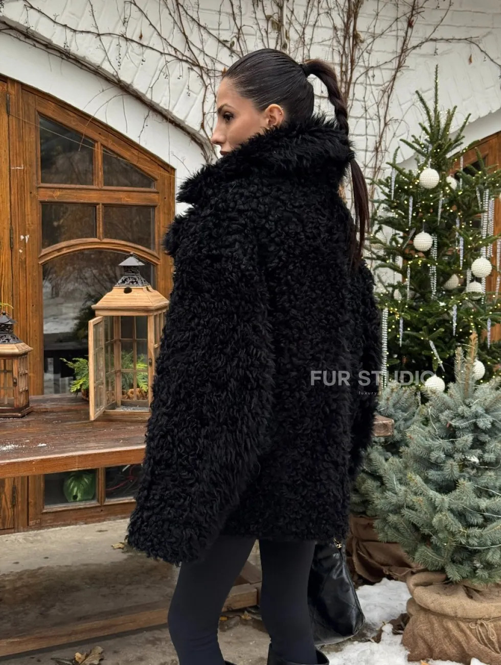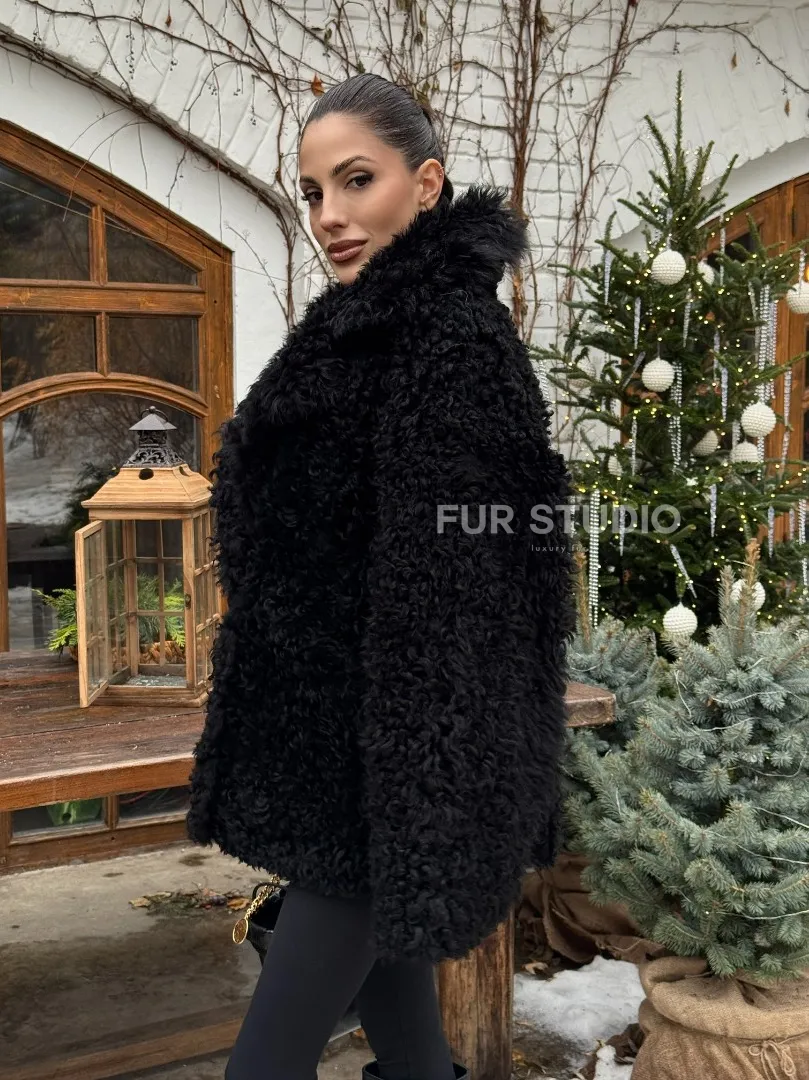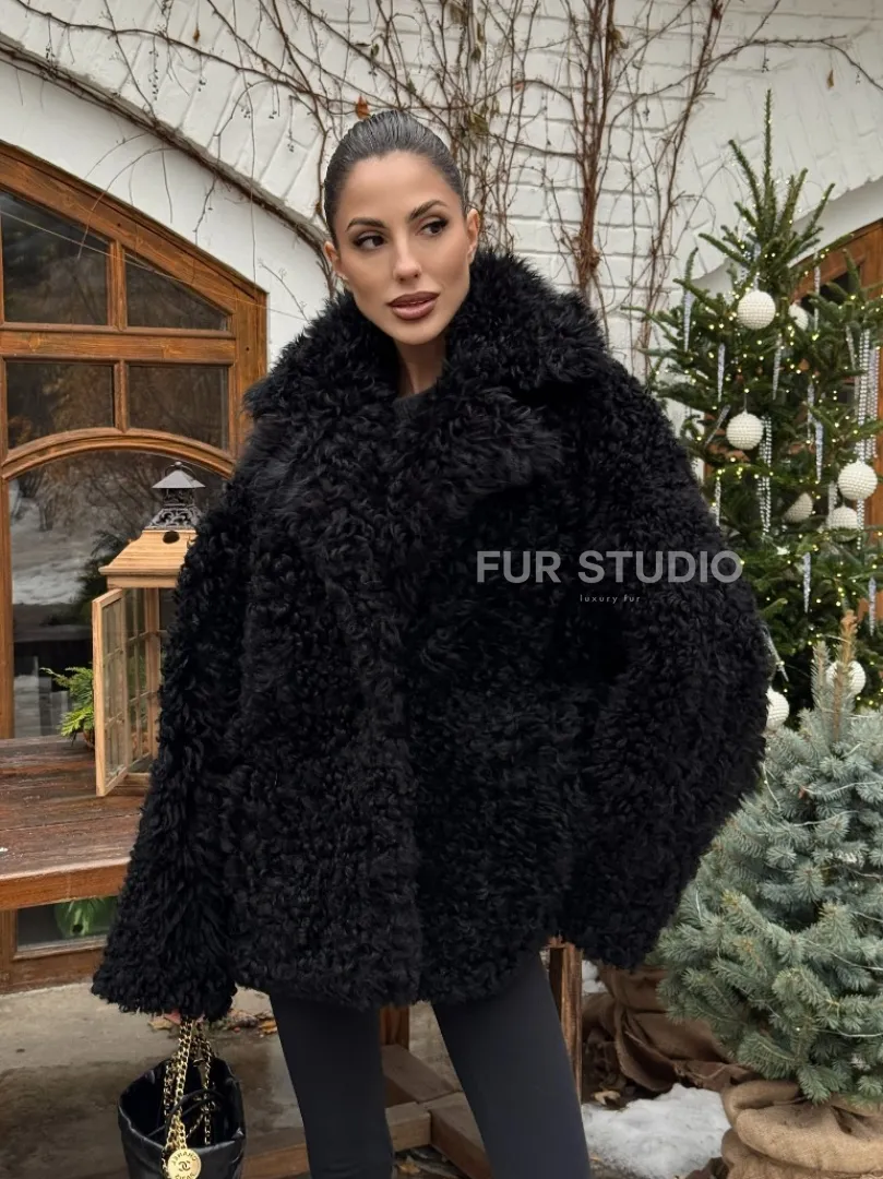 Черная короткая шуба - дубленка из испанской овчины «Тиградо» доступна для покупки в нашем шоуруме Furs Studio в Москве, а также предлагается удобная доставка во все города России. Обогатите свой гардероб этой дубленкой, которая прослужит вам многие годы, добавив немного роскоши в ваш повседневный образ.