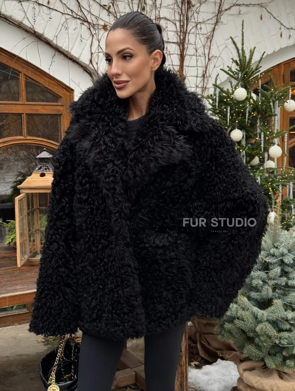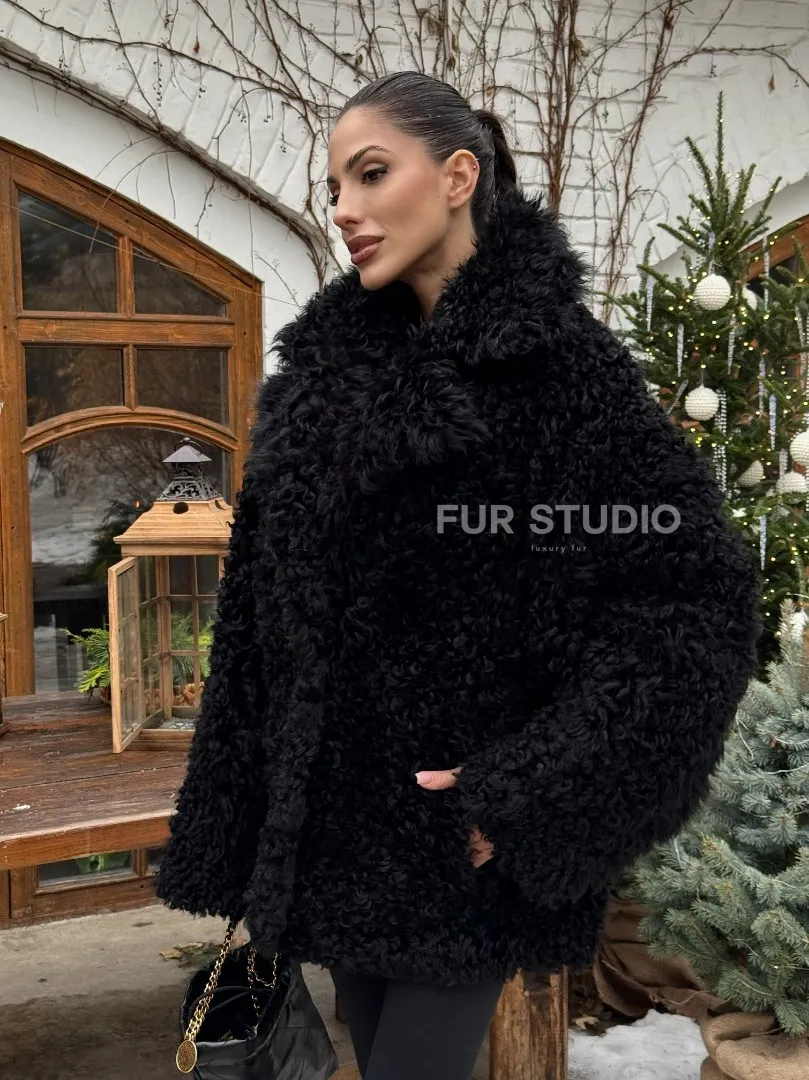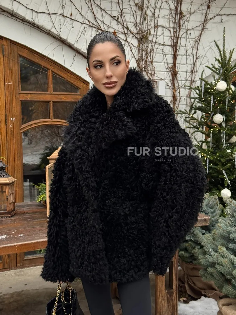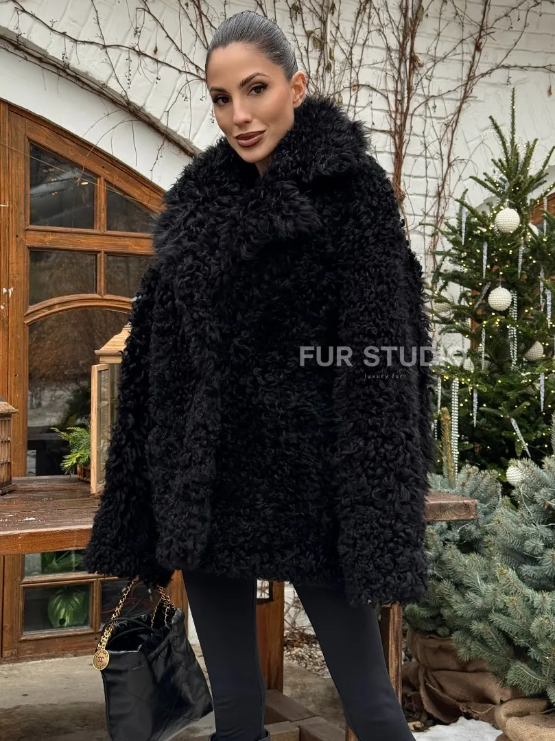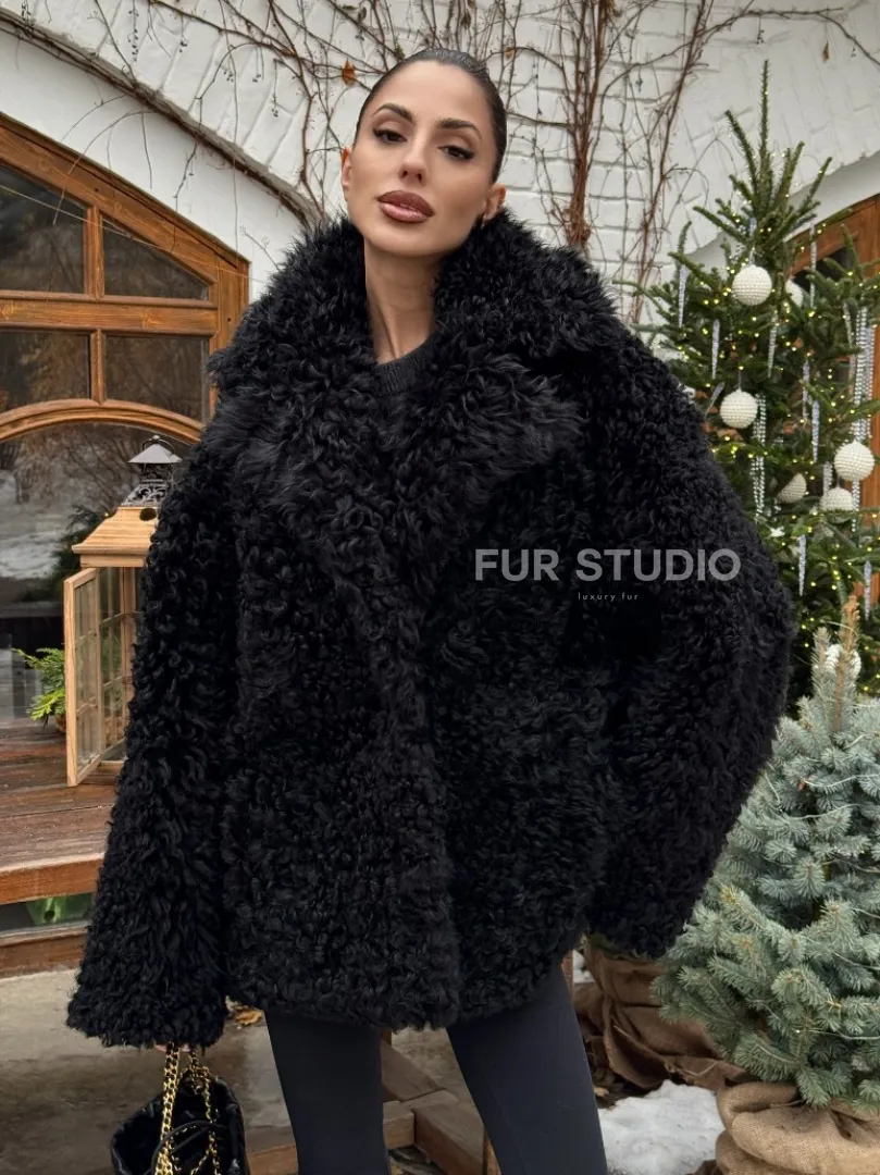 Черная короткая шуба - дубленка из испанской овчины «Тиградо» доступна для покупки в нашем шоуруме Furs Studio в Москве, а также предлагается удобная доставка во все города России. Обогатите свой гардероб этой дубленкой, которая прослужит вам многие годы, добавив немного роскоши в ваш повседневный образ.