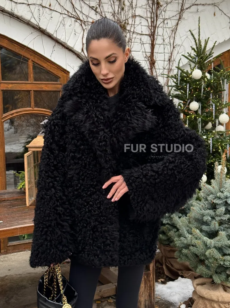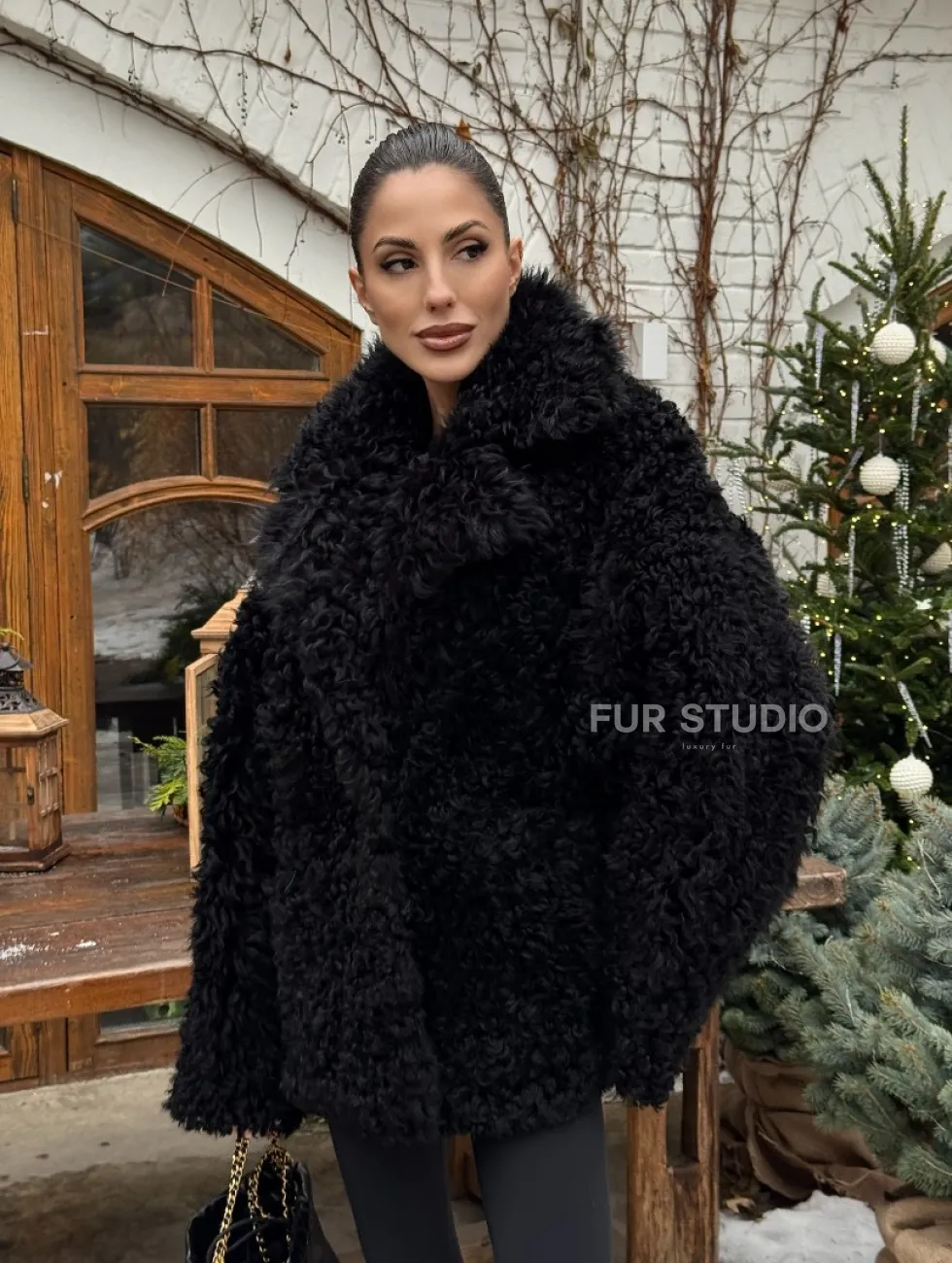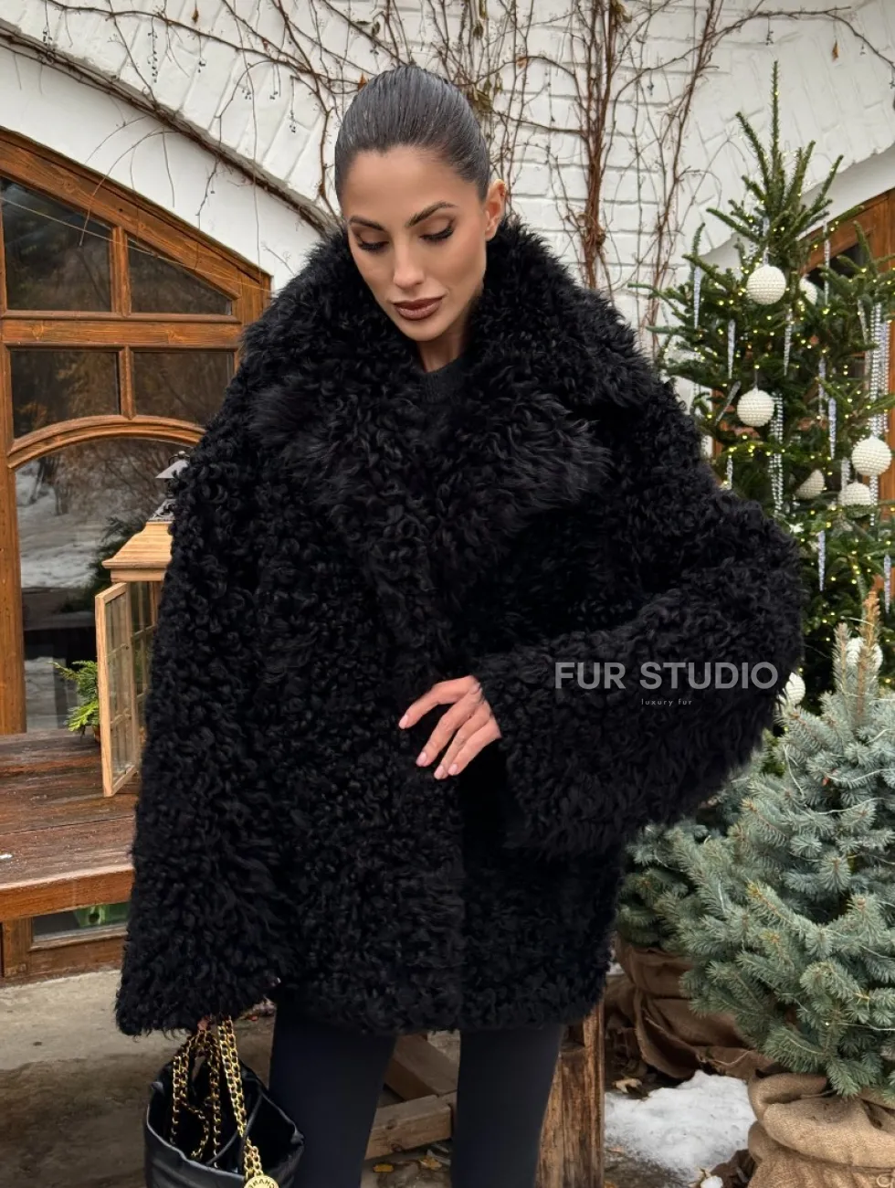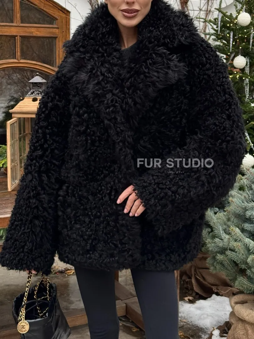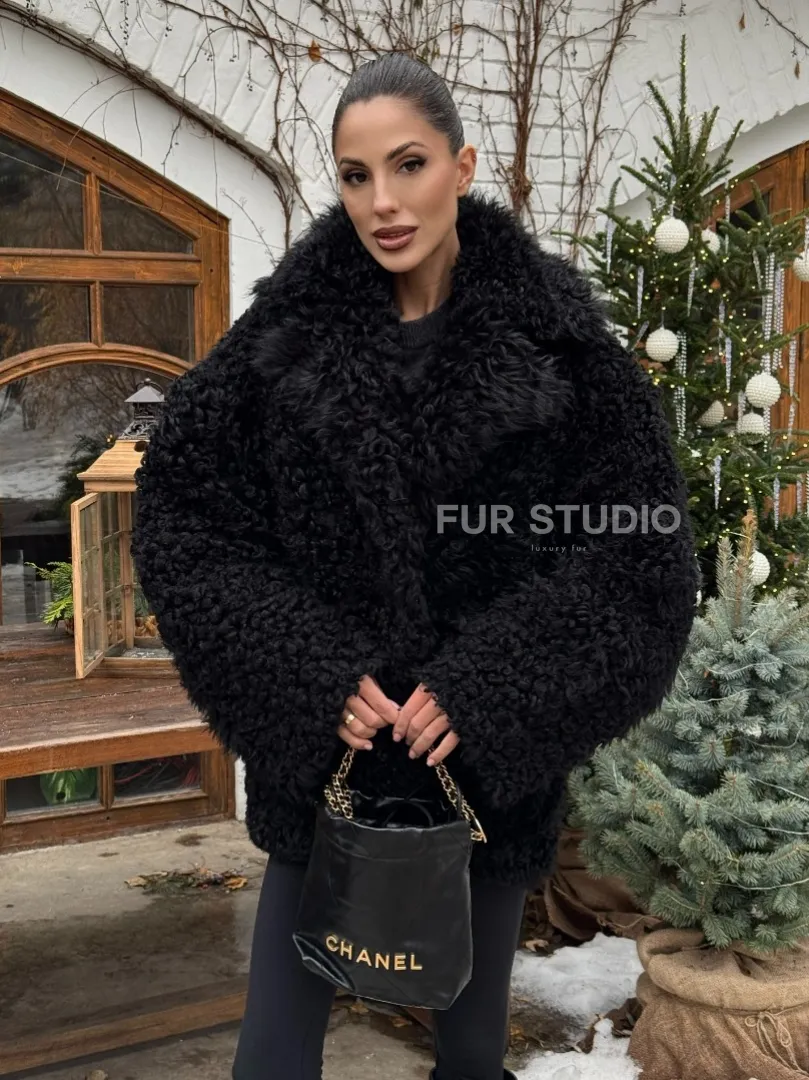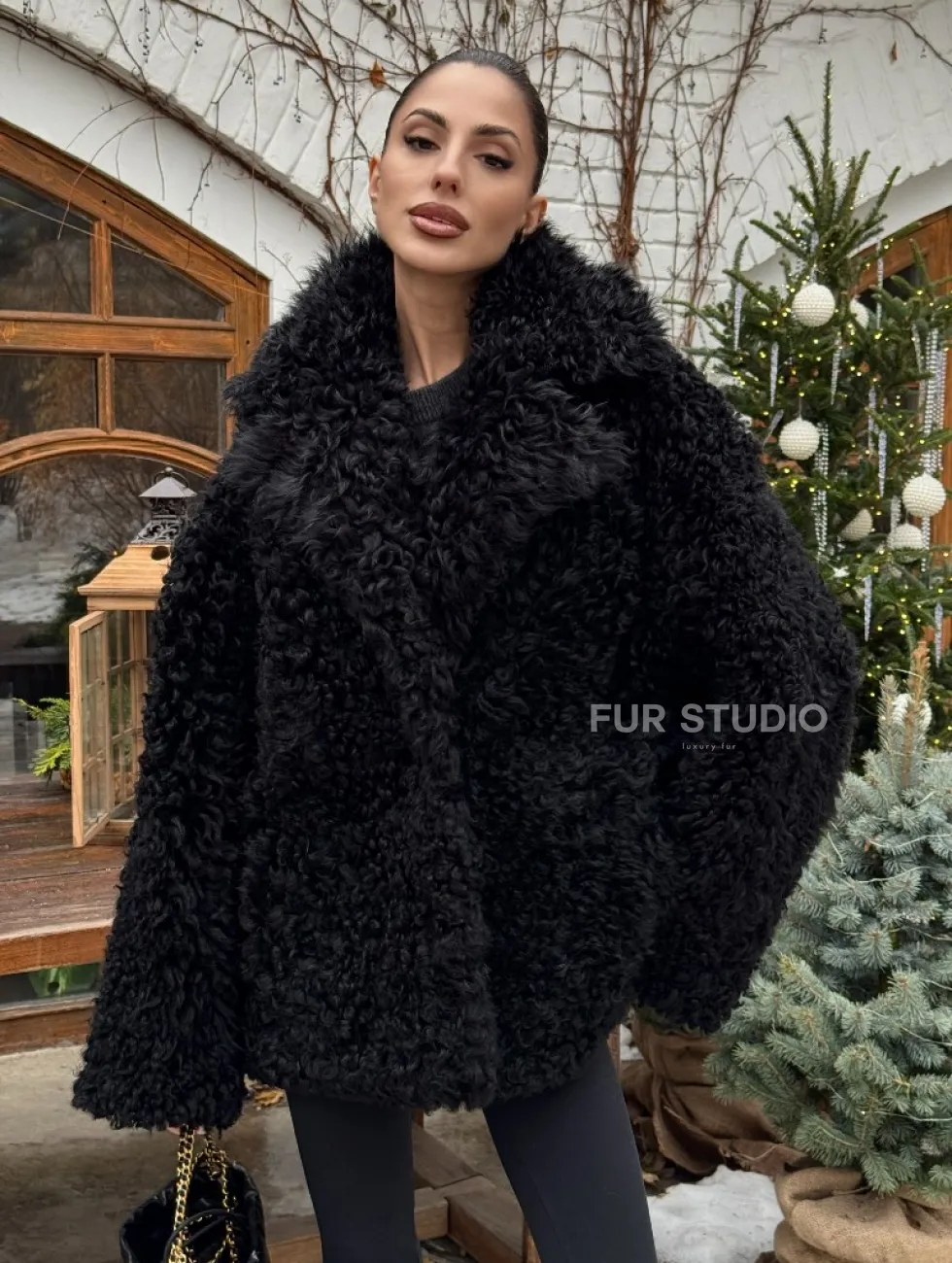 Черная короткая шуба - дубленка из испанской овчины «Тиградо» доступна для покупки в нашем шоуруме Furs Studio в Москве, а также предлагается удобная доставка во все города России. Обогатите свой гардероб этой дубленкой, которая прослужит вам многие годы, добавив немного роскоши в ваш повседневный образ.