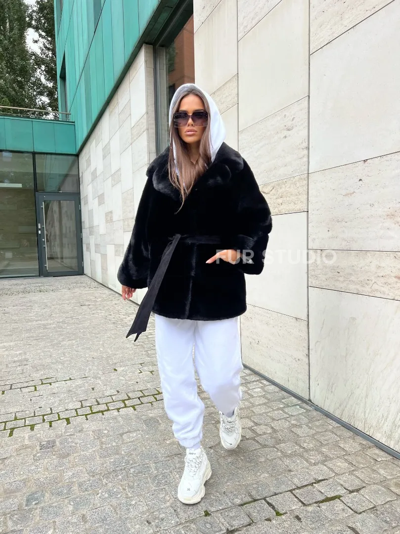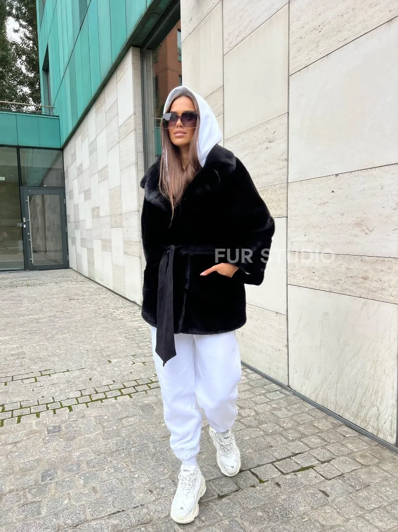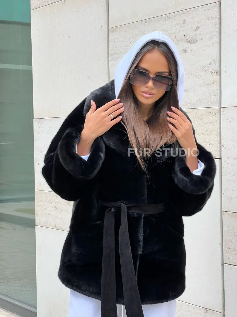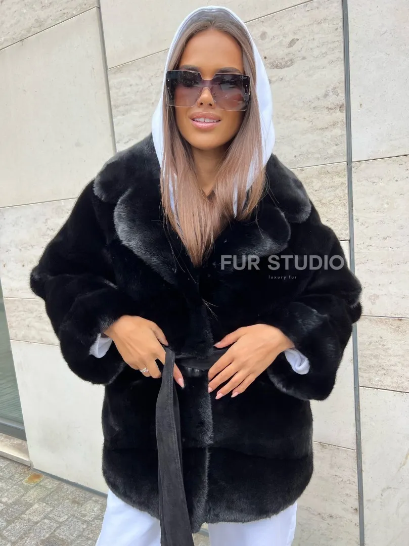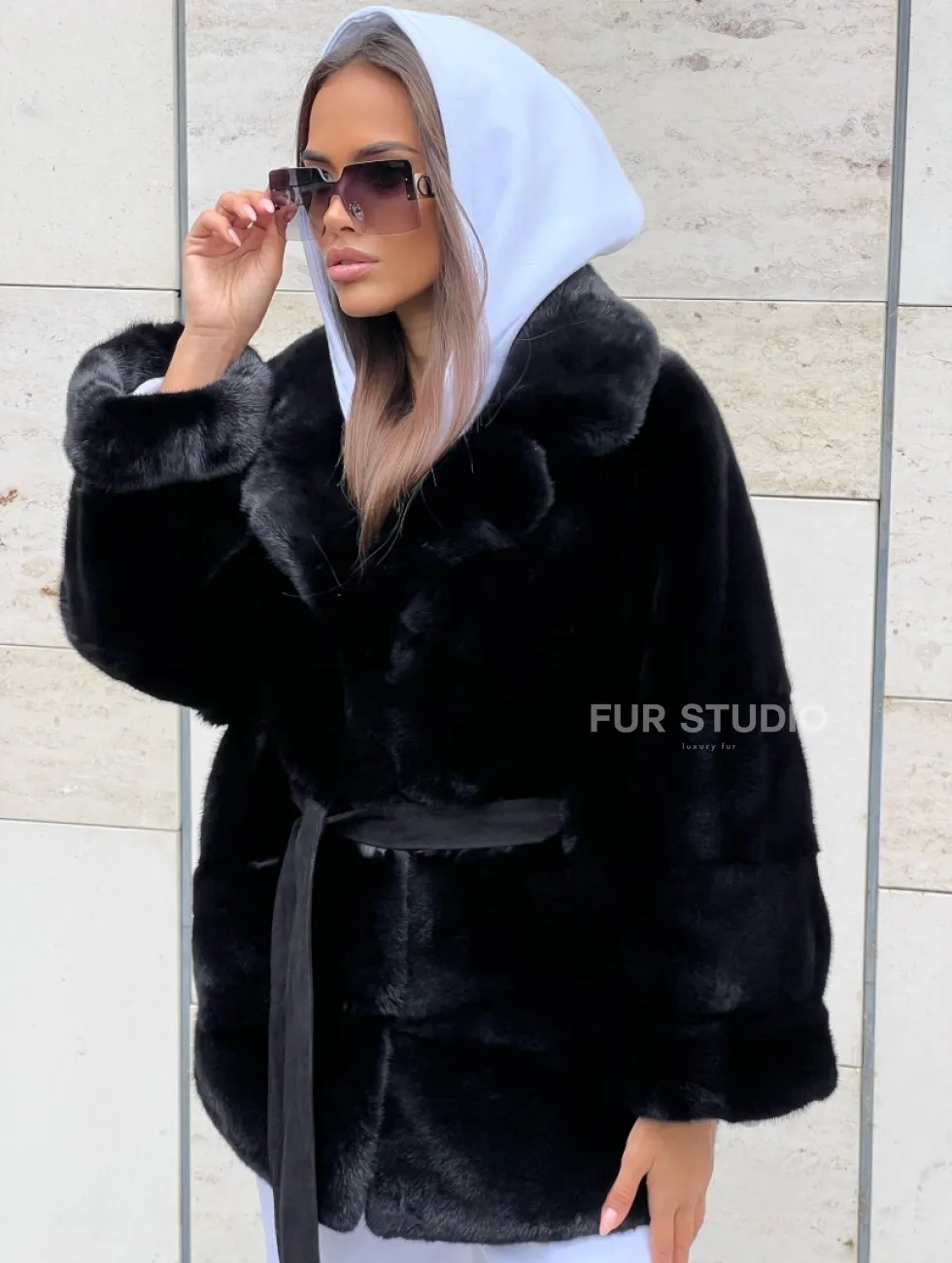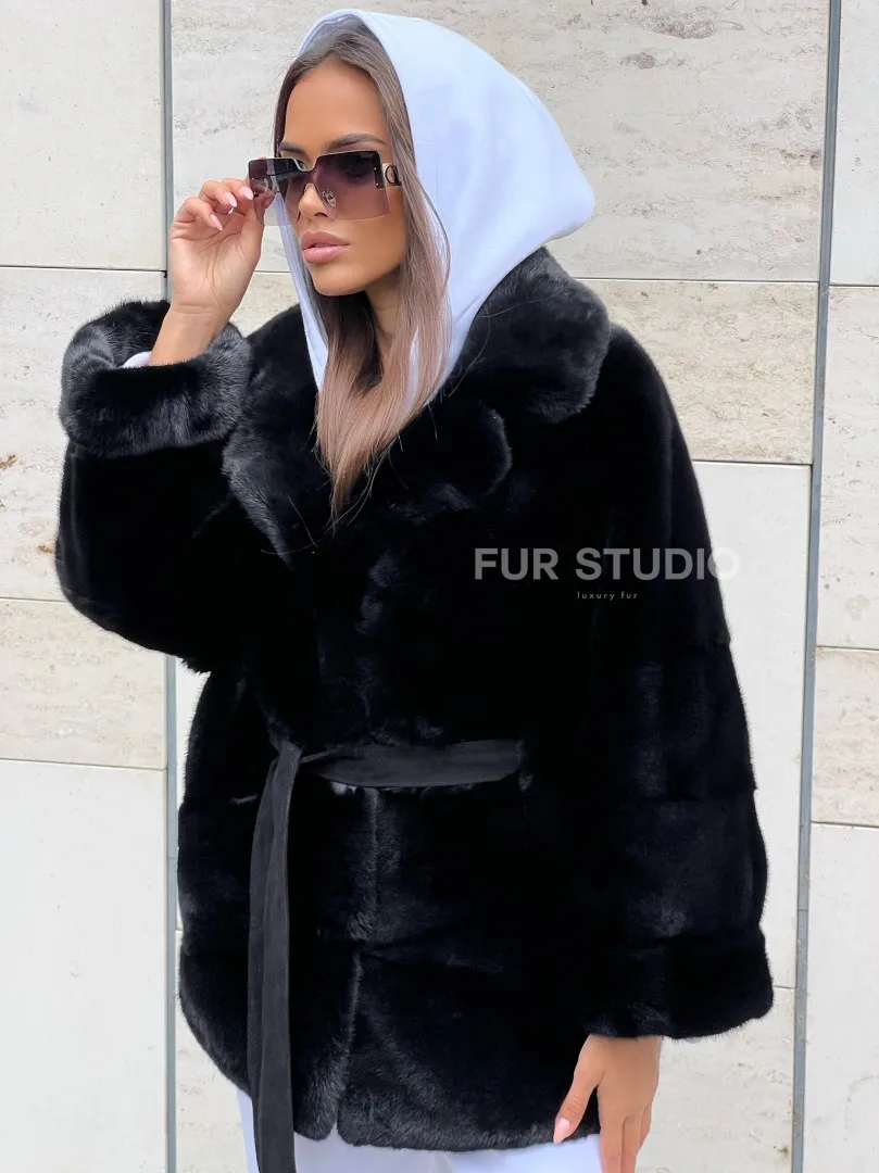 Черная короткая шуба из плюшевой норки Velvet с английским воротником – выбор женщин, которые разбираются в моде. Черный цвет выгодно оттенит цвет волос и глаз хозяйки. Широкие рукава подчеркнут изящество кистей. Удобные карманы позаботятся о комфорте ручек в непогоду. Оригинальный пояс выгодно очертит талию, делая ее изящной. Роскошный английский воротник подчеркнет изгибы шеи.