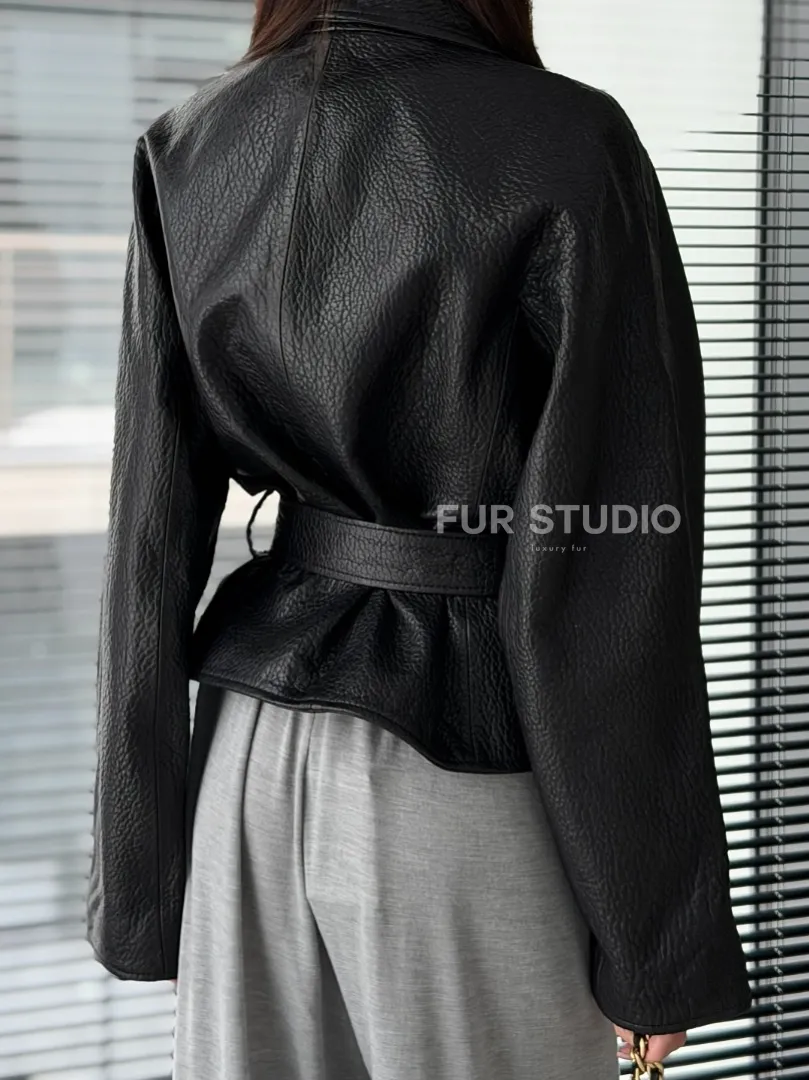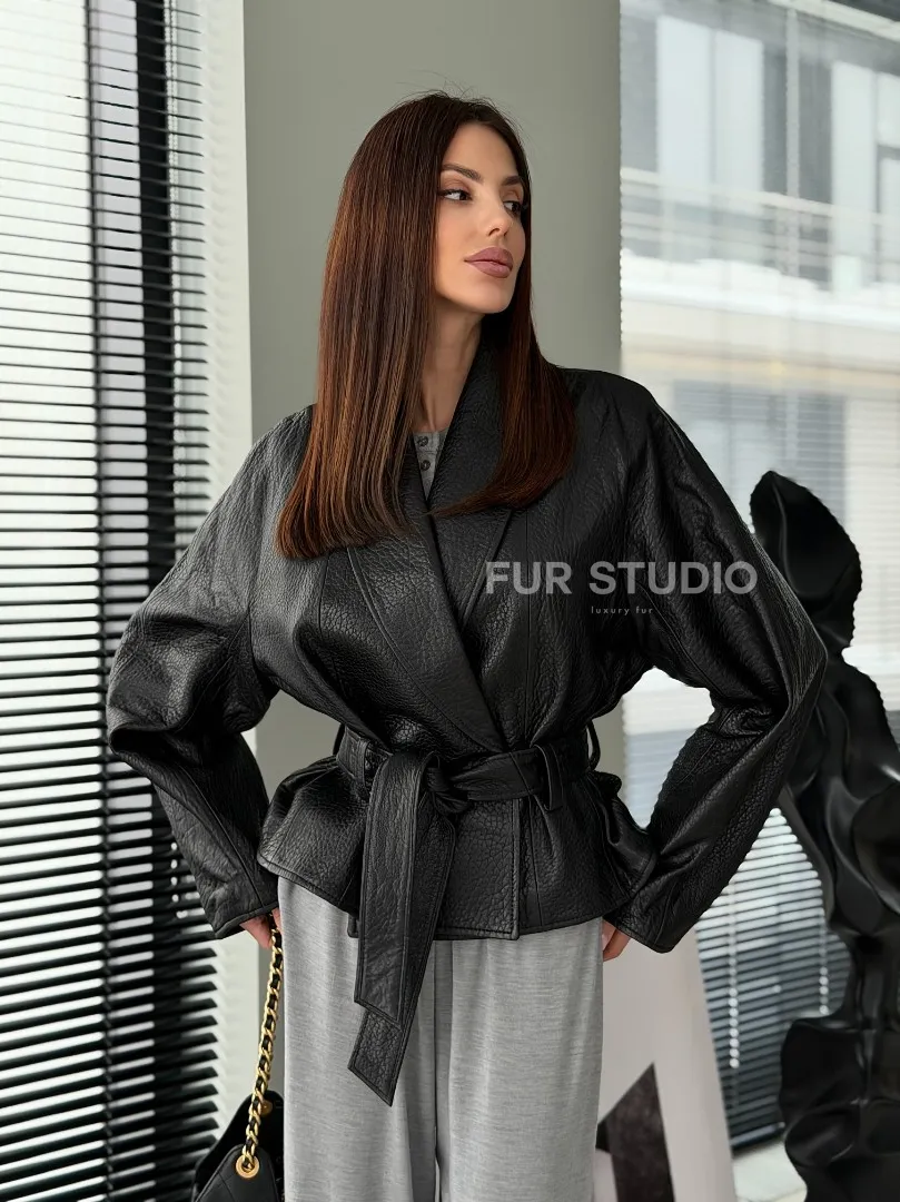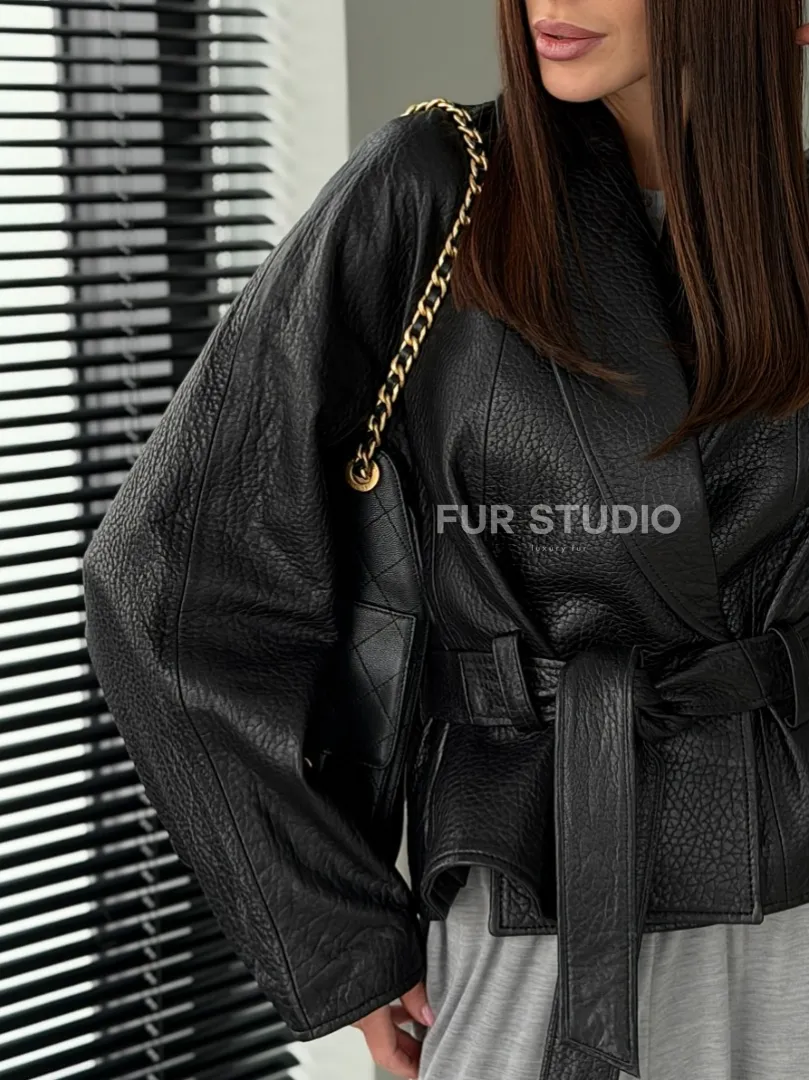 Черная куртка из натуральной кожи доступна для покупки в нашем шоуруме Furs Studio в Москве, где также предоставляется удобная доставка во все города России.