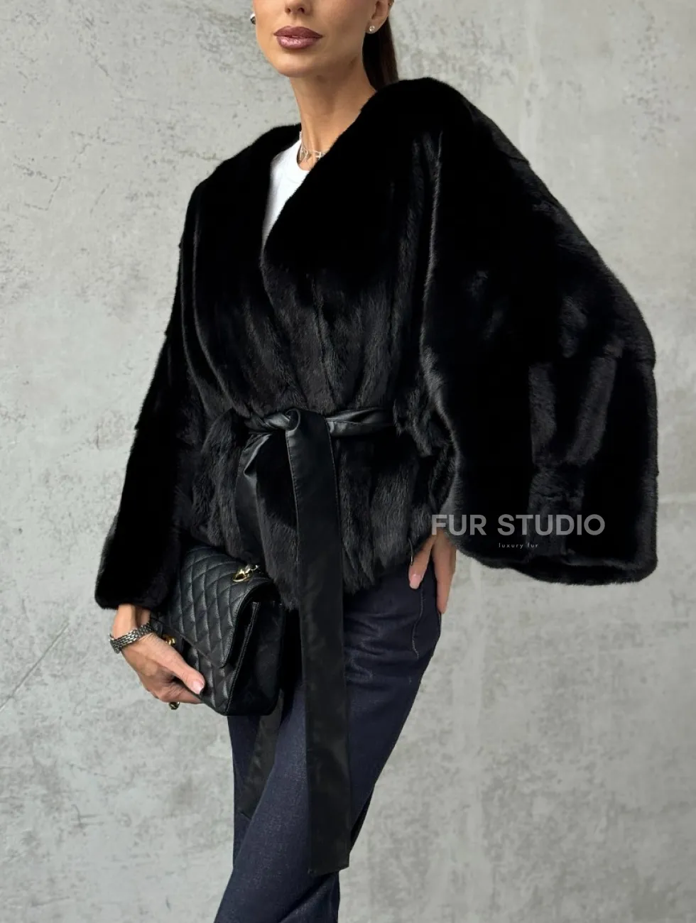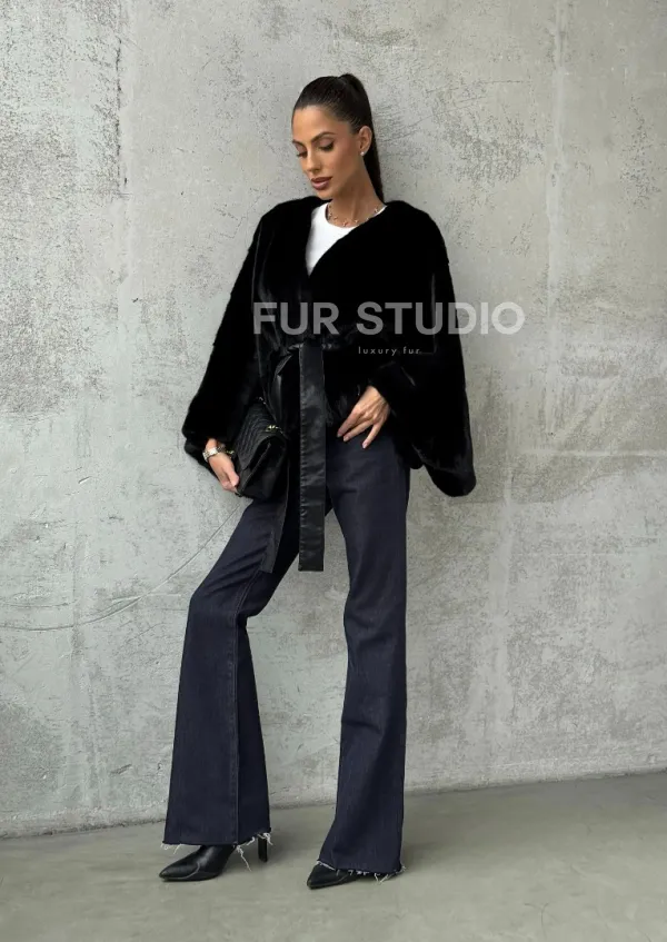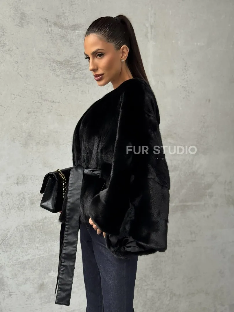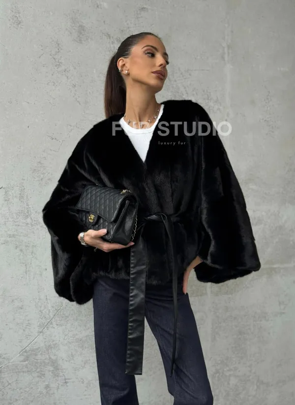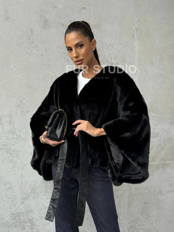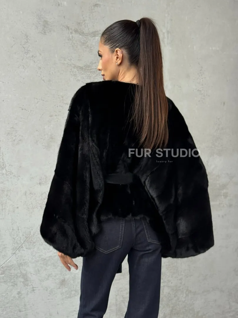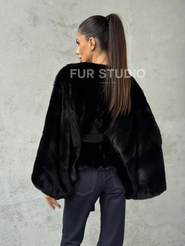 Мех данной шубы аукционная норка, цвет черный. Предлагается в размерах от 38 до 54 (oversize). Длина модели 50-55 см, что выгодно подчеркивает фигуру девушек. Эта модель идеально подойдет для девушек и женщин, предпочитающих роскошные натуральные меха.