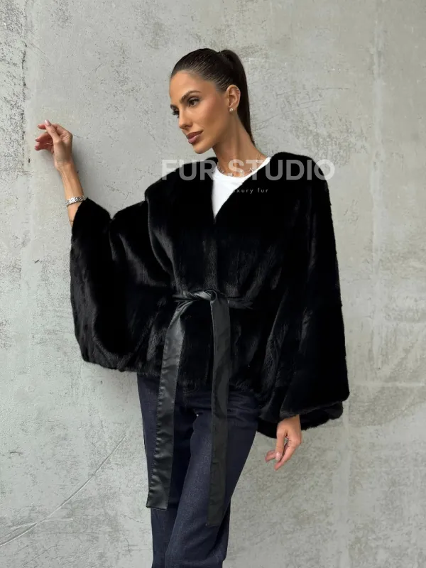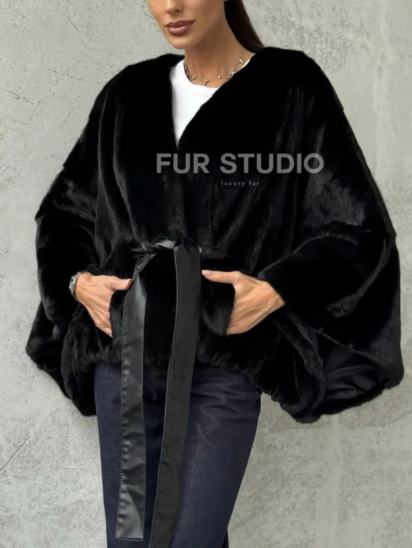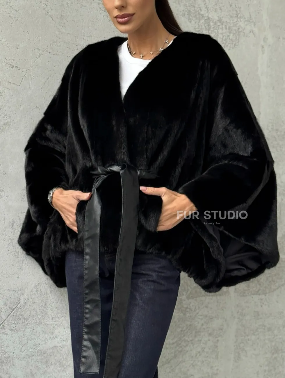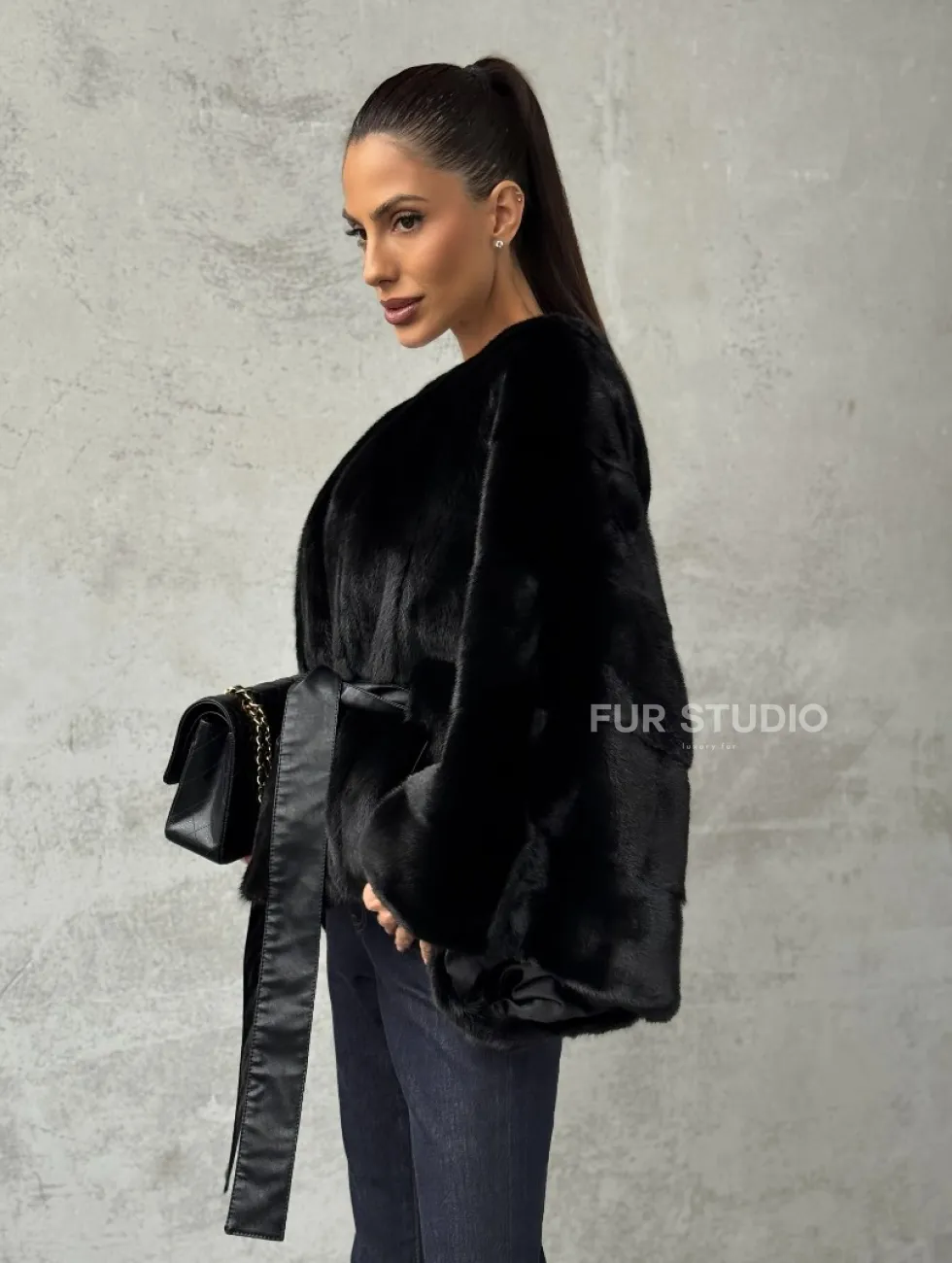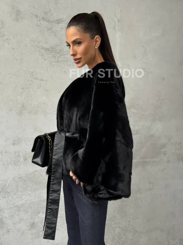 Мех данной шубы аукционная норка, цвет черный. Предлагается в размерах от 38 до 54 (oversize). Длина модели 50-55 см, что выгодно подчеркивает фигуру девушек. Эта модель идеально подойдет для девушек и женщин, предпочитающих роскошные натуральные меха.