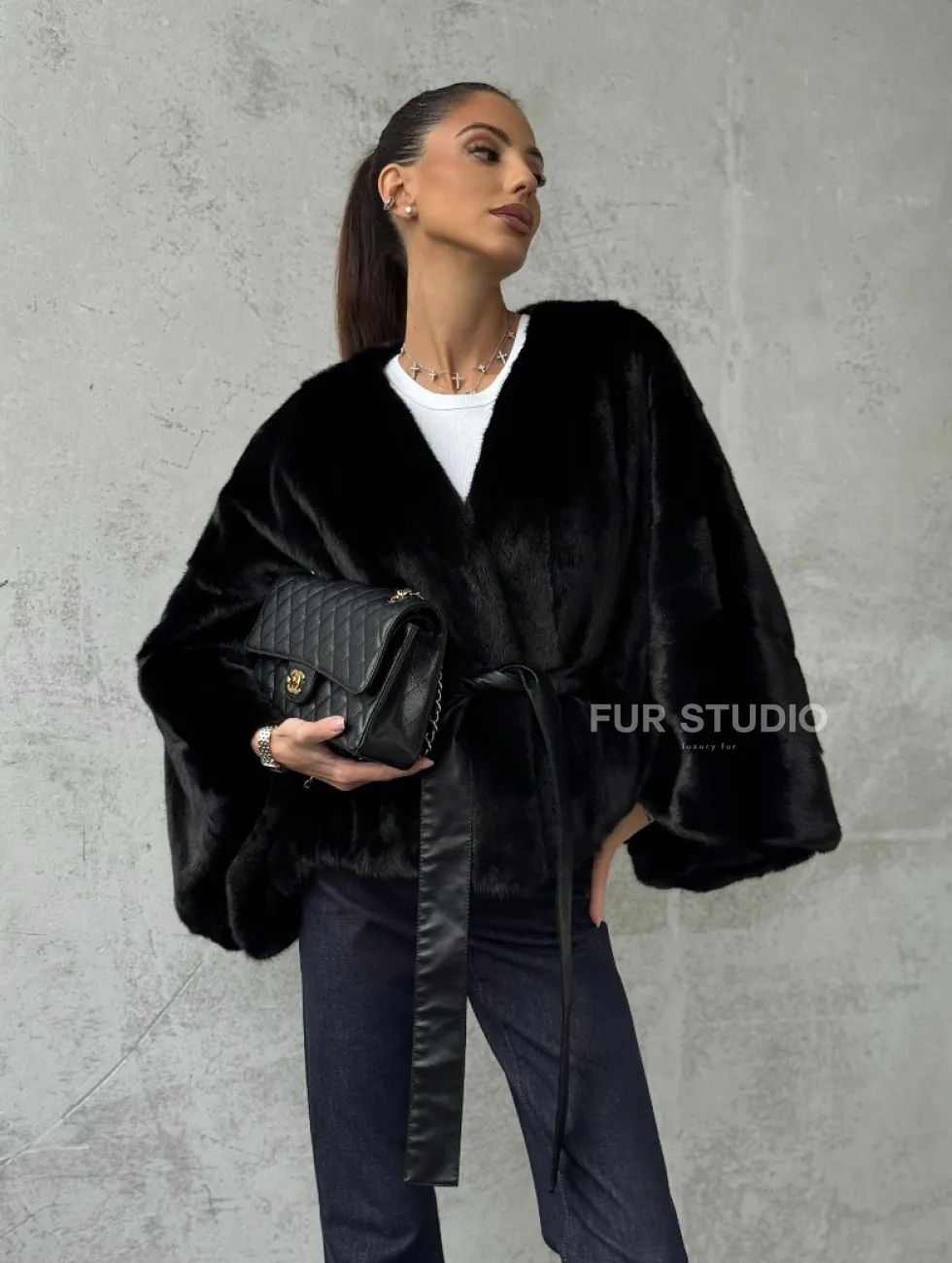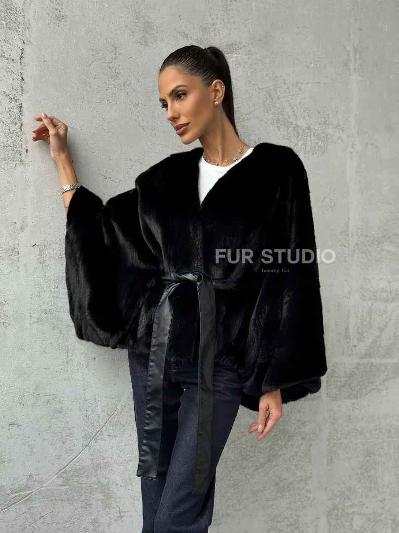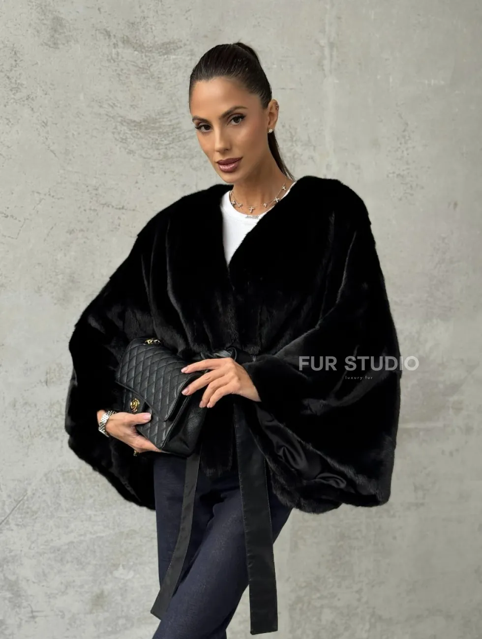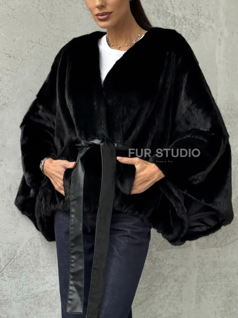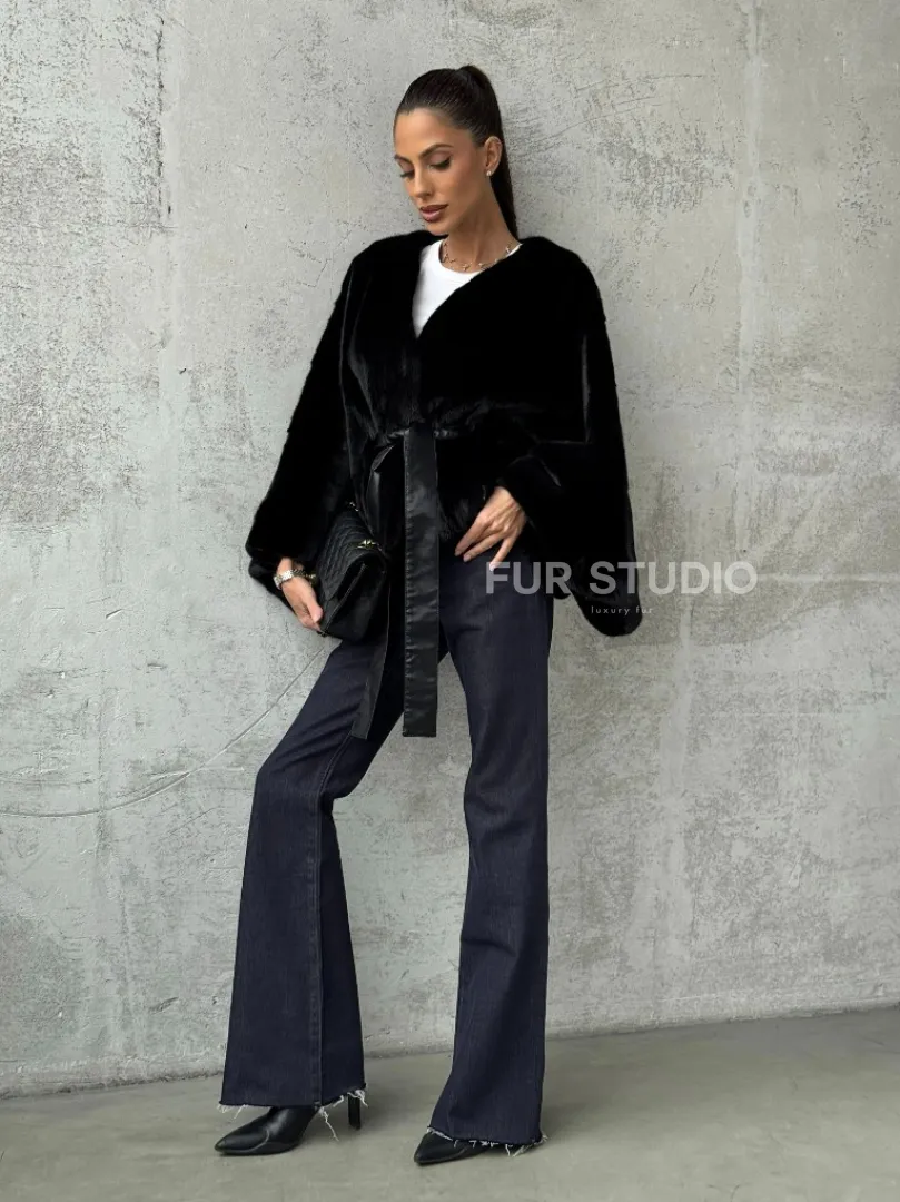 Мех данной шубы аукционная норка, цвет черный. Предлагается в размерах от 38 до 54 (oversize). Длина модели 50-55 см, что выгодно подчеркивает фигуру девушек. Эта модель идеально подойдет для девушек и женщин, предпочитающих роскошные натуральные меха.