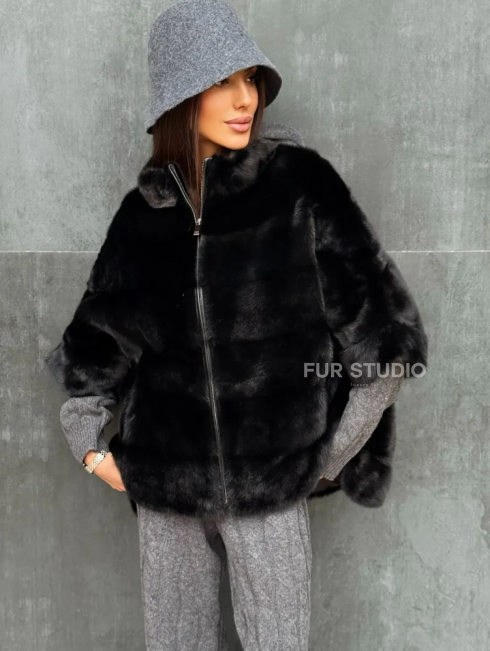 Мех данной шубы аукционная норка , цвет черный. Предлагается в размерах от 40 до 48 (oversize). Длина модели 60-65 см, что выгодно подчеркивает фигуру девушек. Эта модель идеально подойдет для девушек и женщин, предпочитающих роскошные натуральные меха.