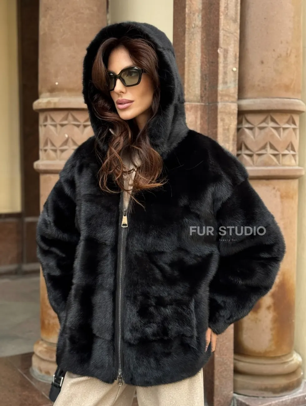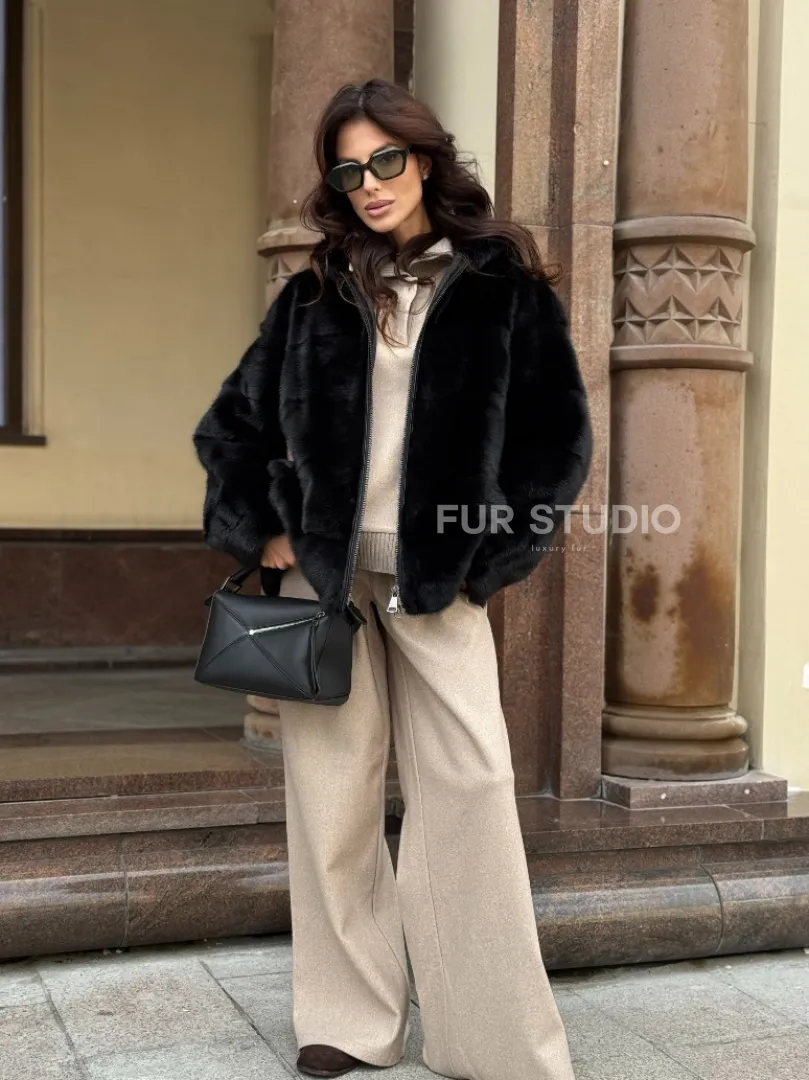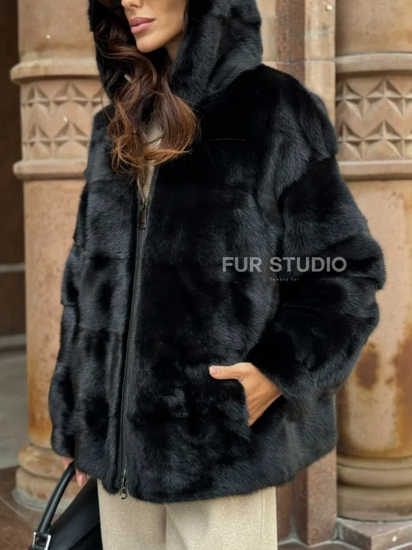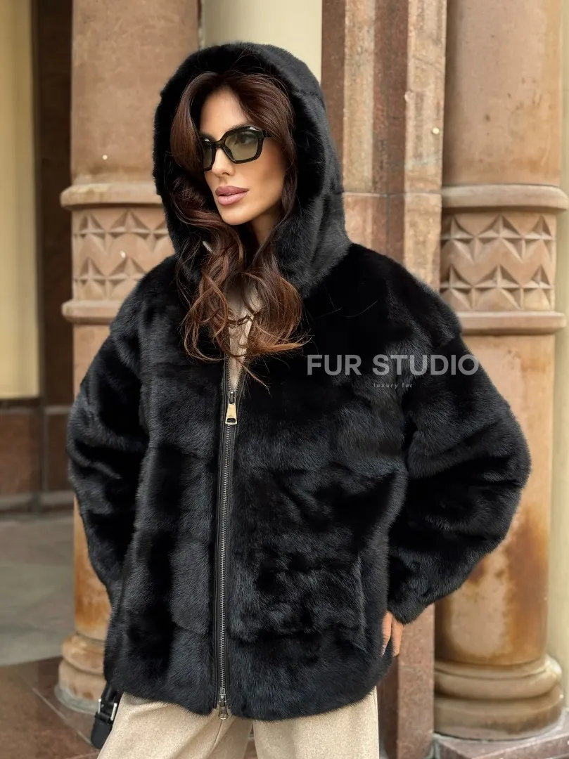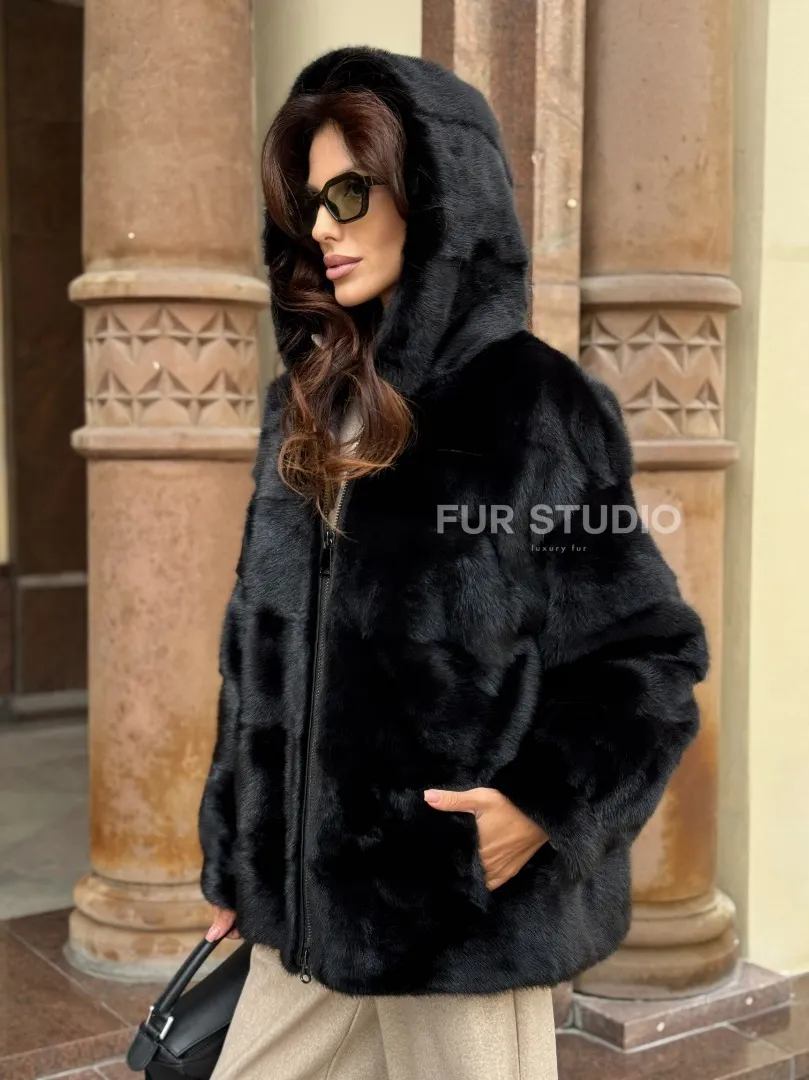 Черная норковая шуба с капюшоном доступна для покупки в нашем магазине Furs Studio в Москве, с возможностью доставки в любой город России. Добавьте немного стиля и элегантности в свой гардероб с этой курткой, которая будет вам служить многие годы, подчеркивая ваш неповторимый стиль.