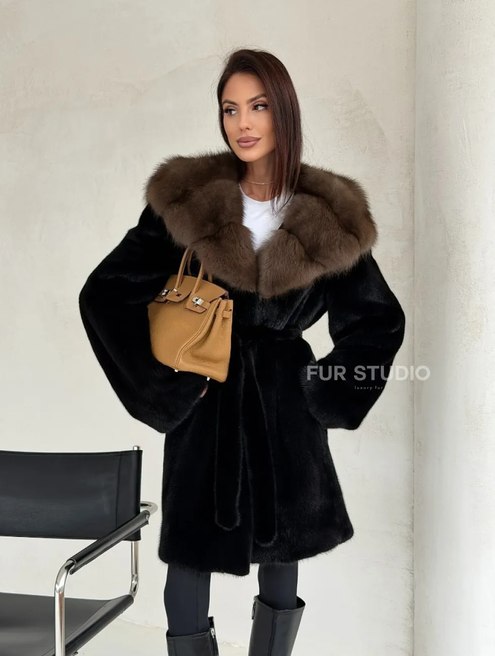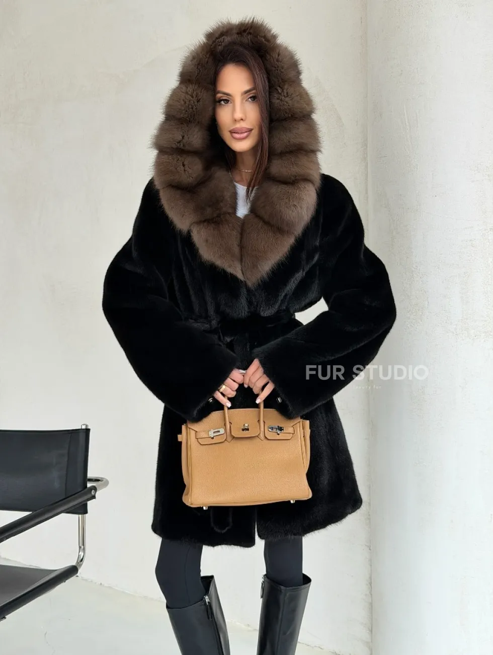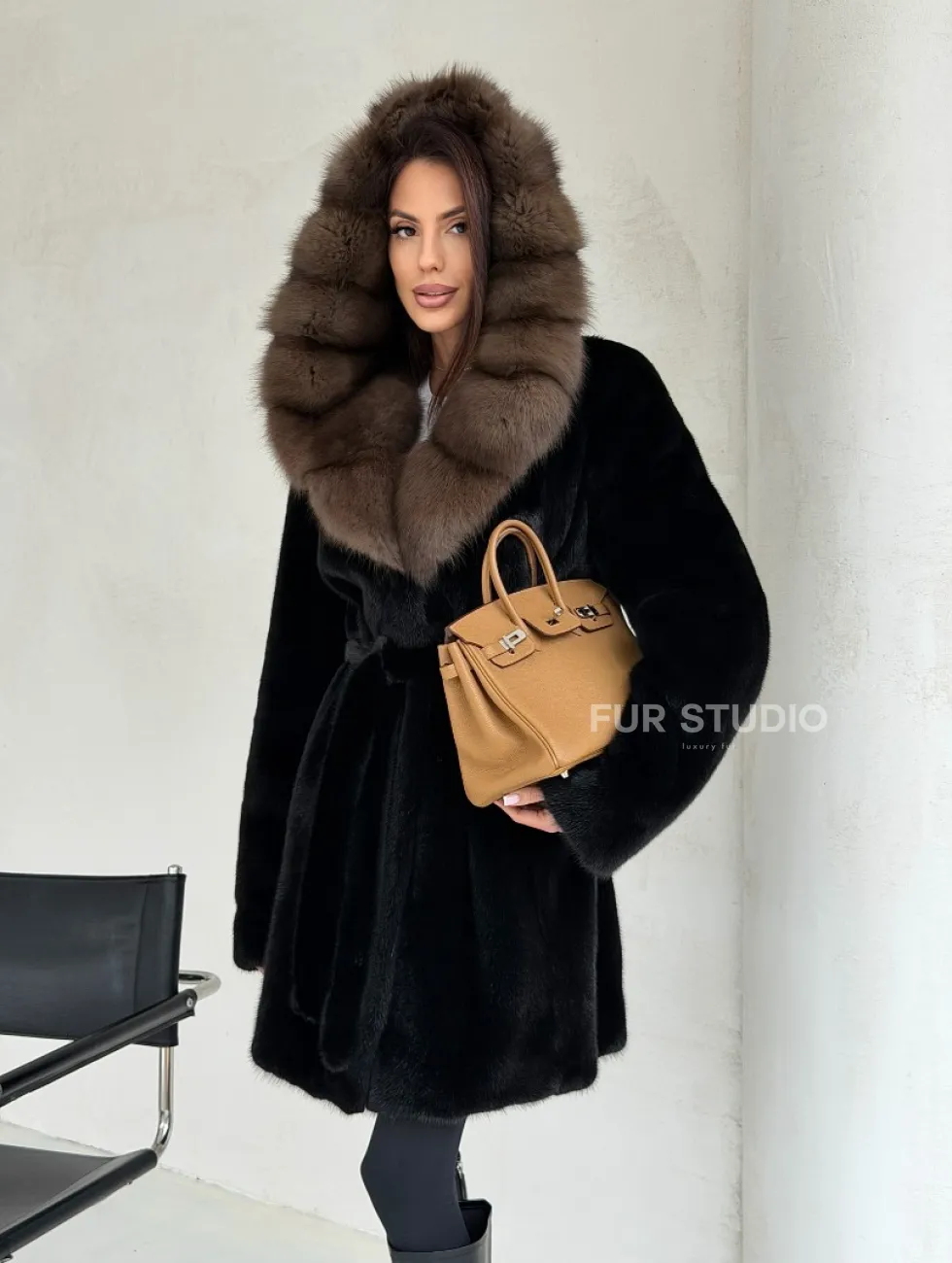 Черная норковая шуба средней длины - капюшон куница доступна для покупки в нашем шоуруме Furs Studio в Москве. У нас так же есть доставка во все города России. Добавьте немного роскоши в свой гардероб с этой шубой, которая будет служить вам многие годы.
