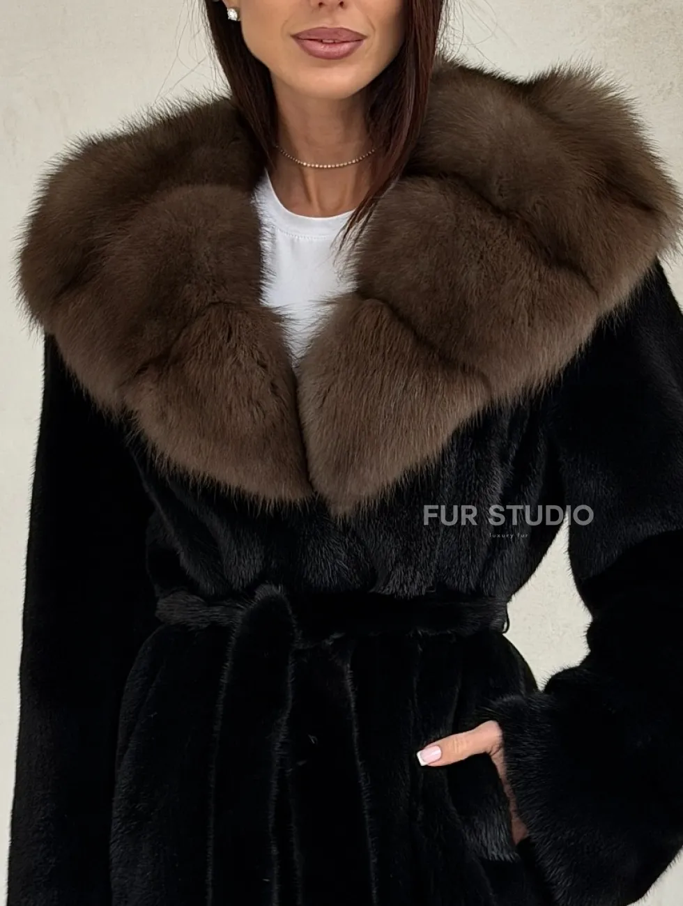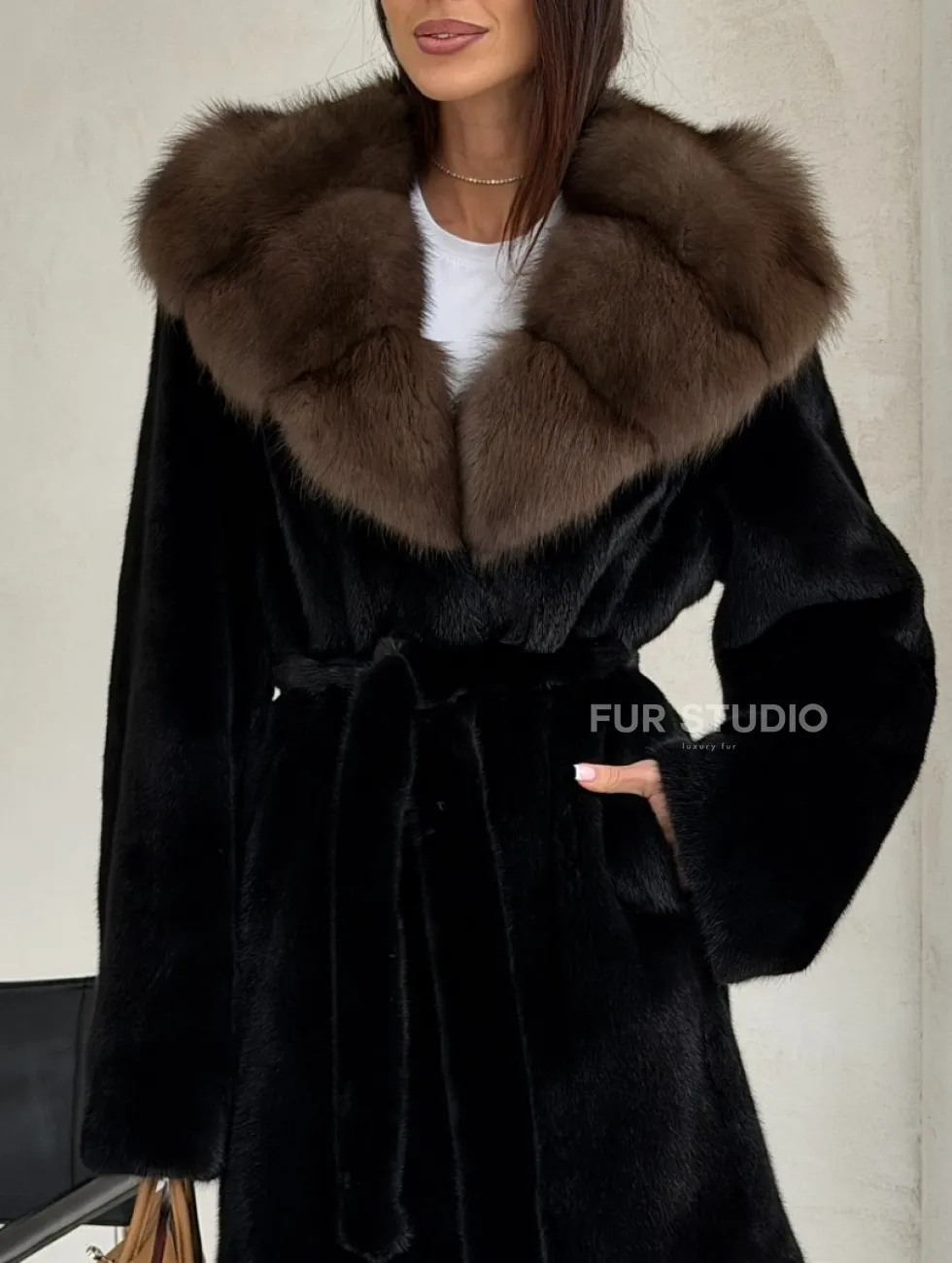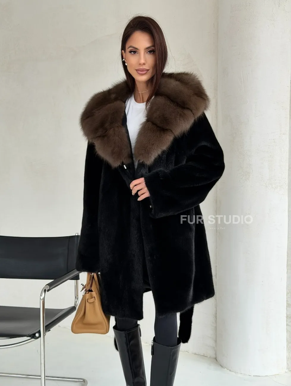 Черная норковая шуба средней длины - капюшон куница доступна для покупки в нашем шоуруме Furs Studio в Москве. У нас так же есть доставка во все города России. Добавьте немного роскоши в свой гардероб с этой шубой, которая будет служить вам многие годы.
