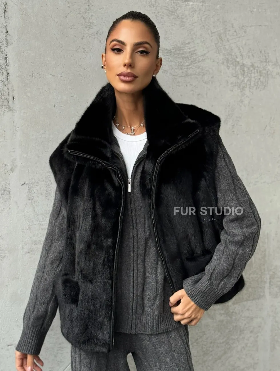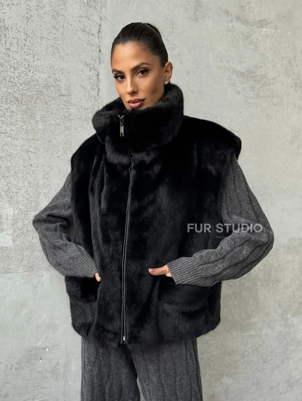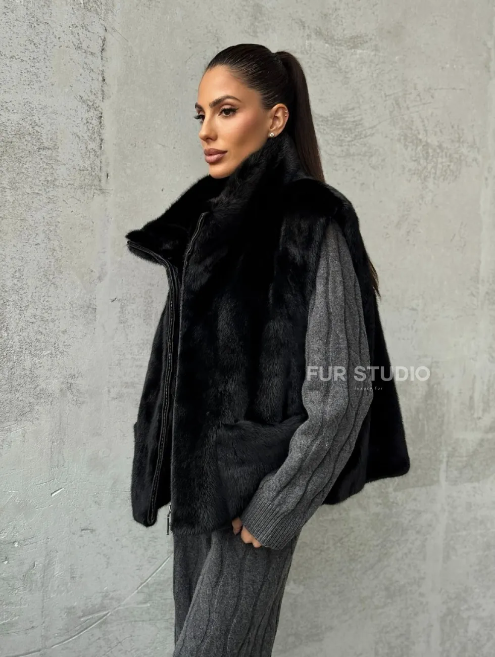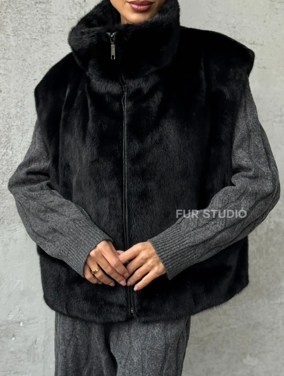 Черная норковая жилетка доступен для покупки в нашем шоуруме Furs Studio в Москве. Мы также предлагаем удобную доставку во все города России. Приобретите немного роскоши для вашего гардероба с этой осенью-зимой!