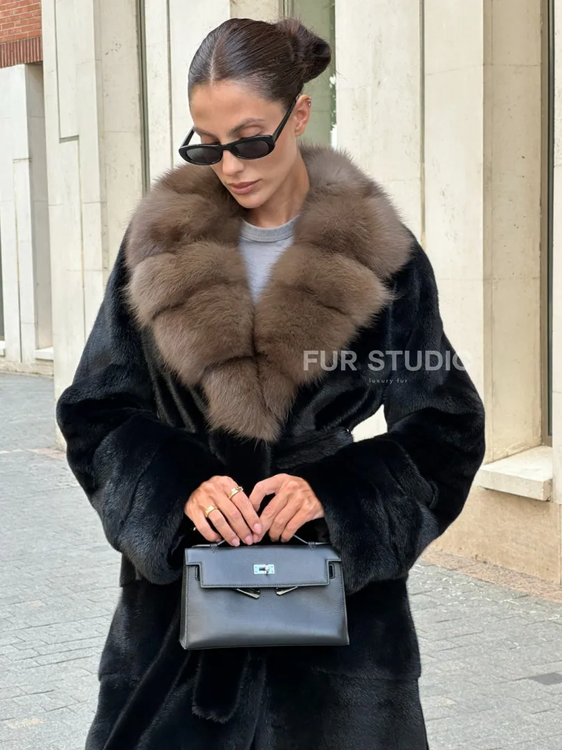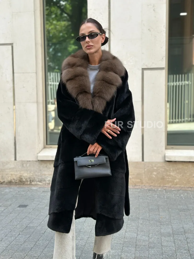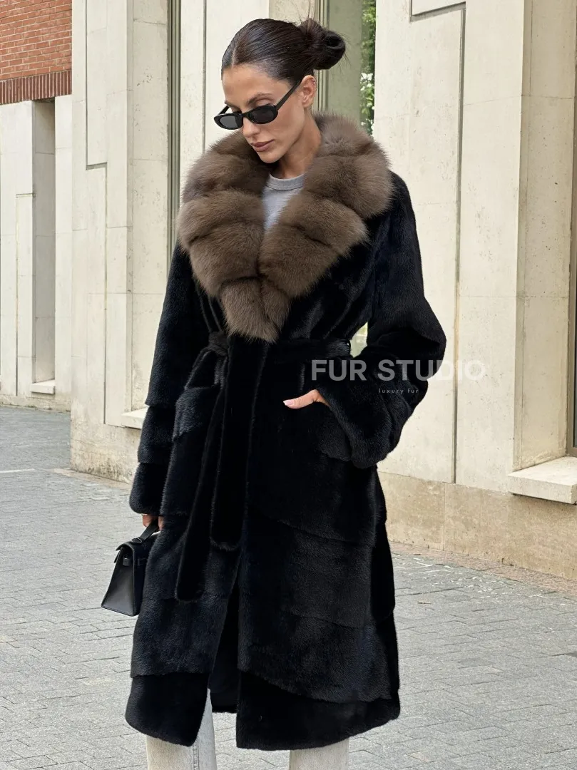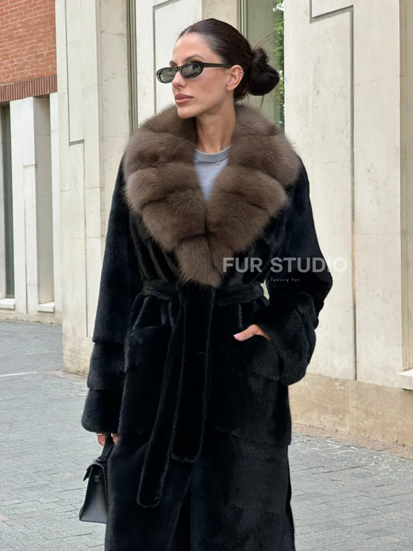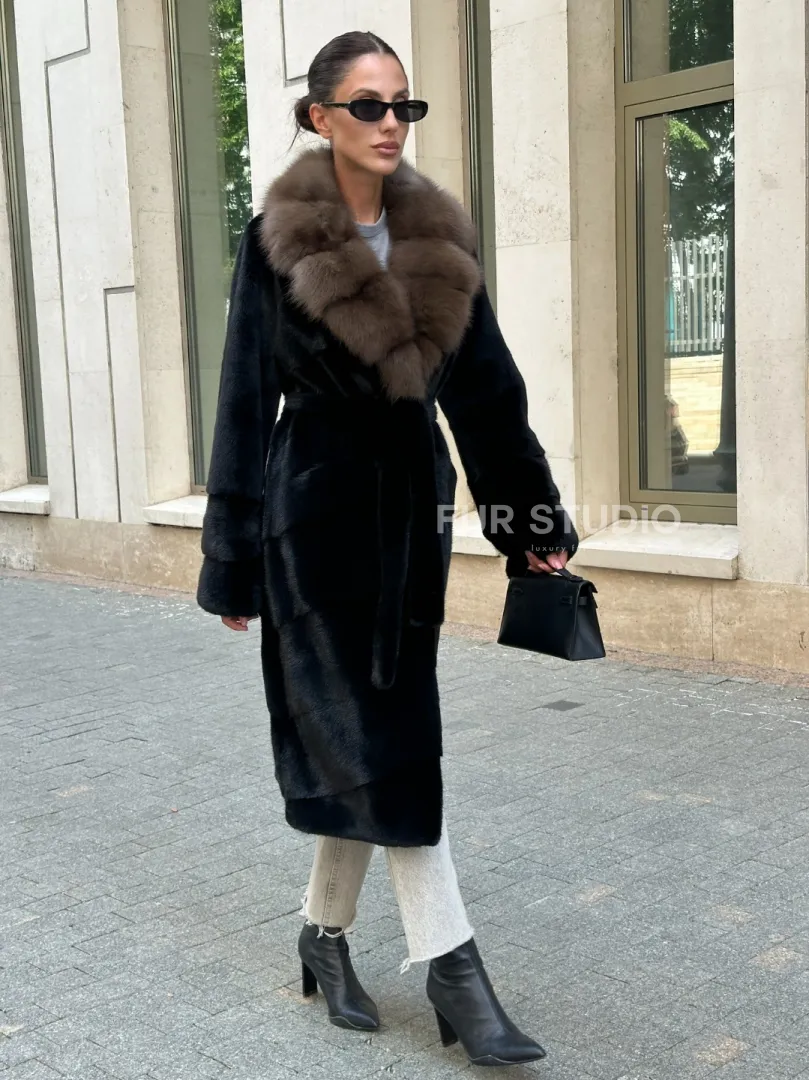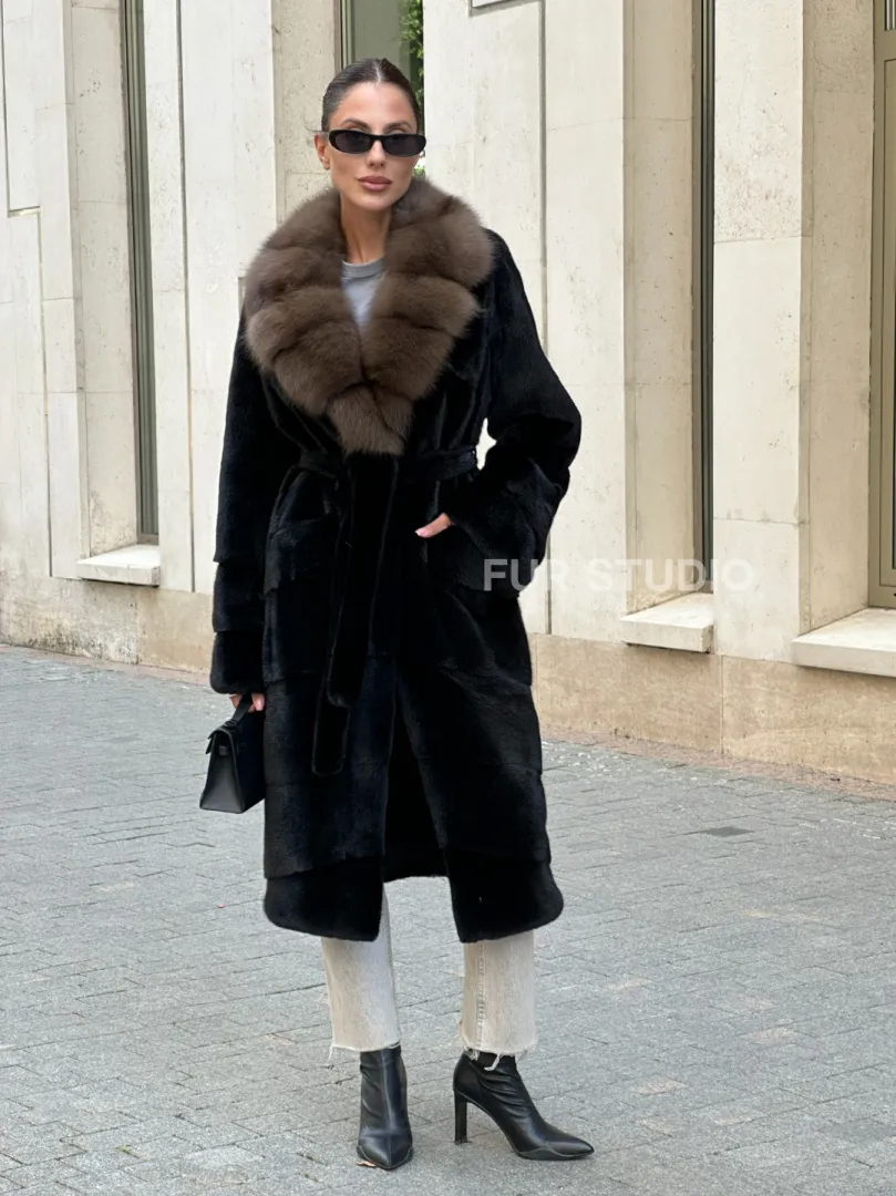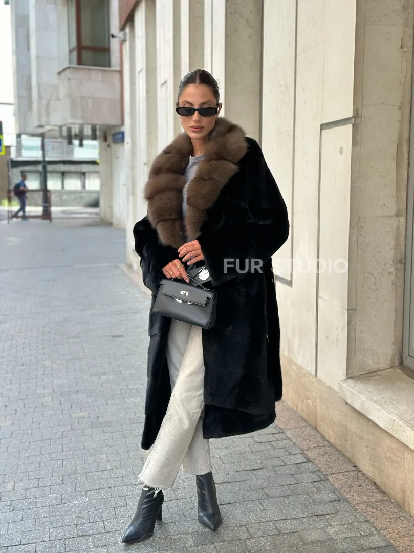 Черная шуба BLACK NAFA с английским воротником из куницы доступна для покупки в нашем шоуруме Furs Studio в Москве. У нас так же есть доставка во все города России. Добавьте немного роскоши в свой гардероб с этой шубой, которая будет служить вам многие годы.