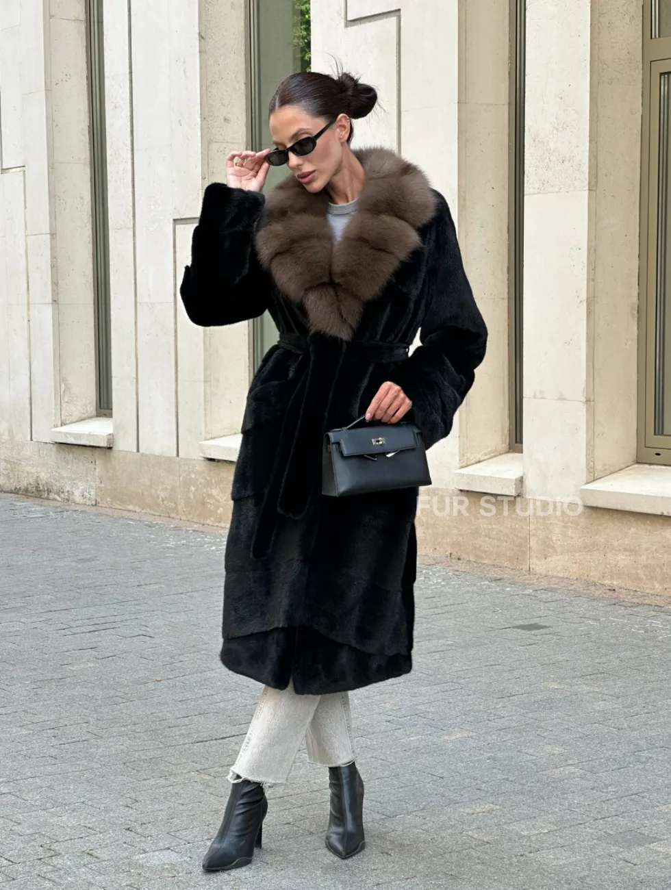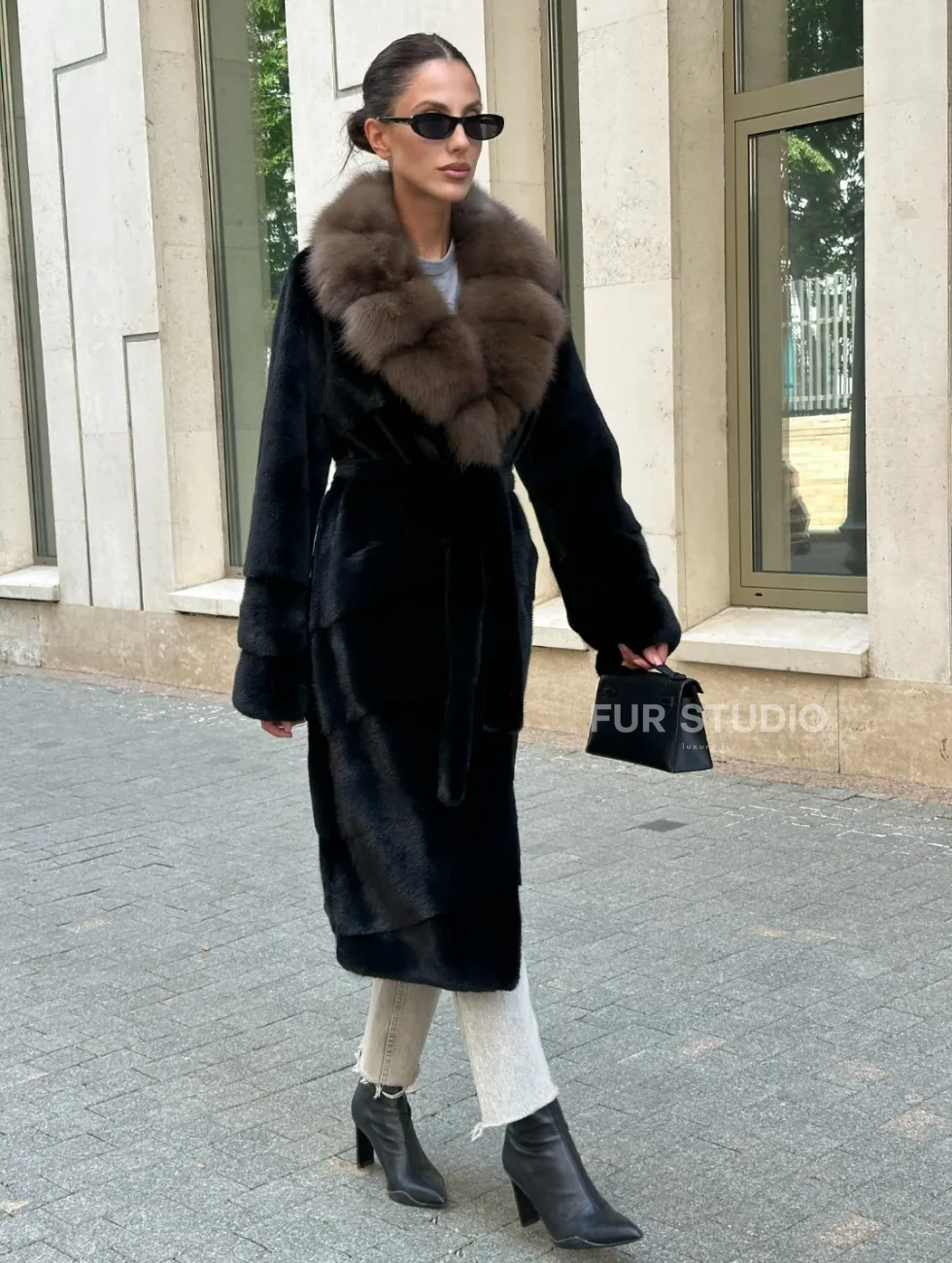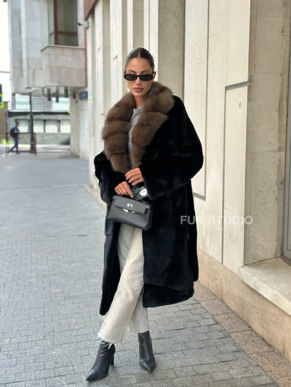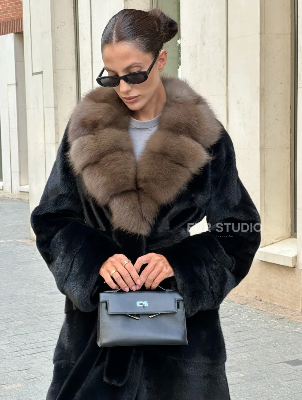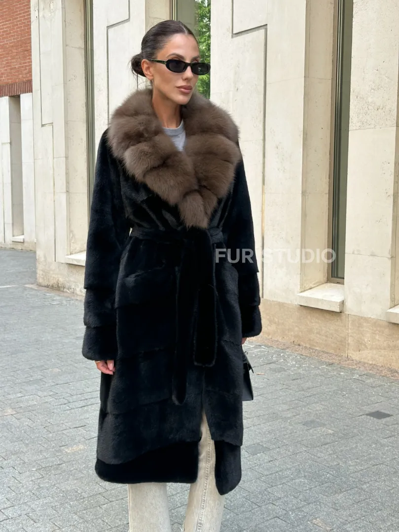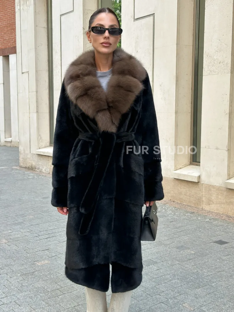 Черная шуба BLACK NAFA с английским воротником из куницы доступна для покупки в нашем шоуруме Furs Studio в Москве. У нас так же есть доставка во все города России. Добавьте немного роскоши в свой гардероб с этой шубой, которая будет служить вам многие годы.