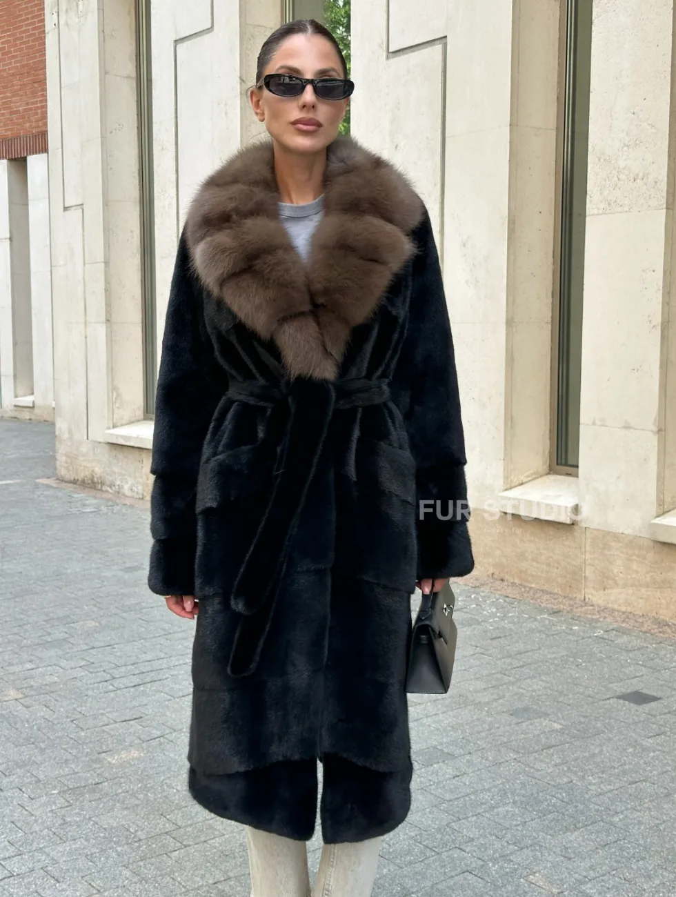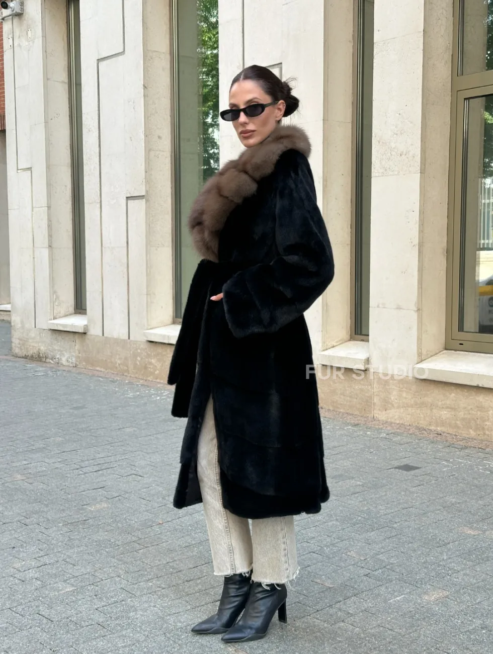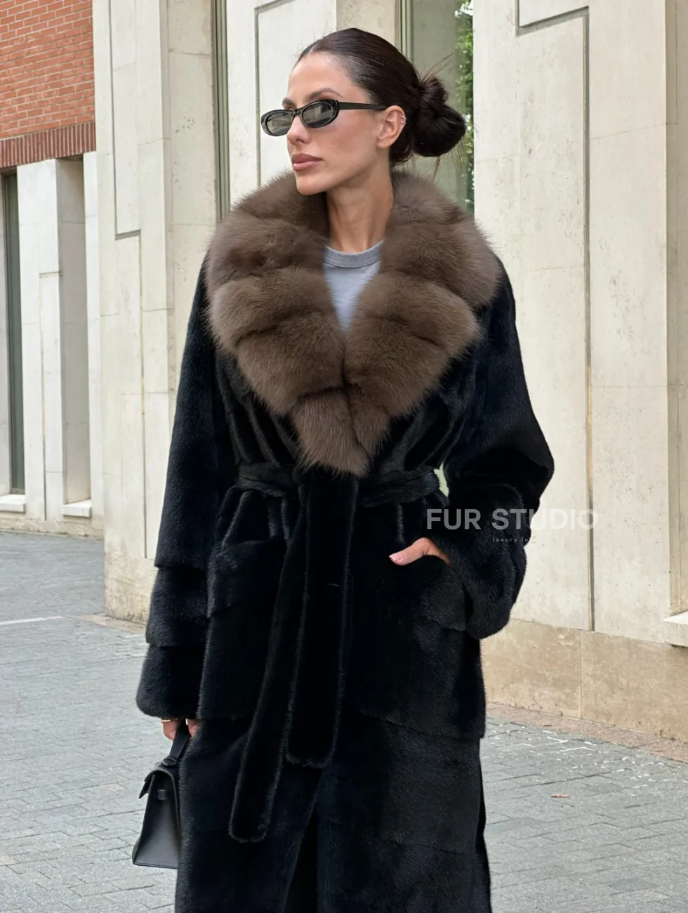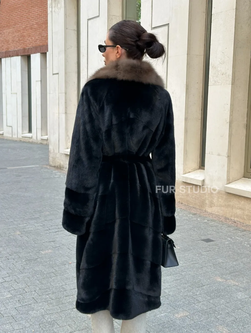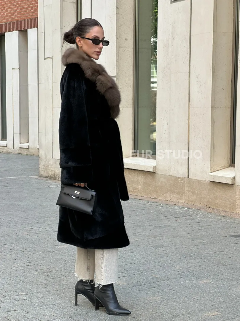 Черная шуба BLACK NAFA с английским воротником из куницы доступна для покупки в нашем шоуруме Furs Studio в Москве. У нас так же есть доставка во все города России. Добавьте немного роскоши в свой гардероб с этой шубой, которая будет служить вам многие годы.