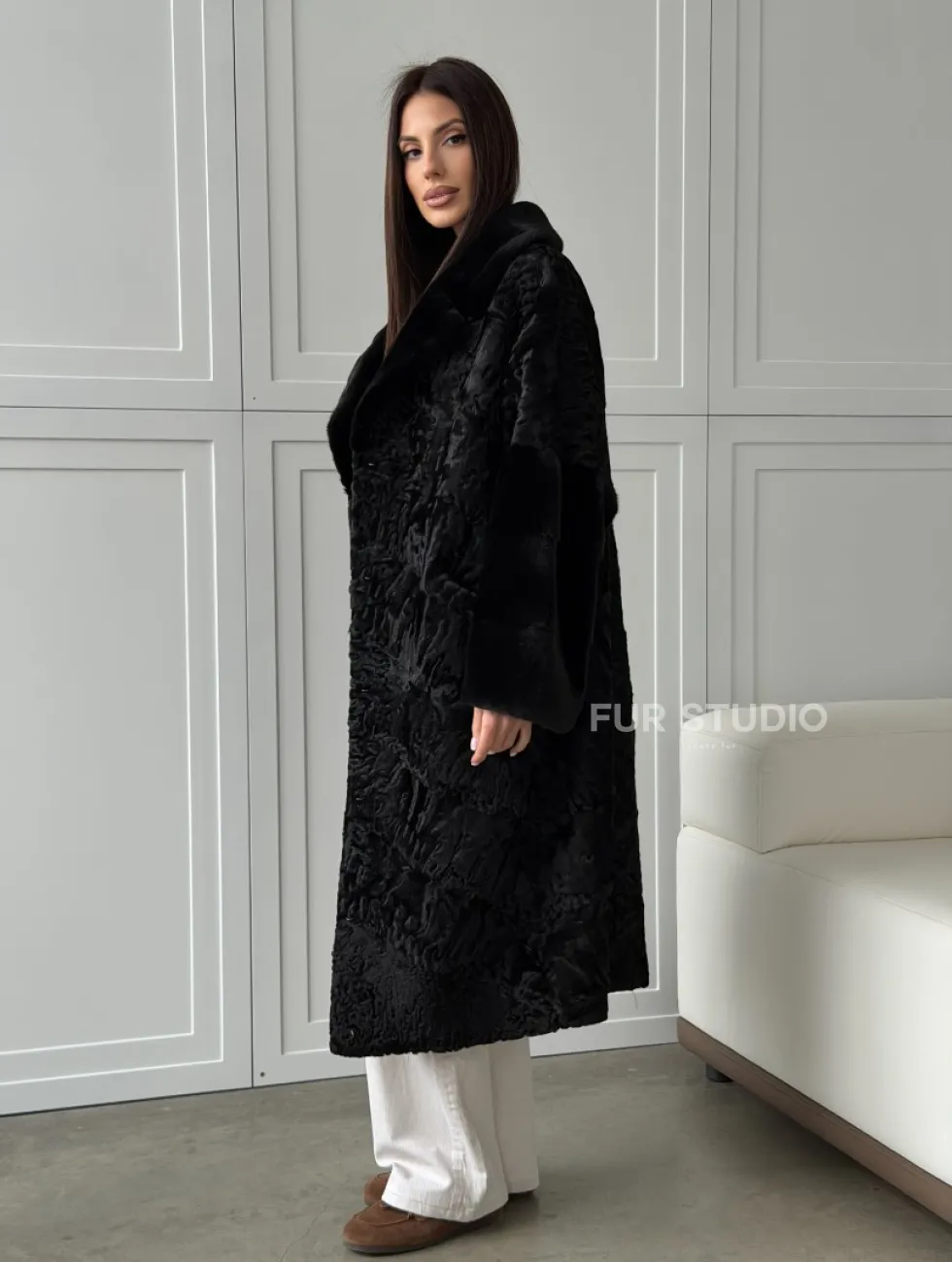 Черная шуба из каракуля с норкой доступна для покупки в нашем шоуруме Furs Studio в Москве. У нас так же есть доставка во все города России. Добавьте немного роскоши в свой гардероб с этой шубой, которая будет служить вам многие годы.