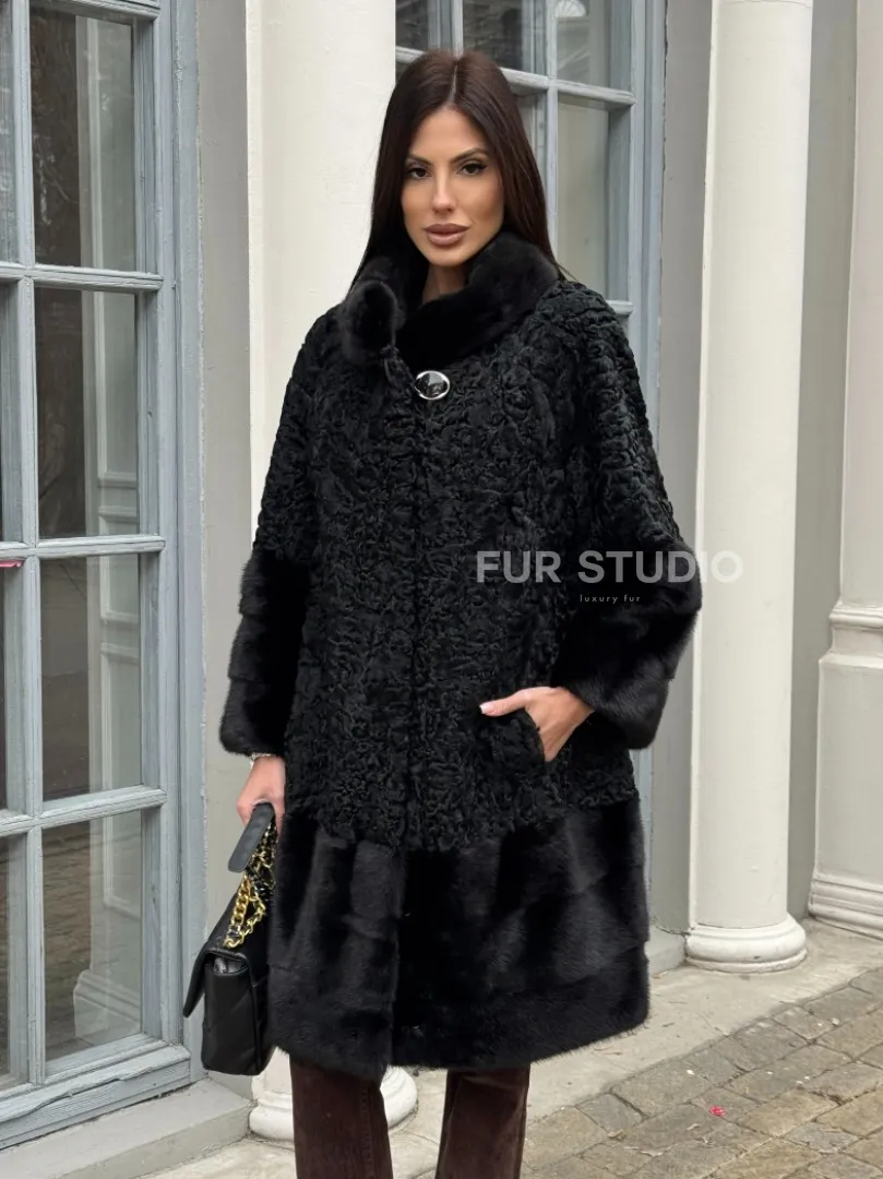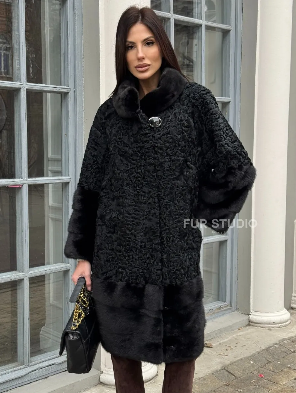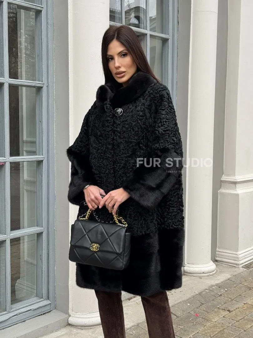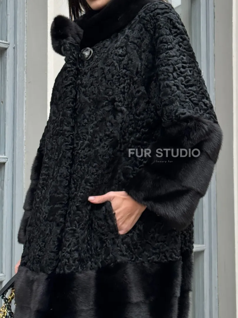 Черная шуба из меха каракульчи с отделкой из меха норки доступна для покупки в нашем шоуруме Furs Studio в Москве. У нас так же есть доставка во все города России. Добавьте немного роскоши в свой гардероб с этой шубой, которая будет служить вам многие годы.