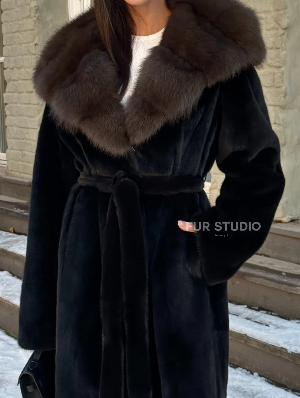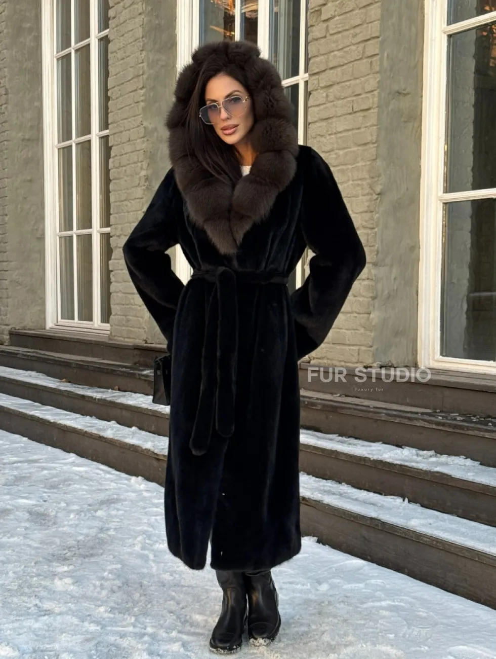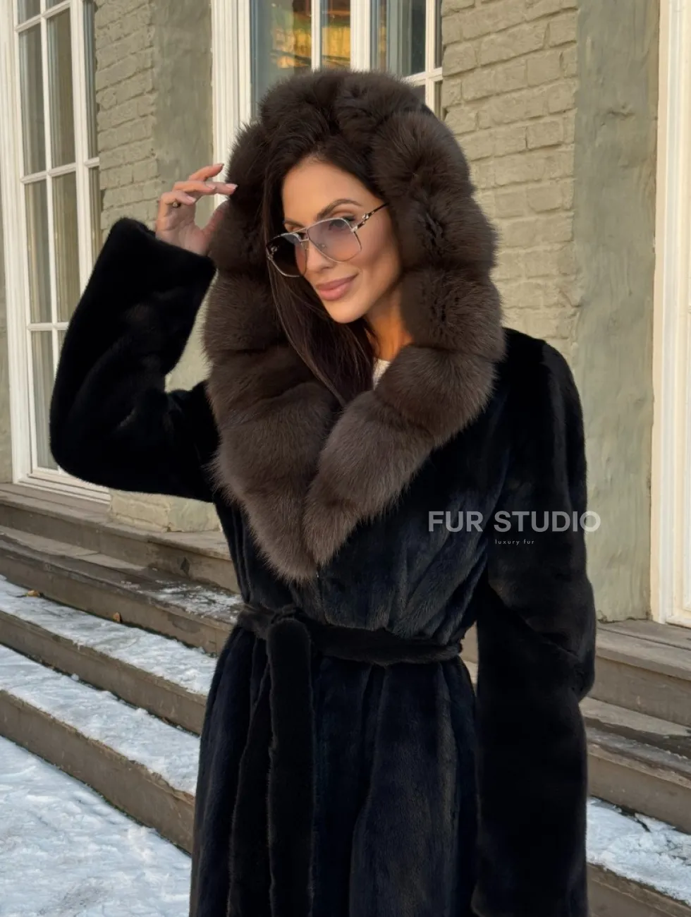 Черная шуба из плюшевой норки VELVET с капюшоном куница доступна для покупки в нашем шоуруме Furs Studio в Москве. У нас так же есть доставка во все города России. Добавьте немного роскоши в свой гардероб с этой шубой, которая будет служить вам многие годы.