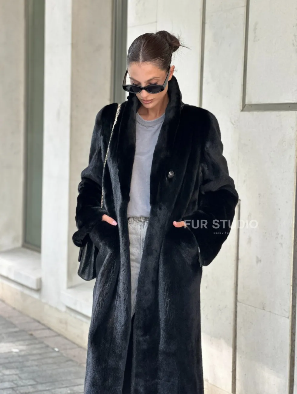 Черная шуба пальто из меха норки Saga furs доступна для покупки в нашем шоуруме Furs Studio в Москве. У нас так же есть доставка во все города России. Добавьте немного роскоши в свой гардероб с этой шубой, которая будет служить вам многие годы.
