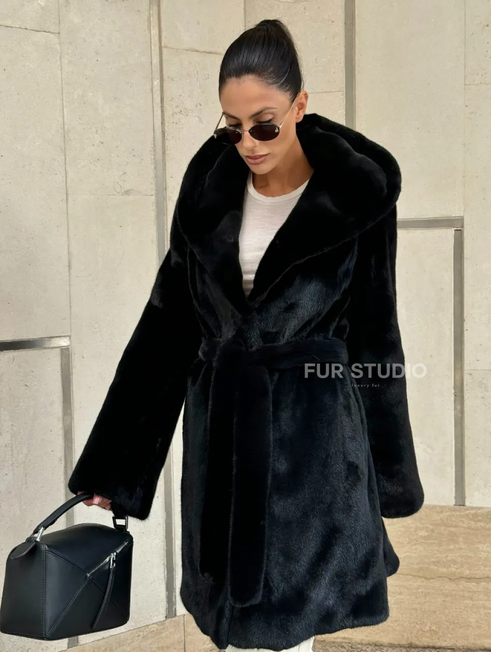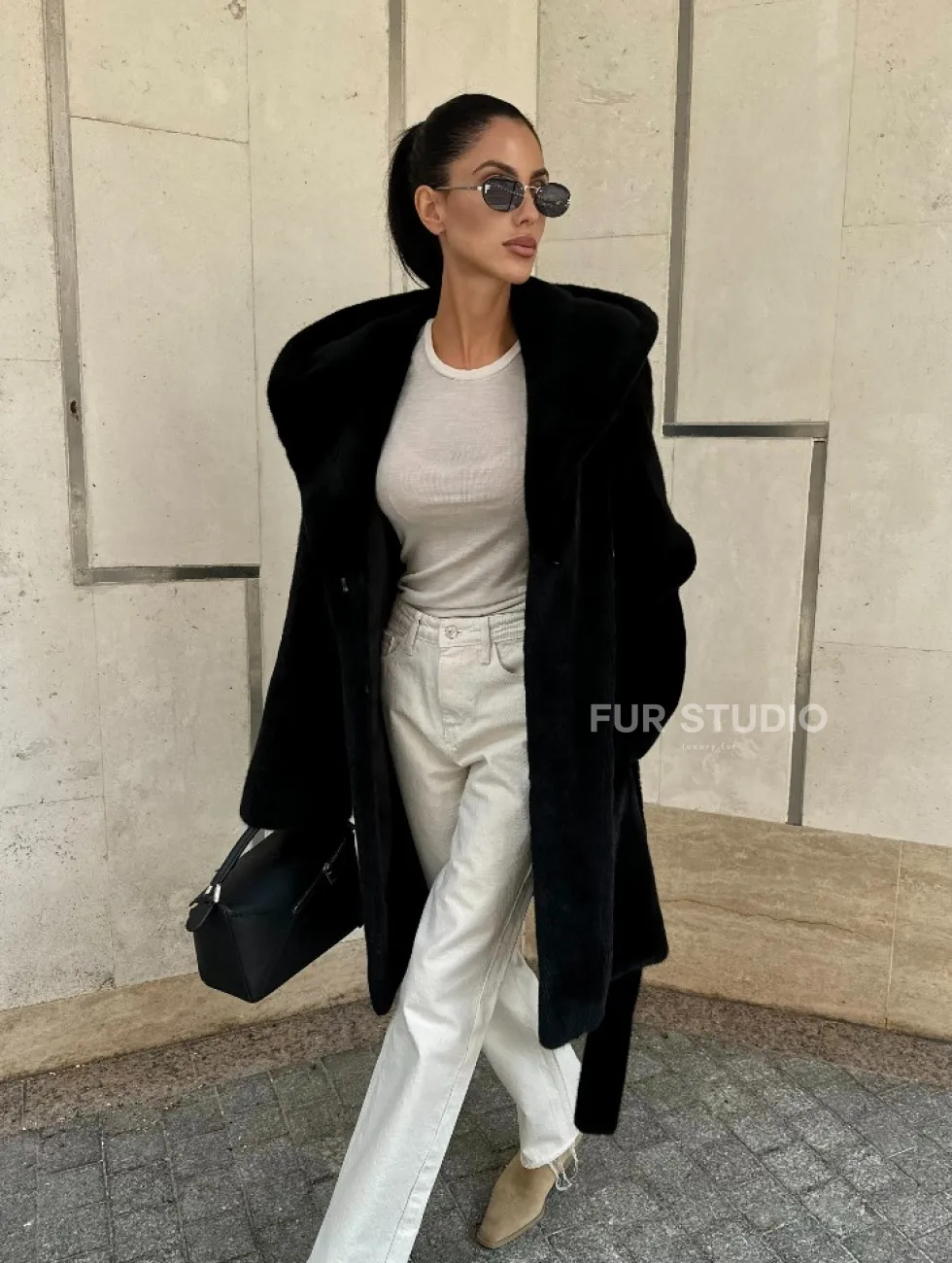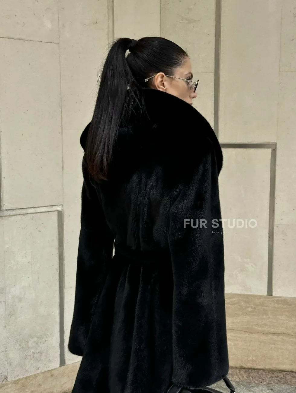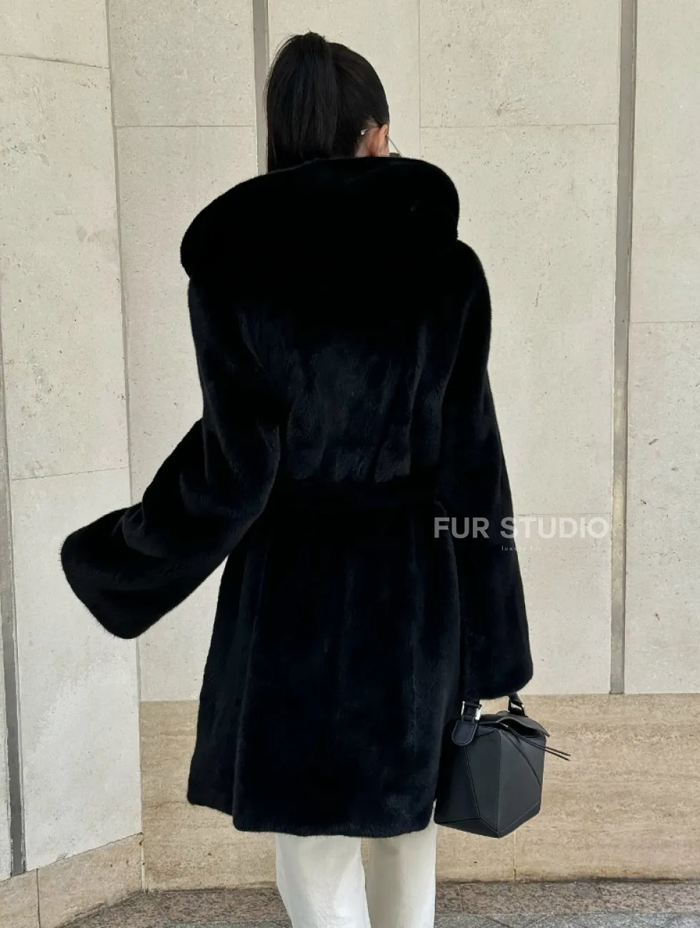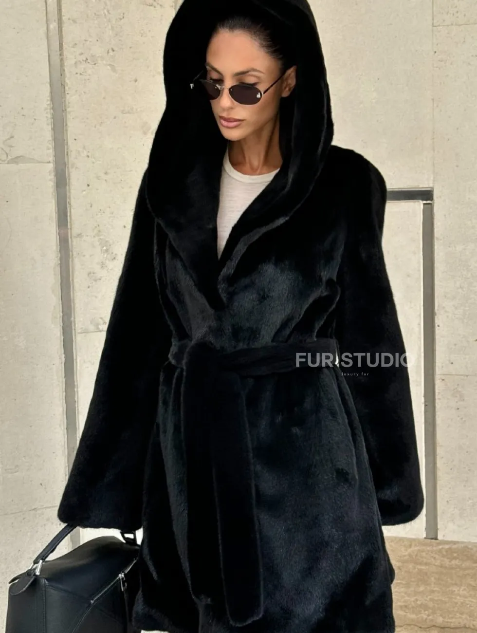 Черная шуба с капюшоном из меха норки BlackGlama - роспуск доступна для покупки в нашем шоуруме Furs Studio в Москве. У нас так же есть доставка во все города России. Добавьте немного роскоши в свой гардероб с этой шубой, которая будет служить вам многие годы.