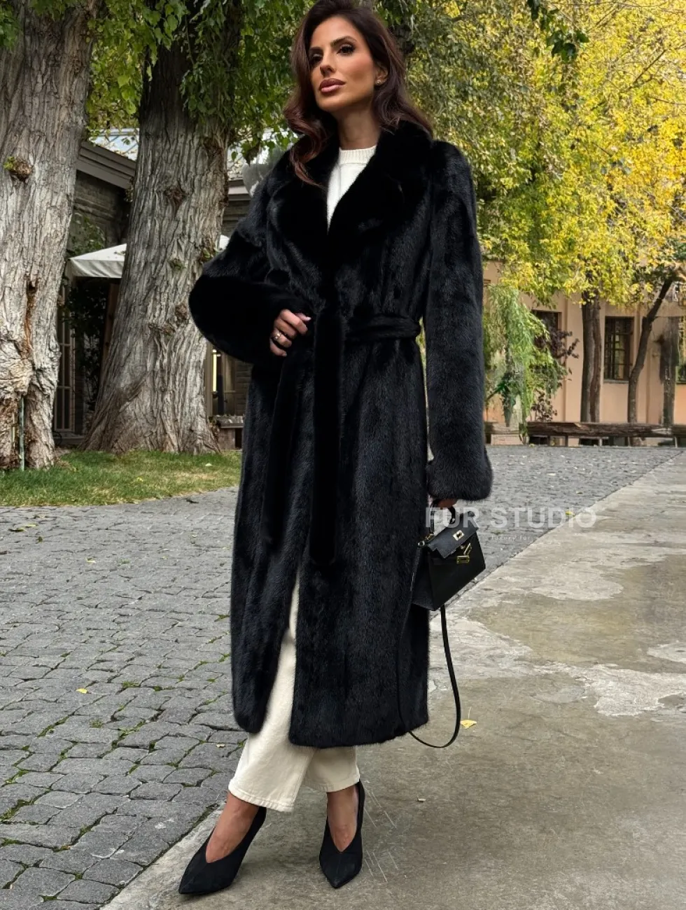 Мех данной шубы аукционная норка , цвет черный. Предлагается в размерах от 40 до 54. Длина модели 115-120 см, что выгодно подчеркивает фигуру девушек. Эта модель идеально подойдет для девушек и женщин, предпочитающих роскошные натуральные меха.