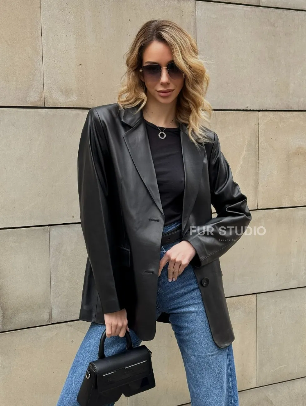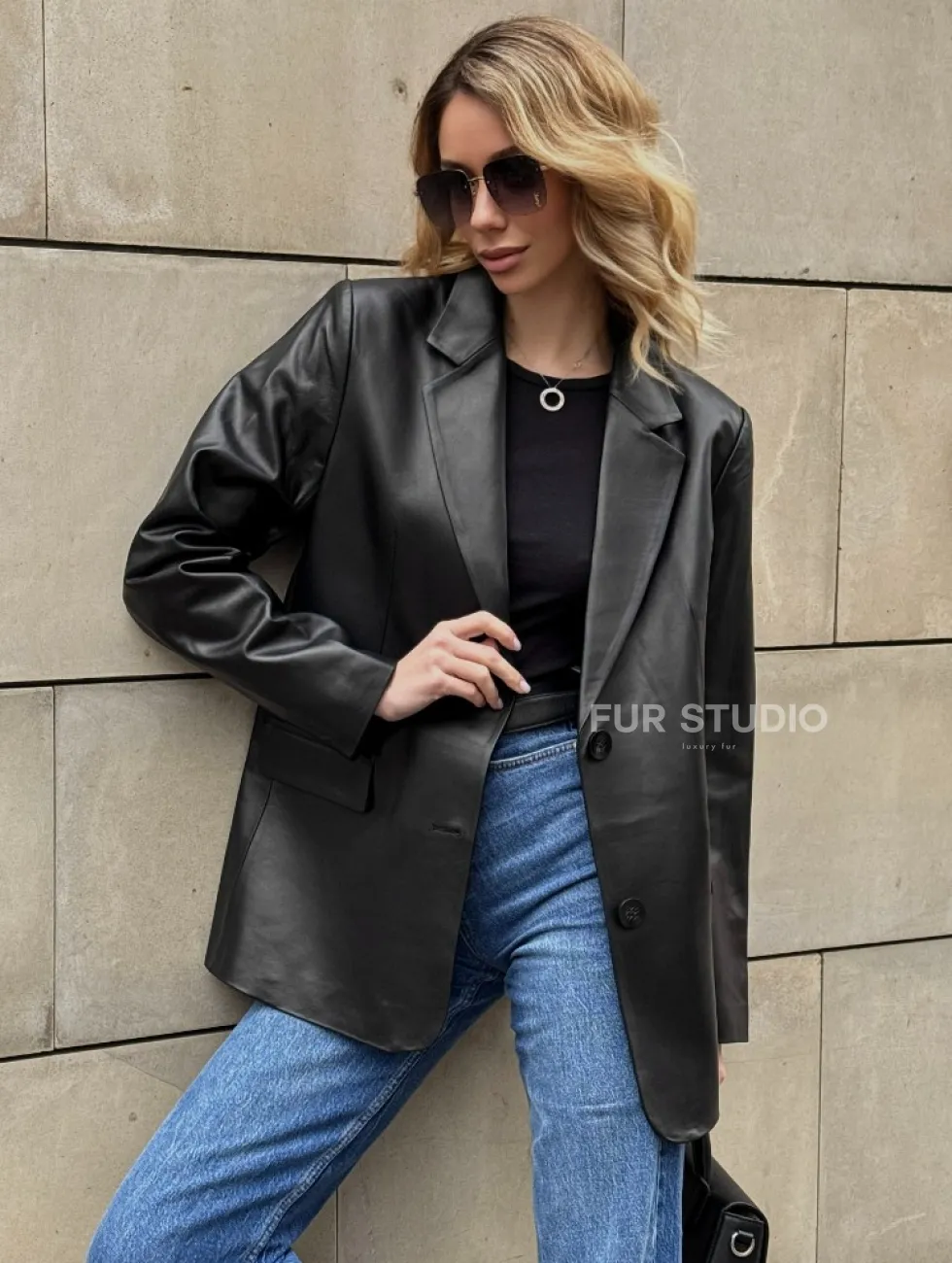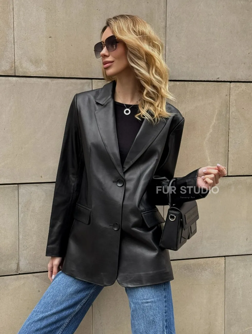 Восхититесь элегантностью и несравненным комфортом с нашей эксклюзивной коллекцией кожаных изделий. Изготовленная из первоклассной натуральной кожи, Черный кожаный пиджак классического кроя с клапанами на карманах не только согреет вас в прохладные дни, но и подчеркнет ваш изысканный вкус. Уникальный дизайн и высокое качество делают наши представленные образцы идеальным выбором для утончённых образов.