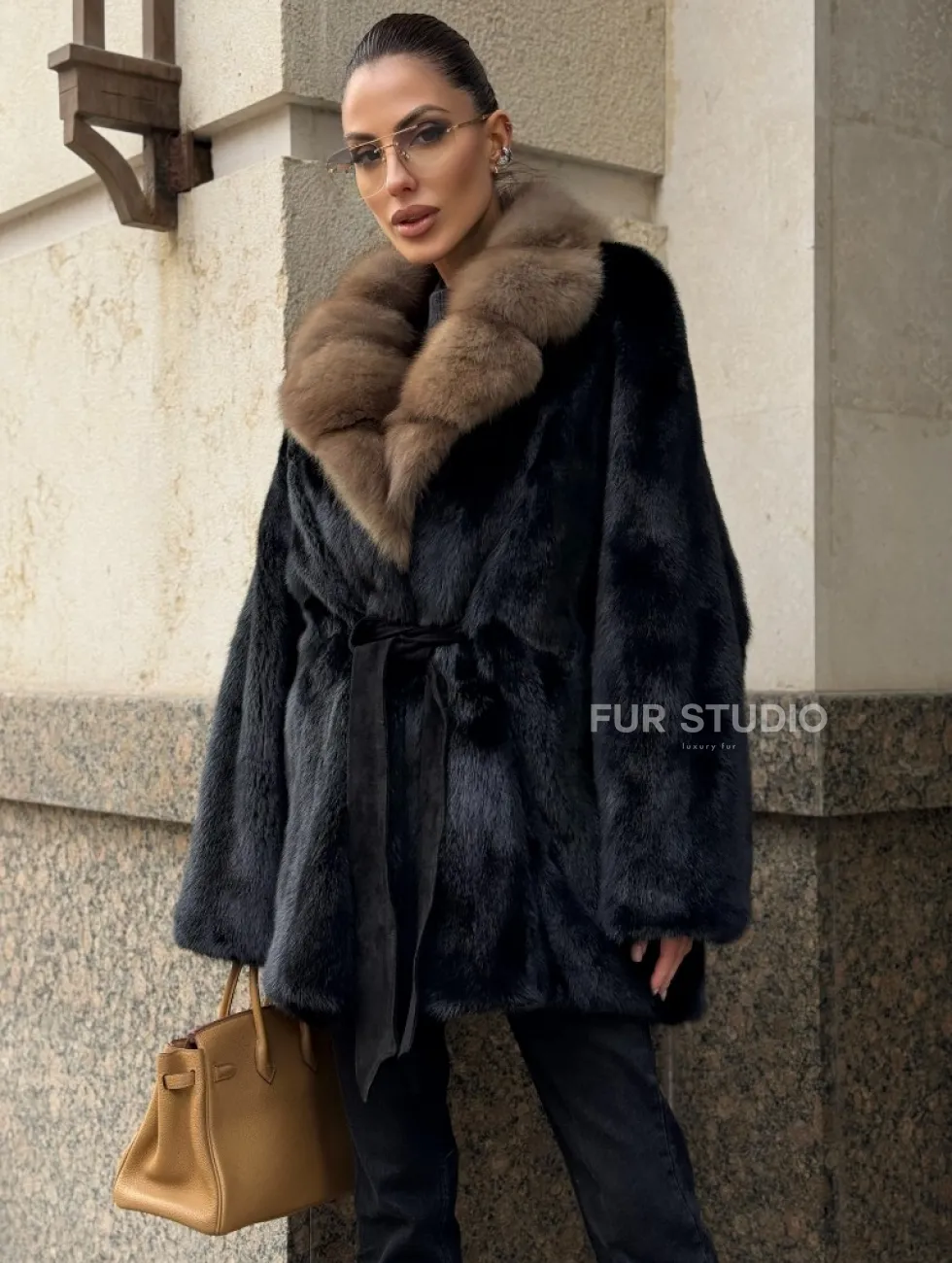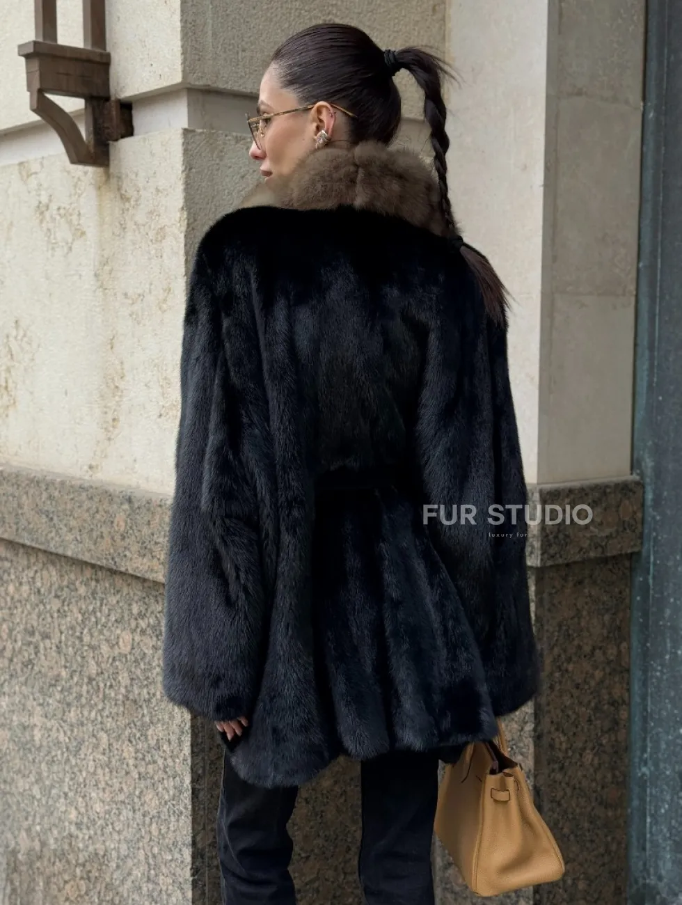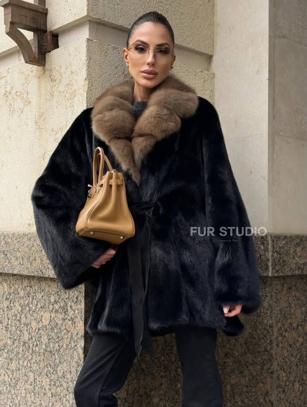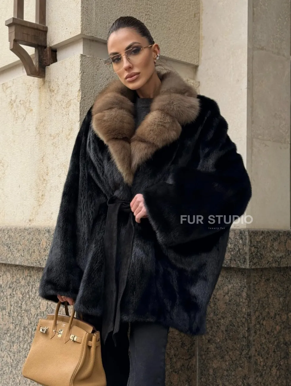 Черный норковый полушубок - кимоно с воротником из меха куницы доступна для покупки в нашем шоуруме Furs Studio в Москве. У нас так же есть доставка во все города России. Добавьте немного роскоши в свой гардероб с этой шубой, которая будет служить вам многие годы.