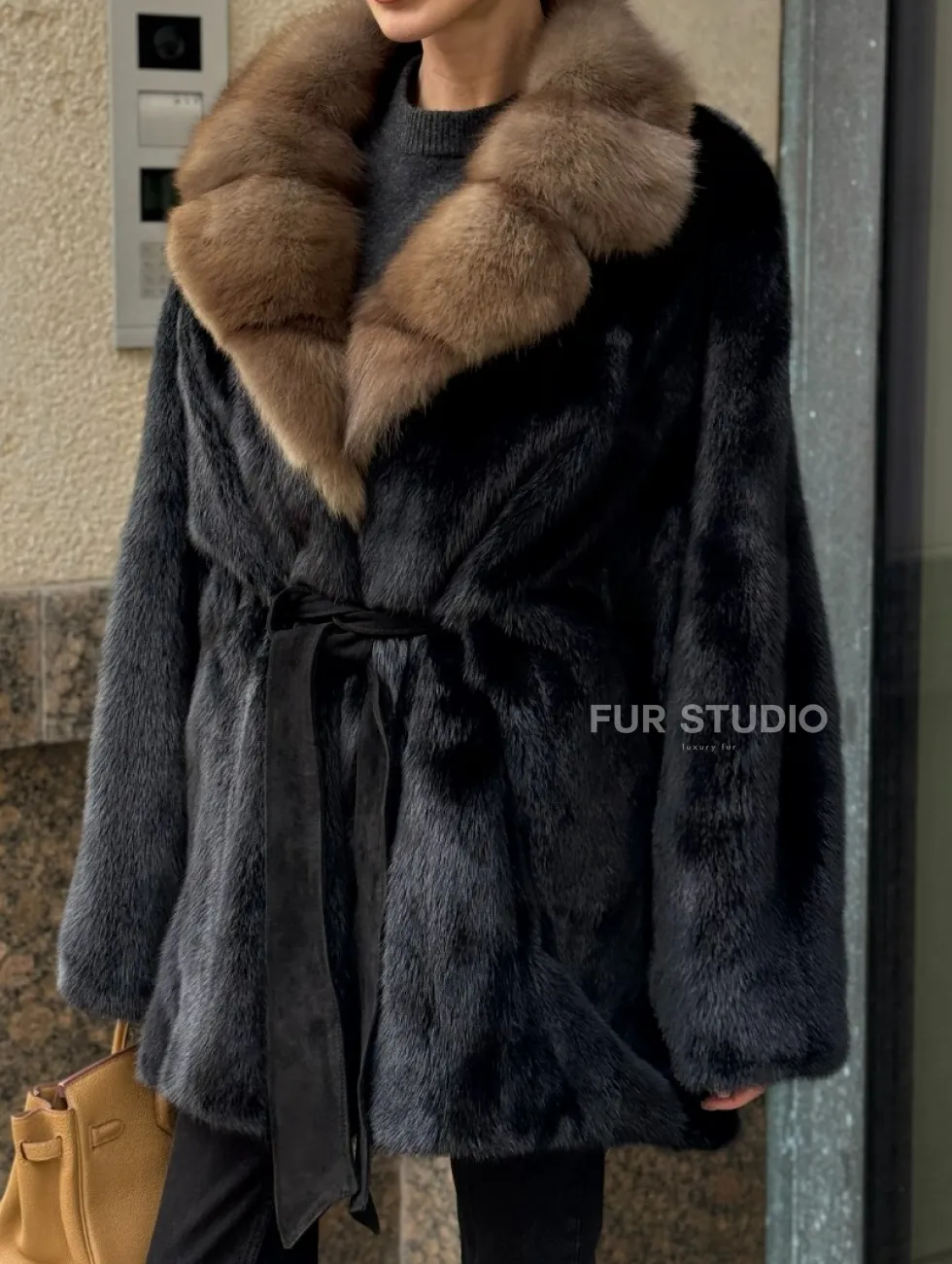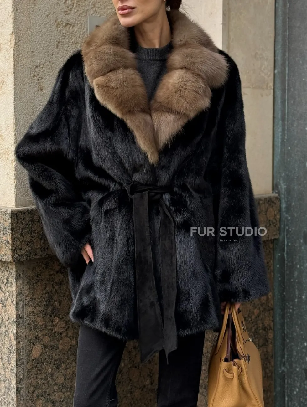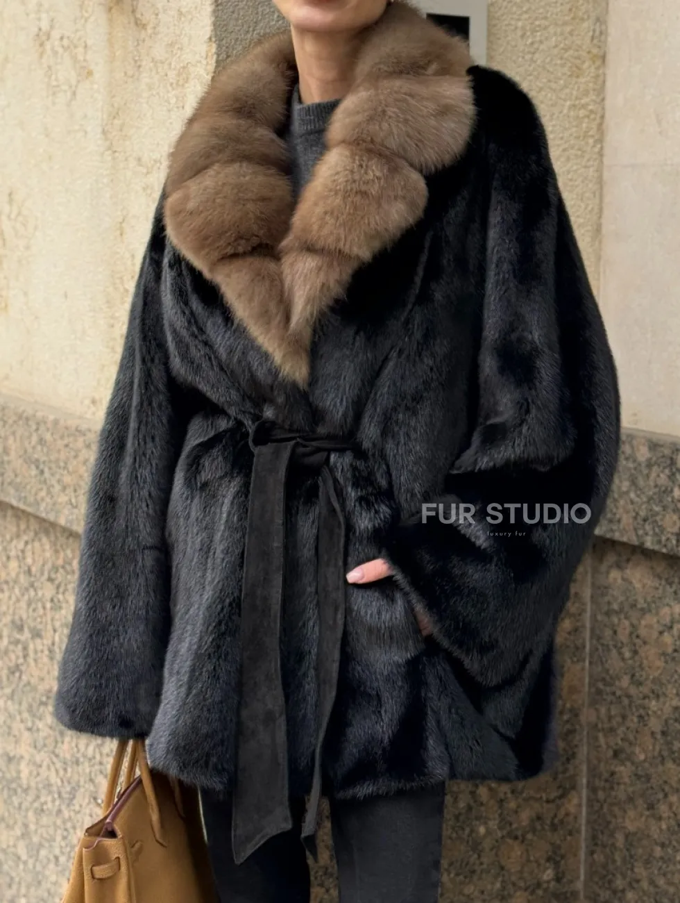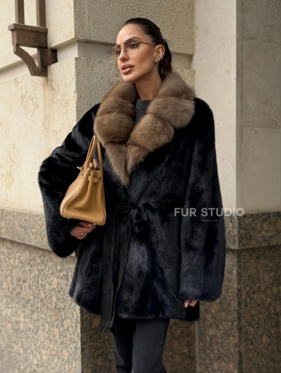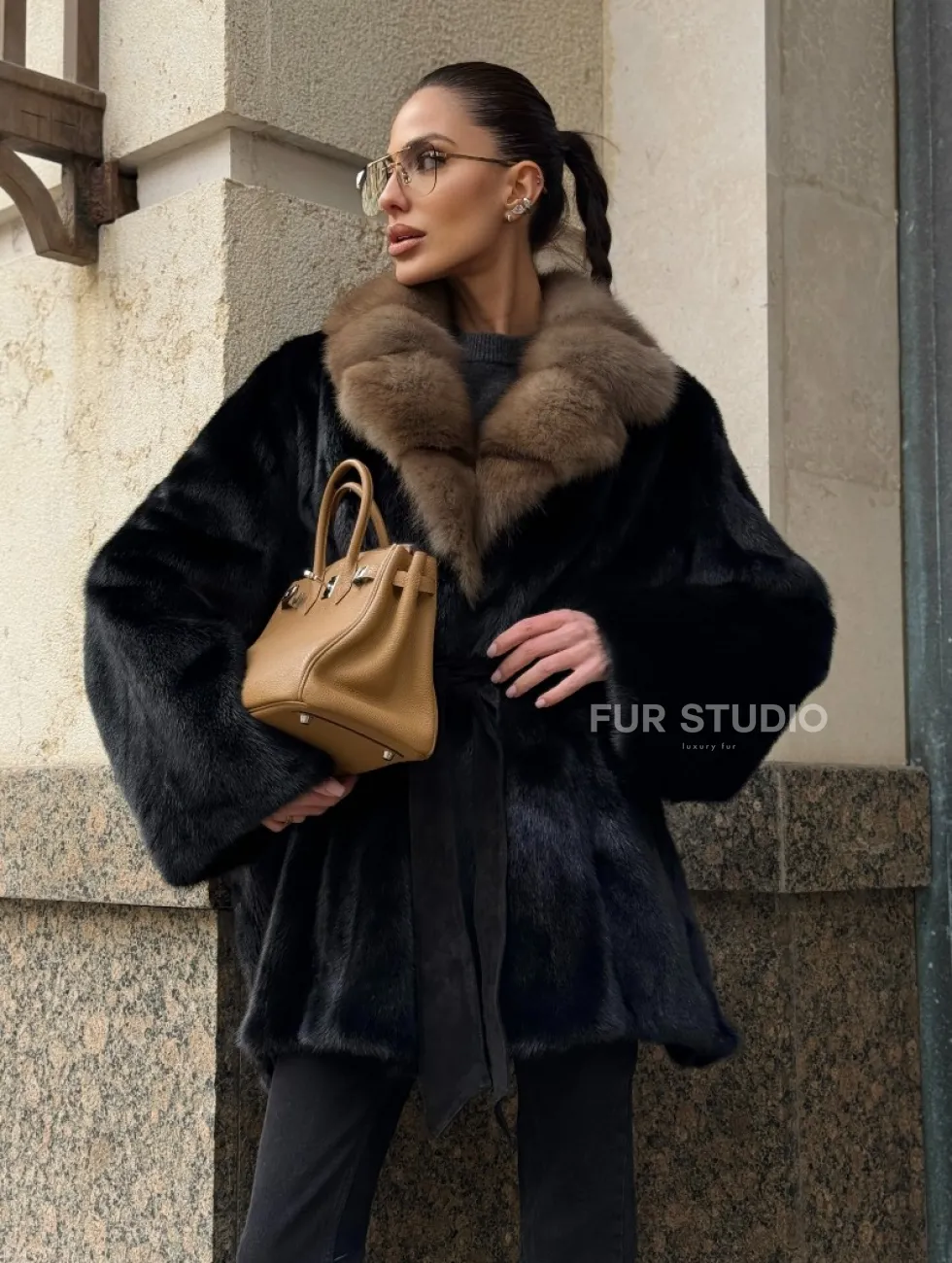Черный норковый полушубок - кимоно с воротником из меха куницы доступна для покупки в нашем шоуруме Furs Studio в Москве. У нас так же есть доставка во все города России. Добавьте немного роскоши в свой гардероб с этой шубой, которая будет служить вам многие годы.