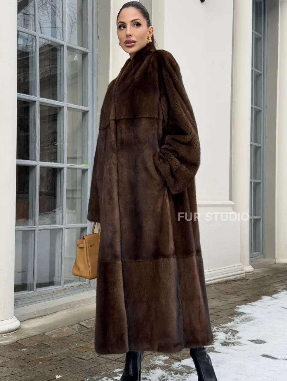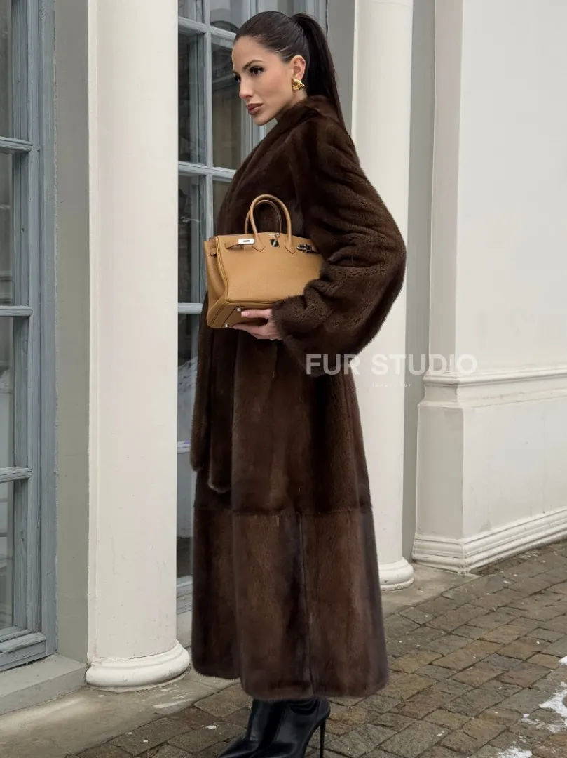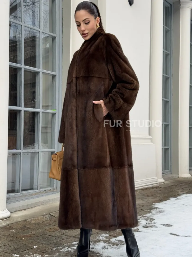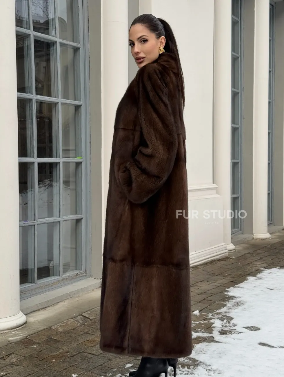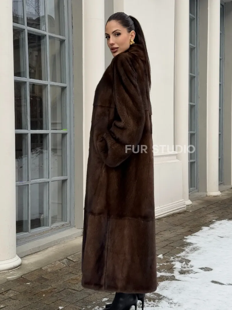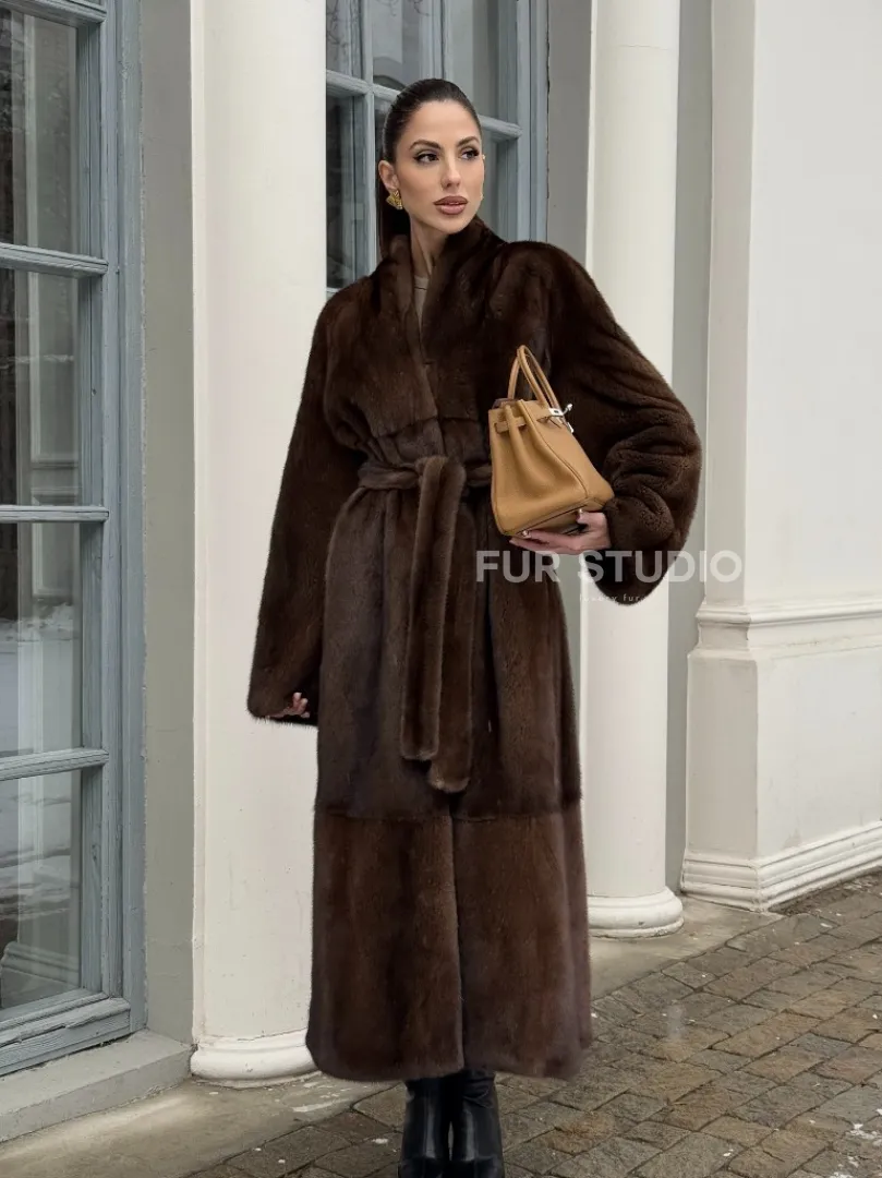 Цельнокроенная норковая шуба из североамериканской норки соболиного оттенка доступна для покупки в нашем шоуруме Furs Studio в Москве. У нас так же есть доставка во все города России. Добавьте немного роскоши в свой гардероб с этой шубой, которая будет служить вам многие годы.