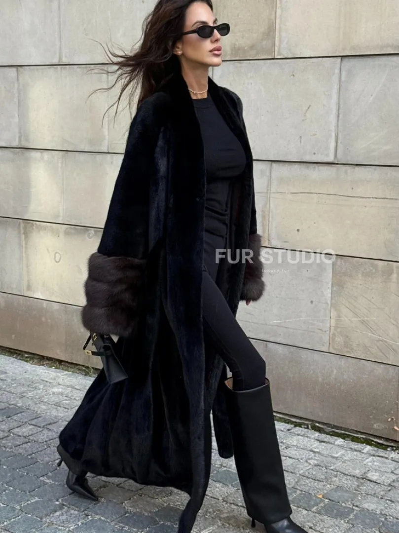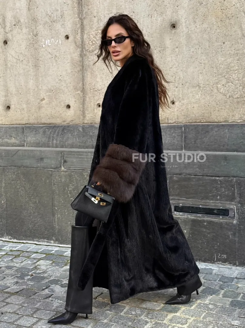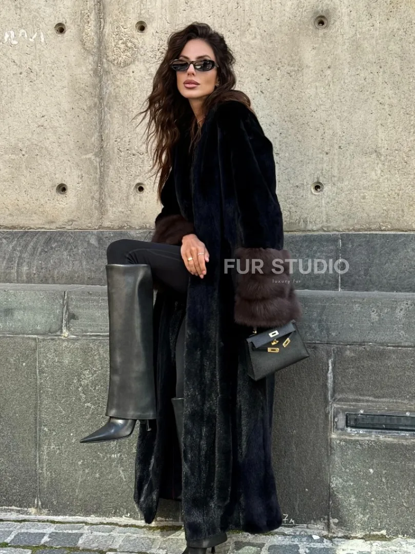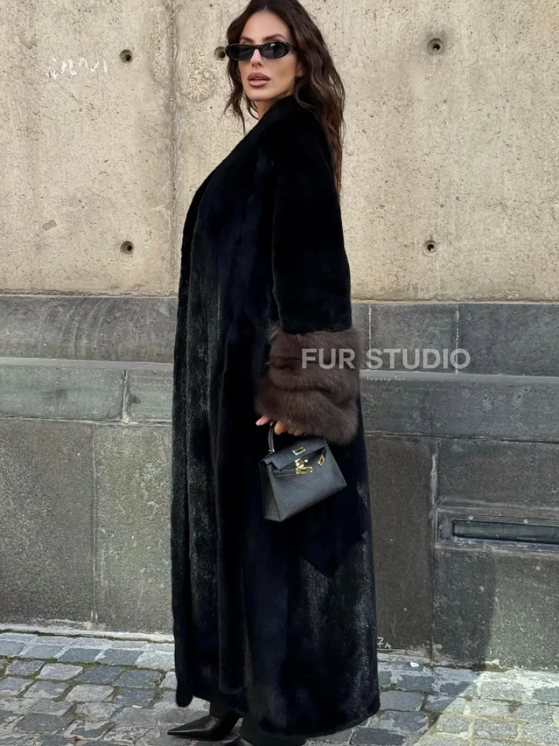 Длинная черная норковая шуба с манжетами из меха куницы доступна для покупки в нашем шоуруме Furs Studio в Москве. У нас так же есть доставка во все города России. Добавьте немного роскоши в свой гардероб с этой шубой, которая будет служить вам многие годы.