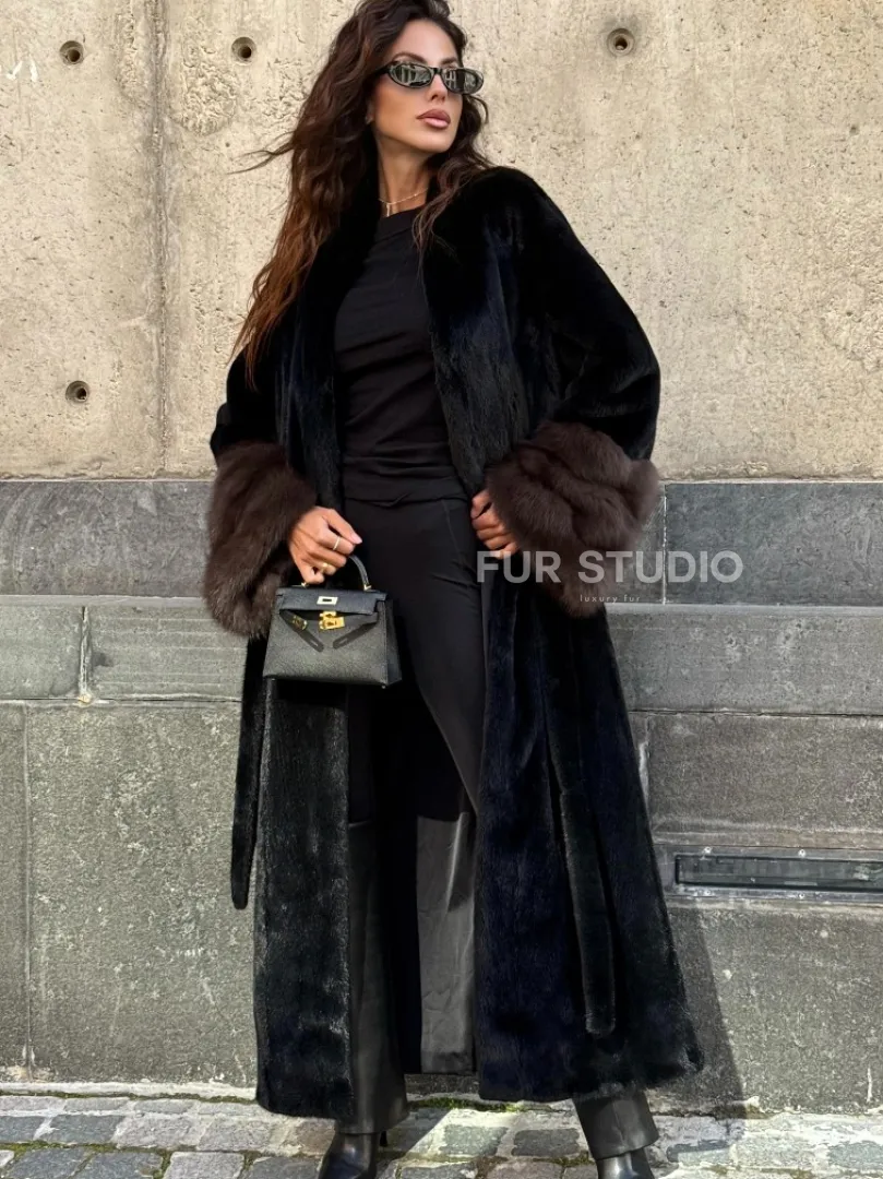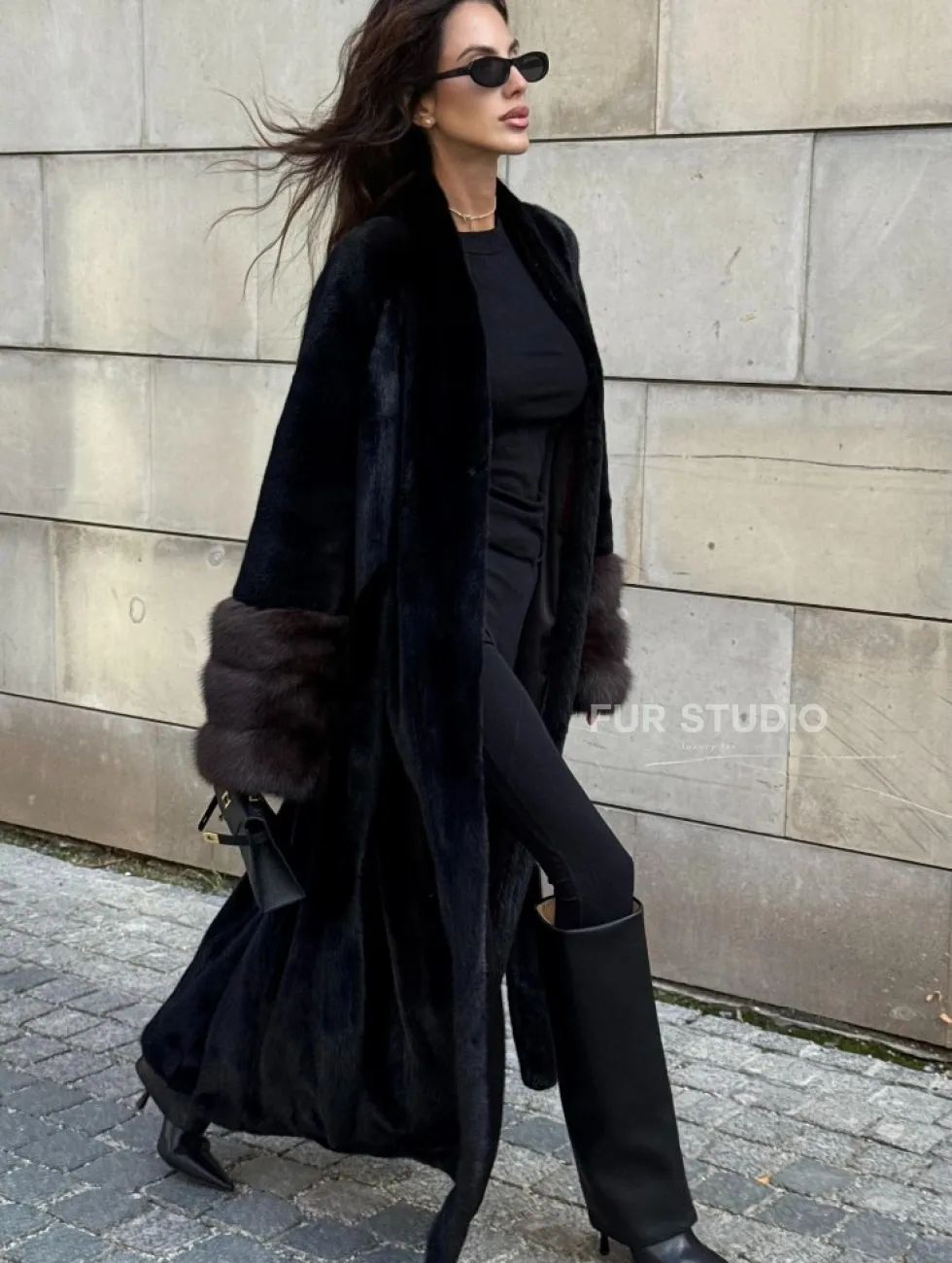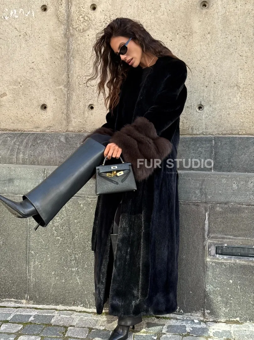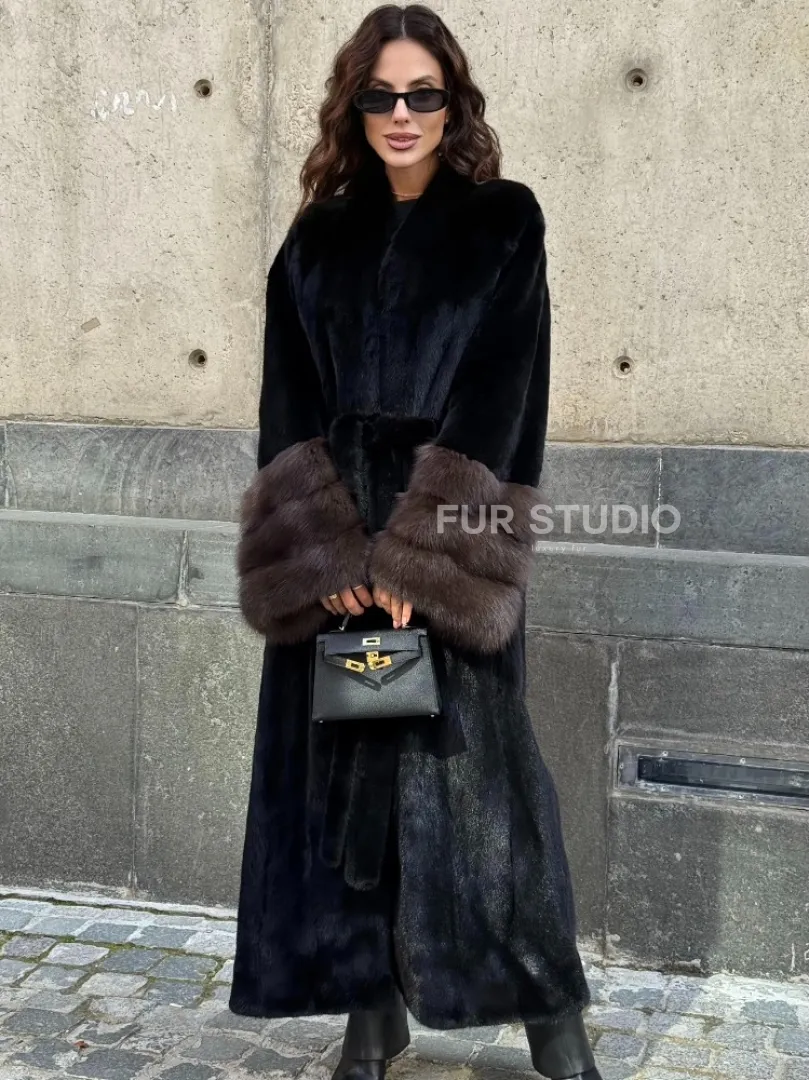 Длинная черная норковая шуба с манжетами из меха куницы доступна для покупки в нашем шоуруме Furs Studio в Москве. У нас так же есть доставка во все города России. Добавьте немного роскоши в свой гардероб с этой шубой, которая будет служить вам многие годы.
