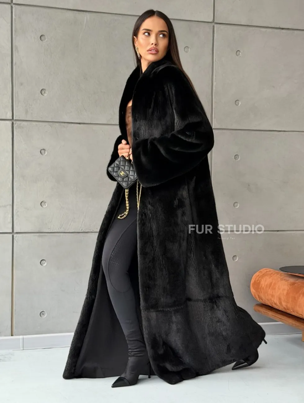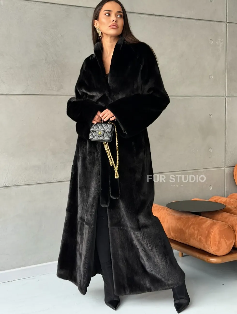 Длинная черная шуба из меха норки Saga furs доступна для покупки в нашем шоуруме Furs Studio в Москве. У нас так же есть доставка во все города России. Добавьте немного роскоши в свой гардероб с этой шубой, которая будет служить вам многие годы.