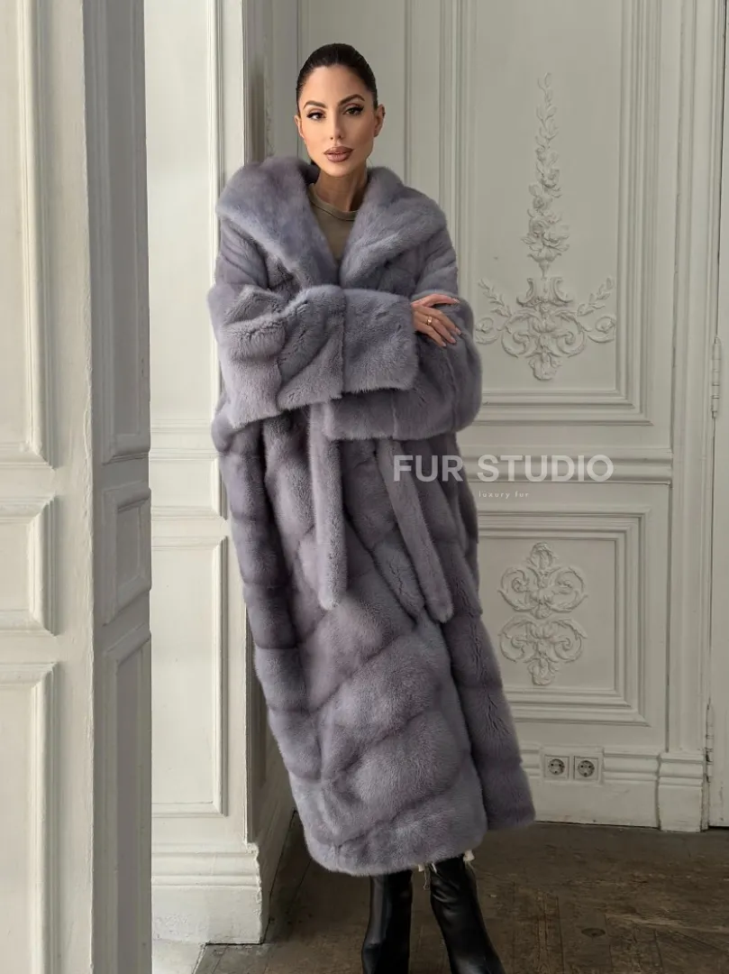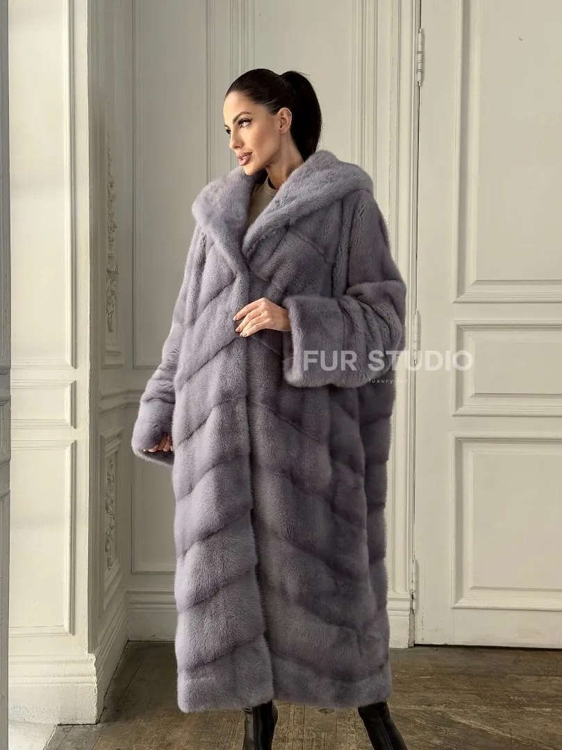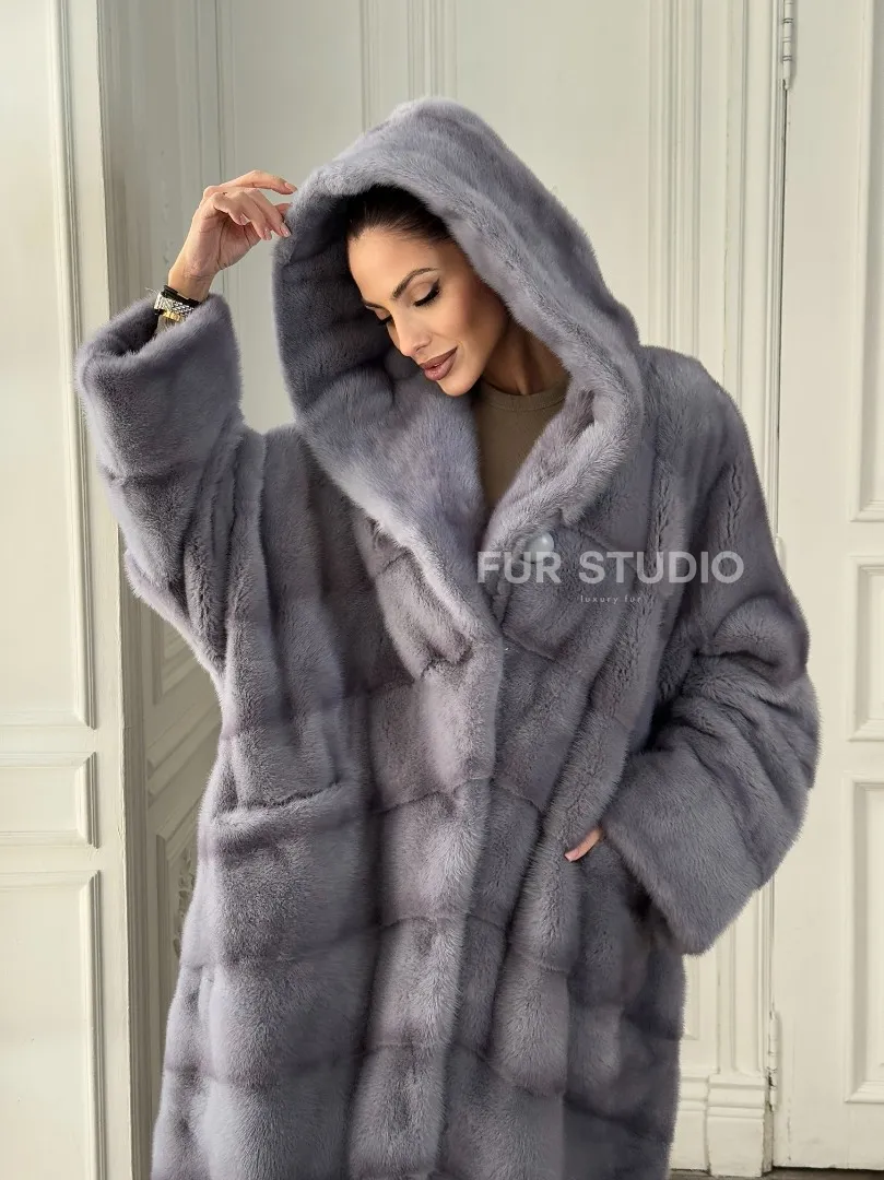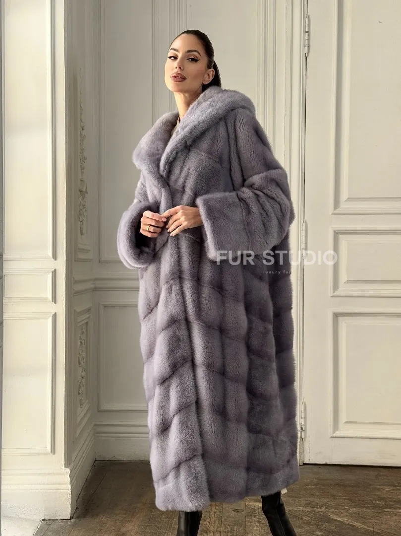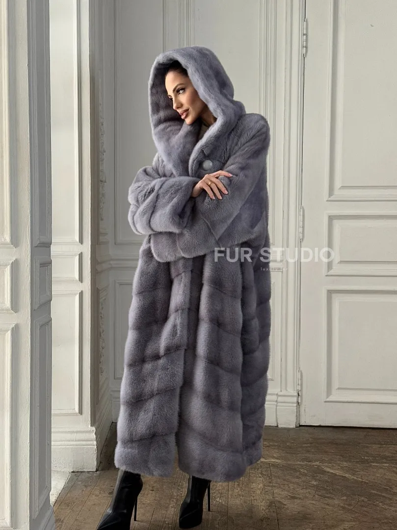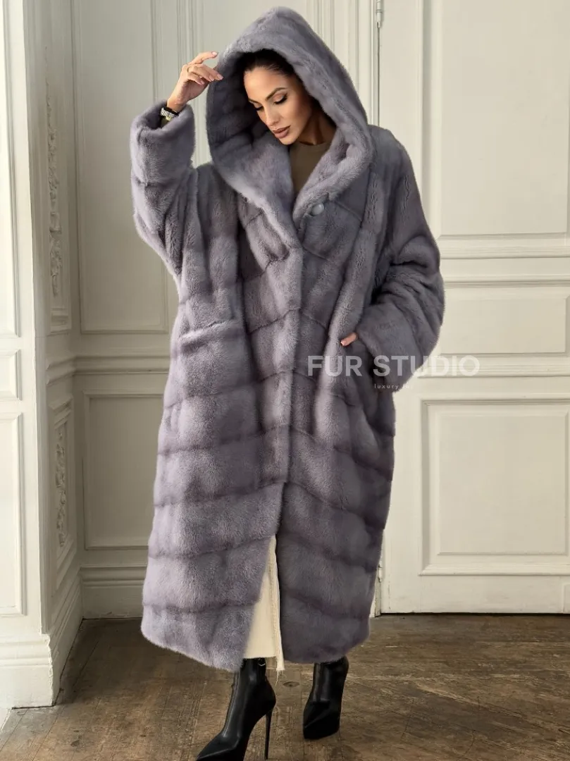 Длинная голубая норковая шуба с капюшоном PLUS SIZE доступна для покупки в нашем шоуруме Furs Studio в Москве. У нас так же есть доставка во все города России. Добавьте немного роскоши в свой гардероб с этой шубой, которая будет служить вам многие годы.