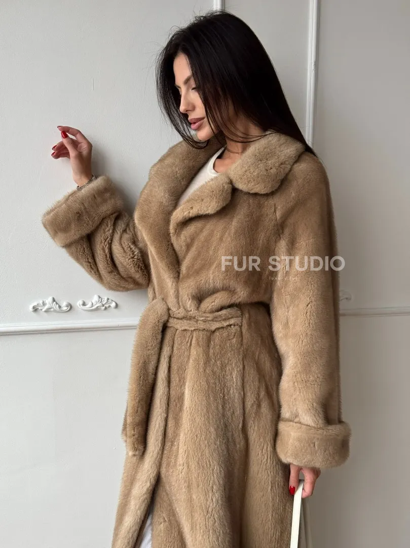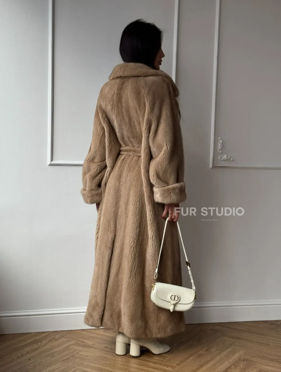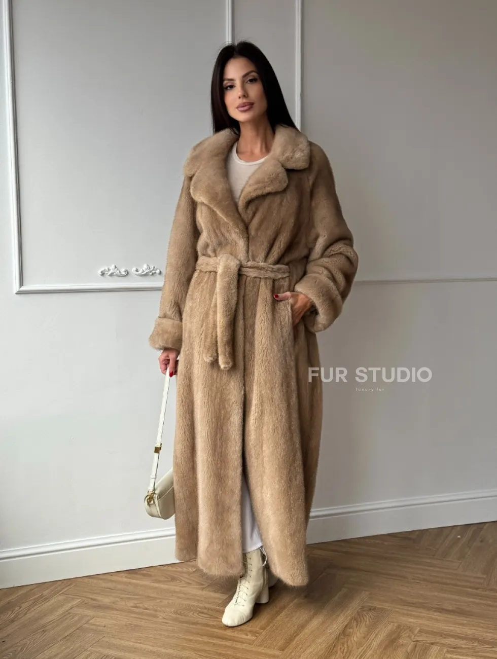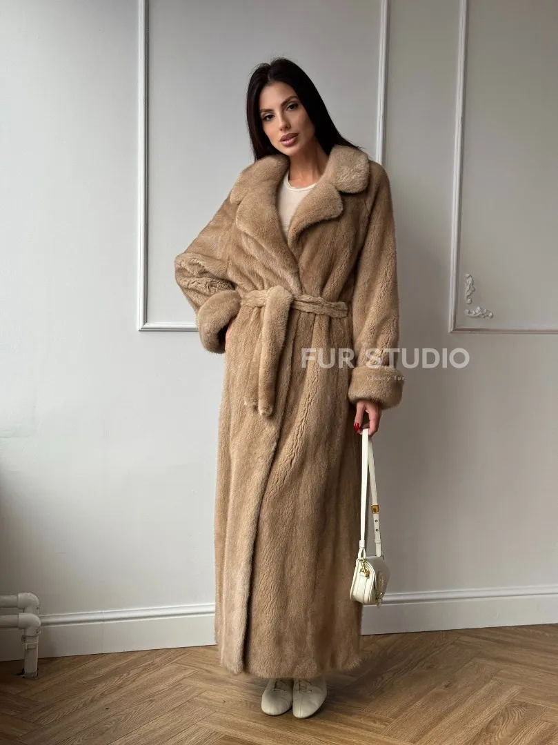 Длинная модная шуба кимоно из меха скандинавской норки со шлицей доступна для покупки в нашем шоуруме Furs Studio в Москве. У нас так же есть доставка во все города России. Добавьте немного роскоши в свой гардероб с этой шубой, которая будет служить вам многие годы.