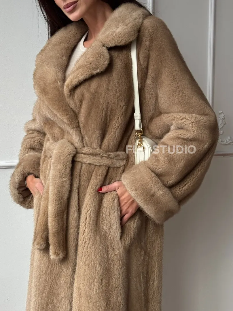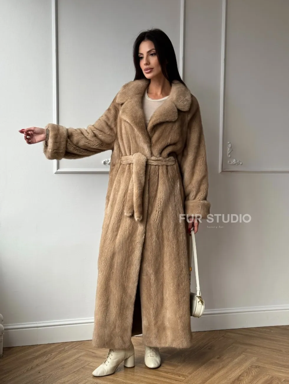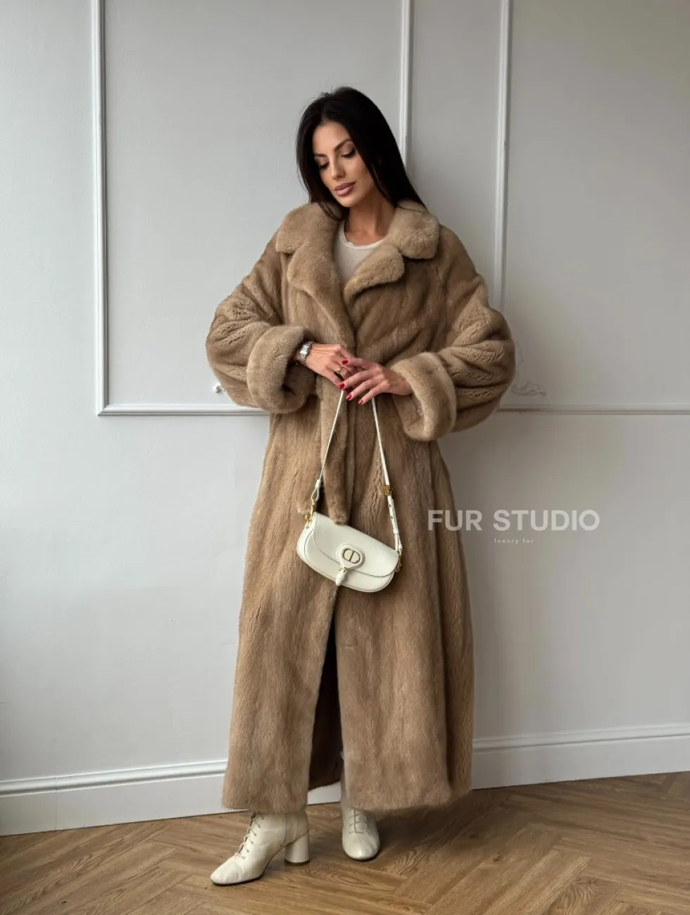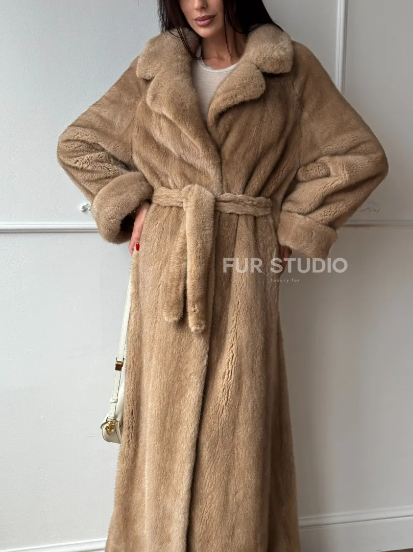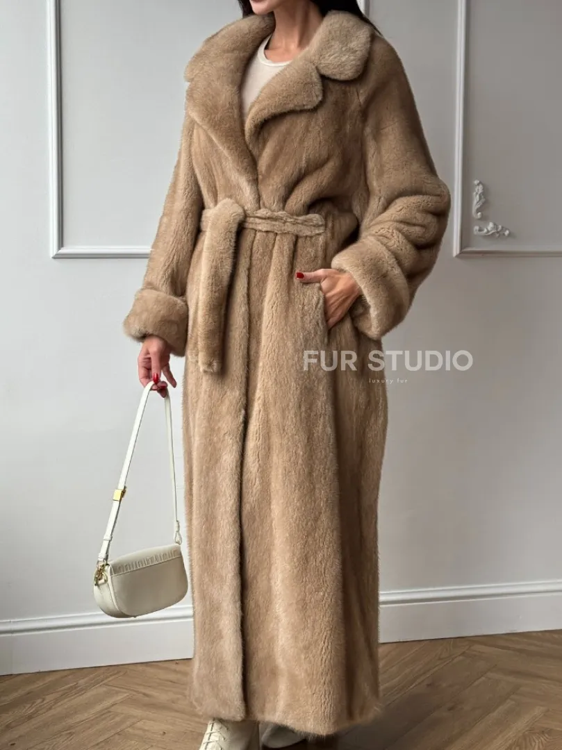 Длинная модная шуба кимоно из меха скандинавской норки со шлицей доступна для покупки в нашем шоуруме Furs Studio в Москве. У нас так же есть доставка во все города России. Добавьте немного роскоши в свой гардероб с этой шубой, которая будет служить вам многие годы.