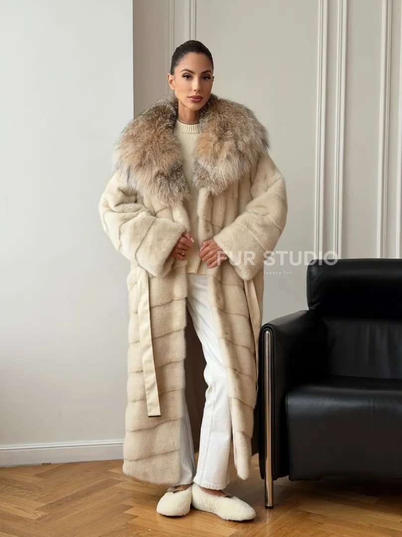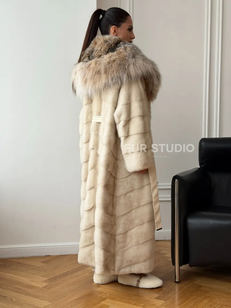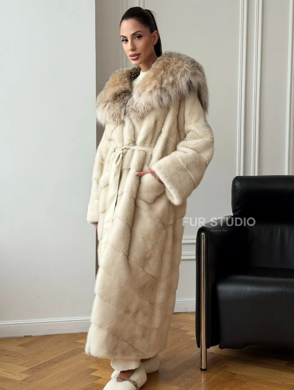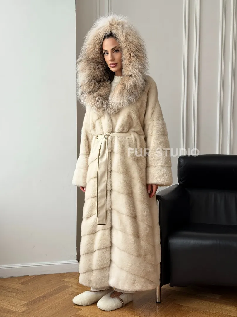 Длинная норковая шуба - капюшон из меха рыси доступна для покупки в нашем шоуруме Furs Studio в Москве. У нас так же есть доставка во все города России. Добавьте немного роскоши в свой гардероб с этой шубой, которая будет служить вам многие годы.