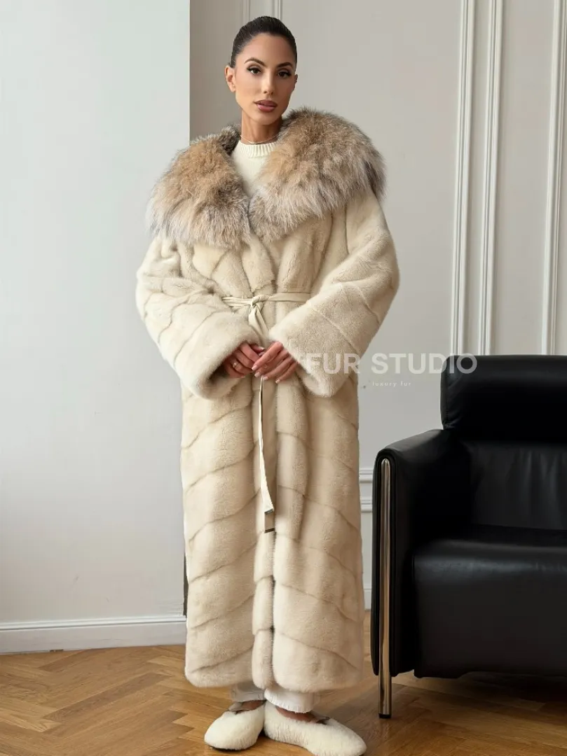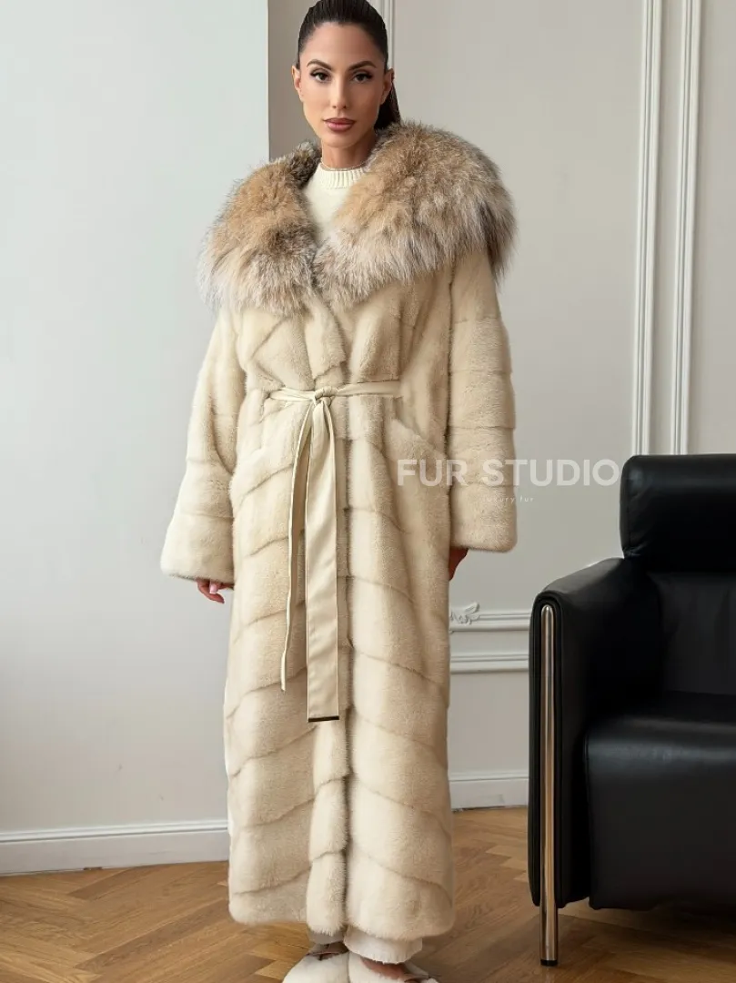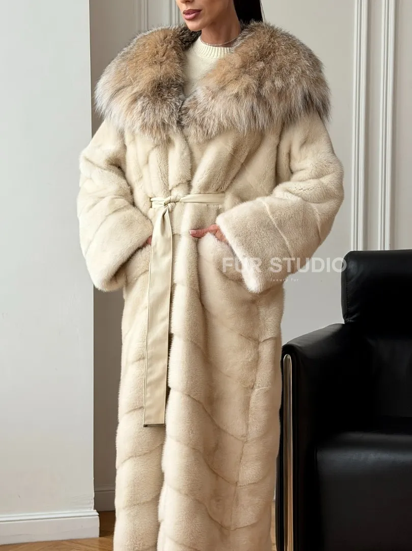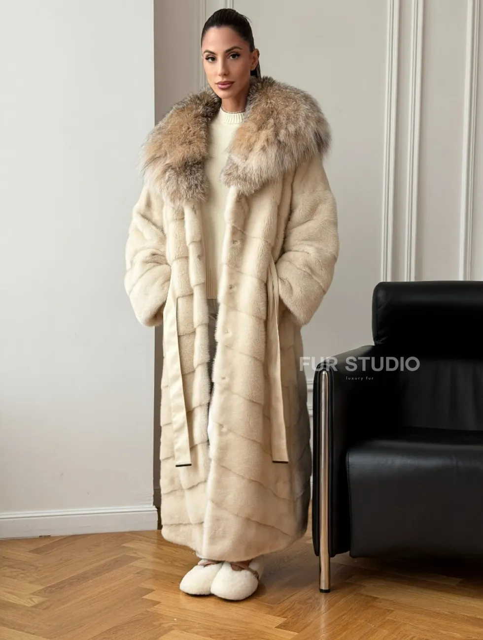 Длинная норковая шуба - капюшон из меха рыси доступна для покупки в нашем шоуруме Furs Studio в Москве. У нас так же есть доставка во все города России. Добавьте немного роскоши в свой гардероб с этой шубой, которая будет служить вам многие годы.