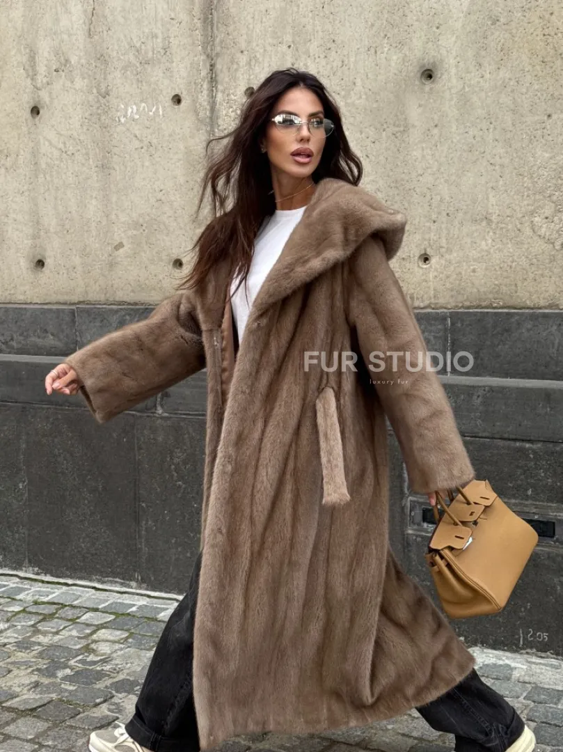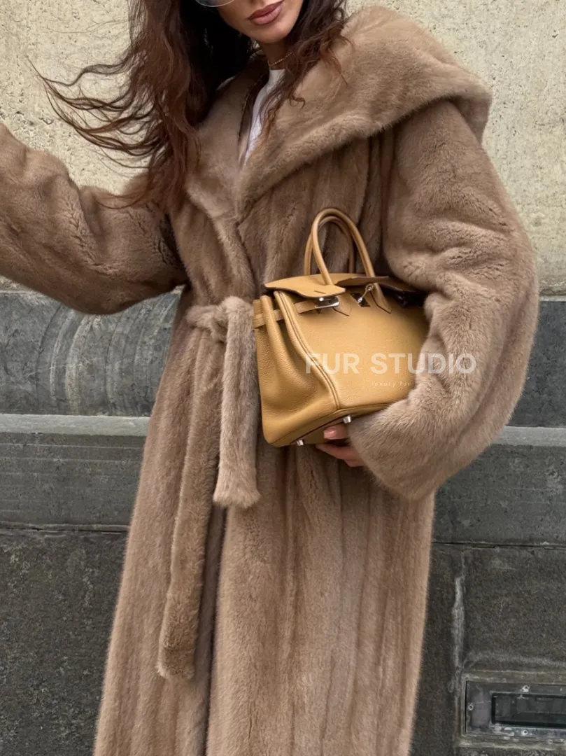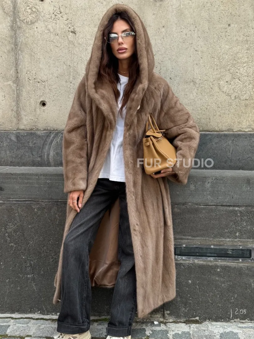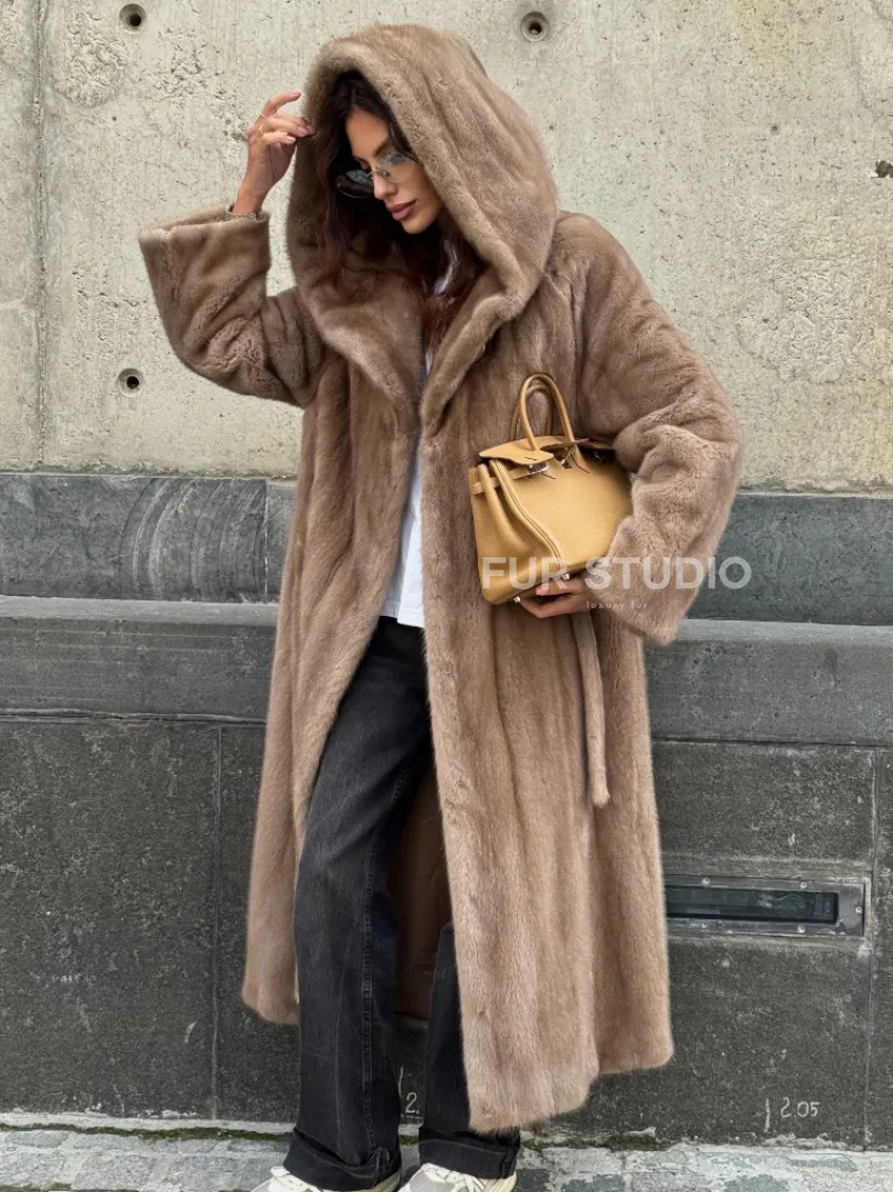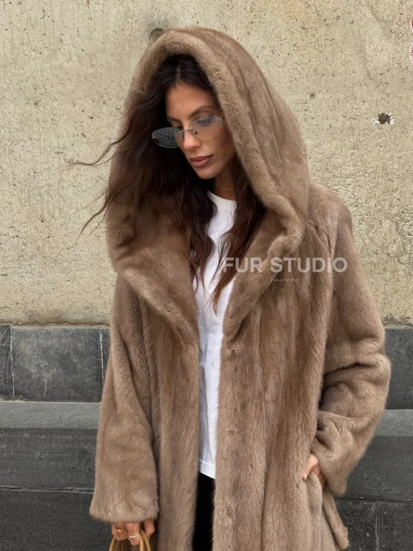 Длинная норковая шуба Pastel с капюшоном кобра доступна для покупки в нашем шоуруме Furs Studio в Москве. У нас так же есть доставка во все города России. Добавьте немного роскоши в свой гардероб с этой шубой, которая будет служить вам многие годы.