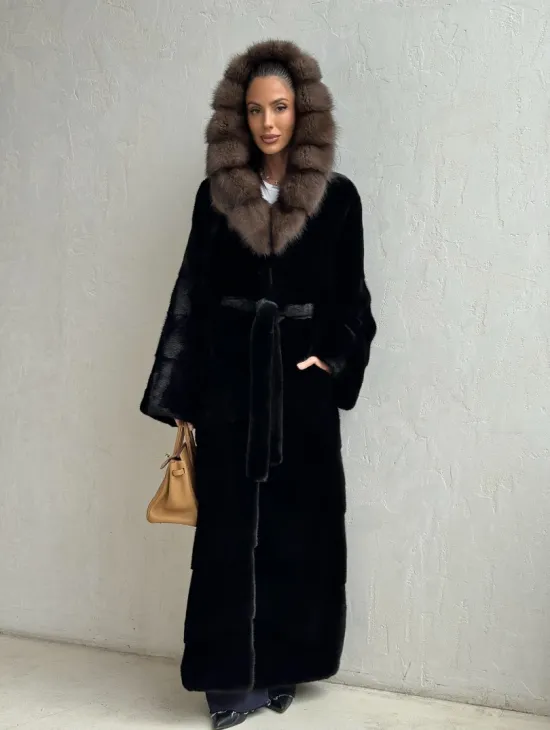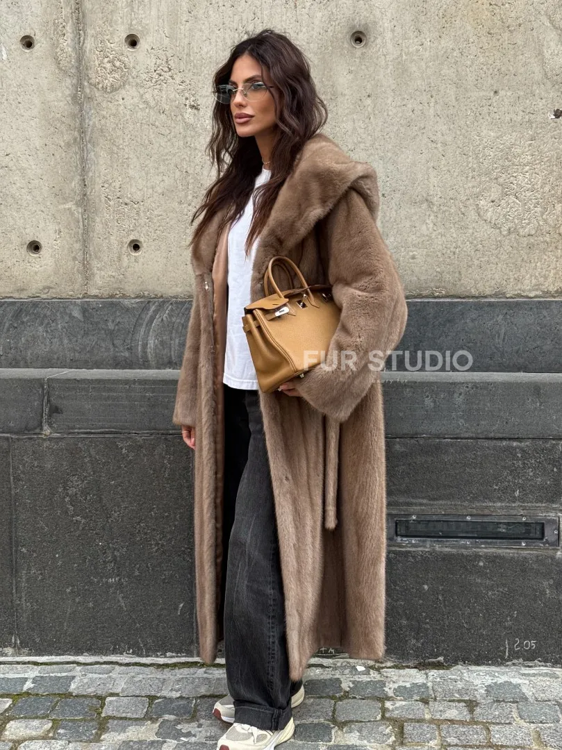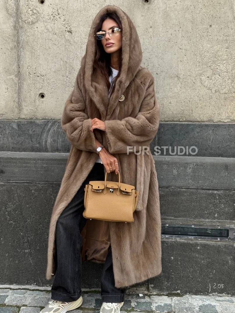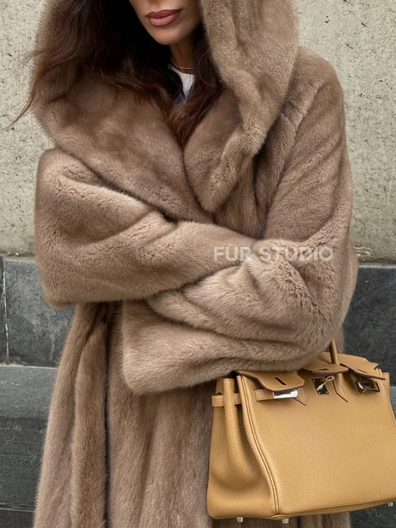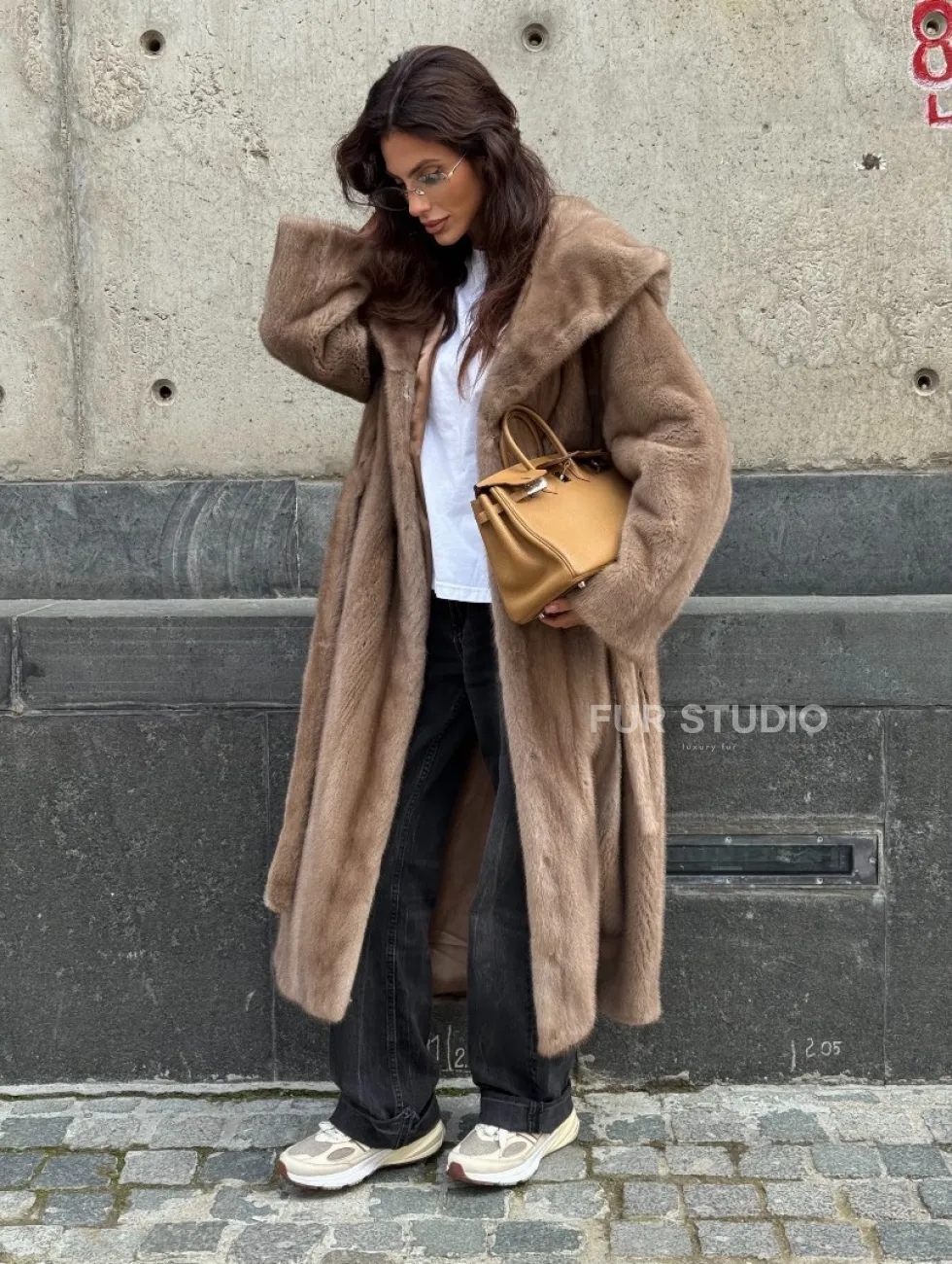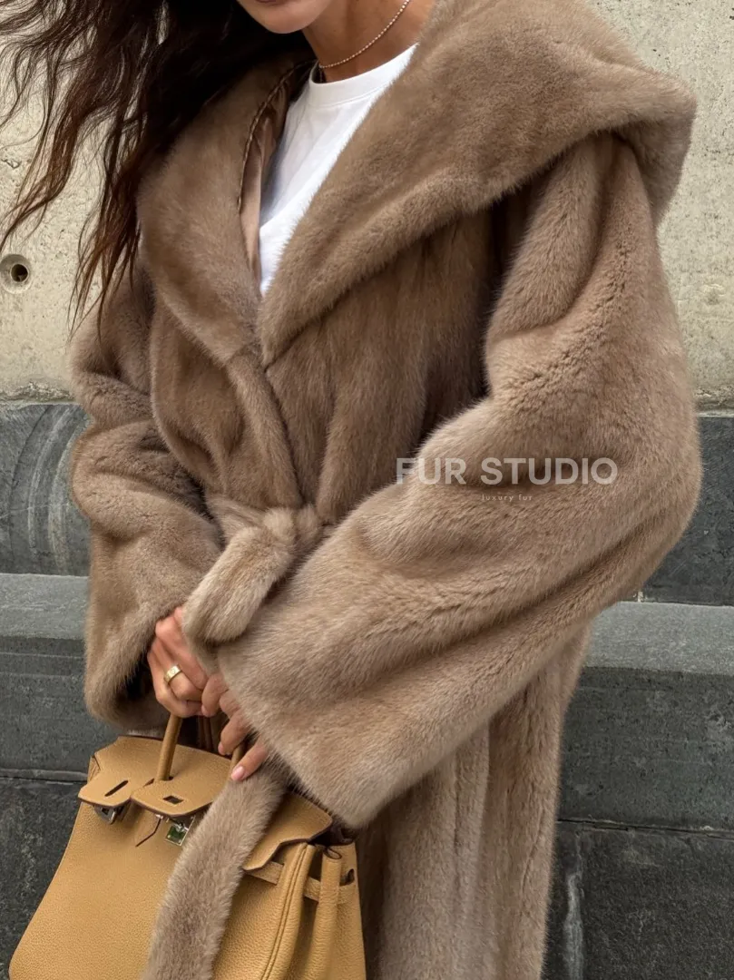 Длинная норковая шуба Pastel с капюшоном кобра доступна для покупки в нашем шоуруме Furs Studio в Москве. У нас так же есть доставка во все города России. Добавьте немного роскоши в свой гардероб с этой шубой, которая будет служить вам многие годы.